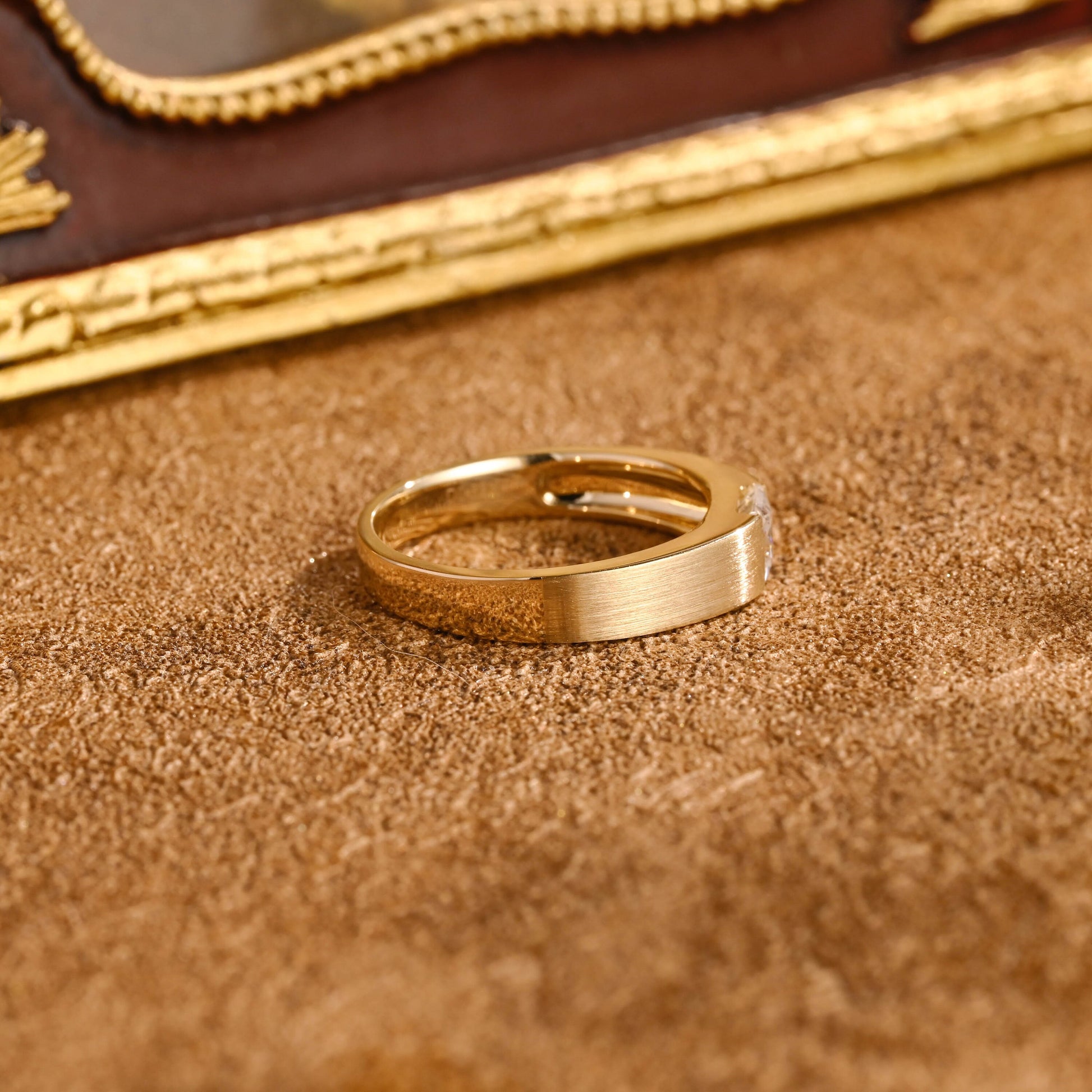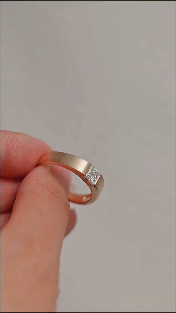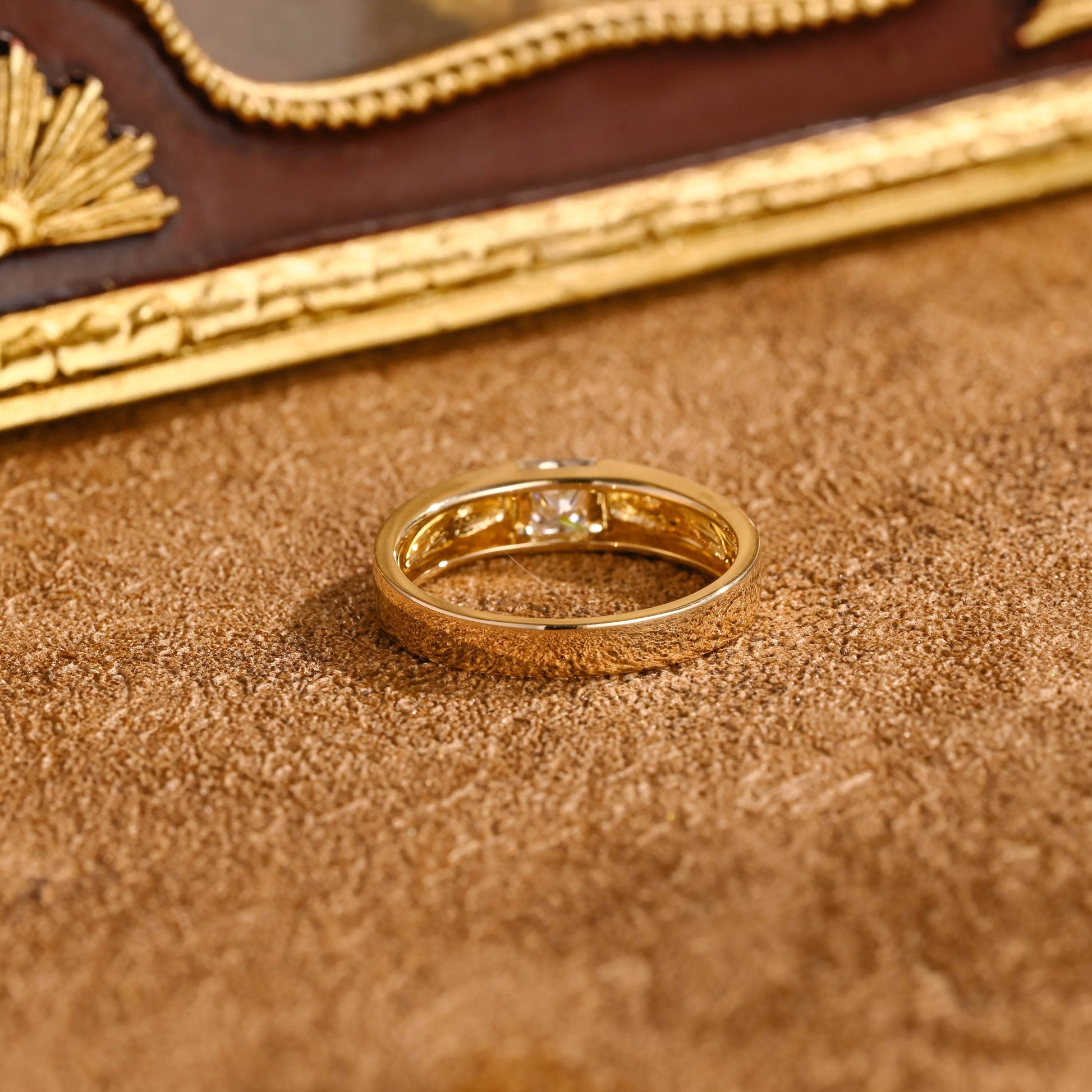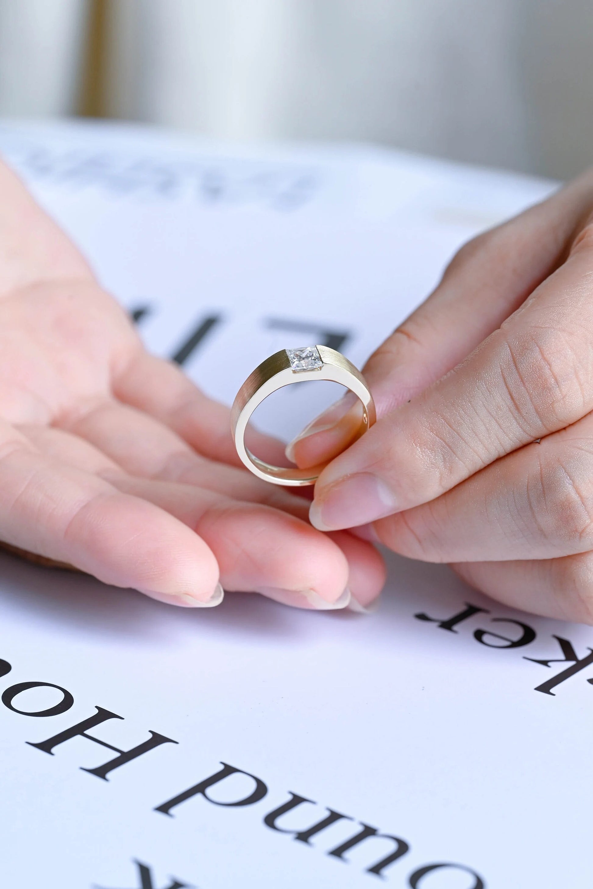 Solid Gold Princess Cut Moissanite Wedding Ring, Minimalist Wedding Band, Art Deco Ring, Anniversary / Birthday Gift for Men, Husband