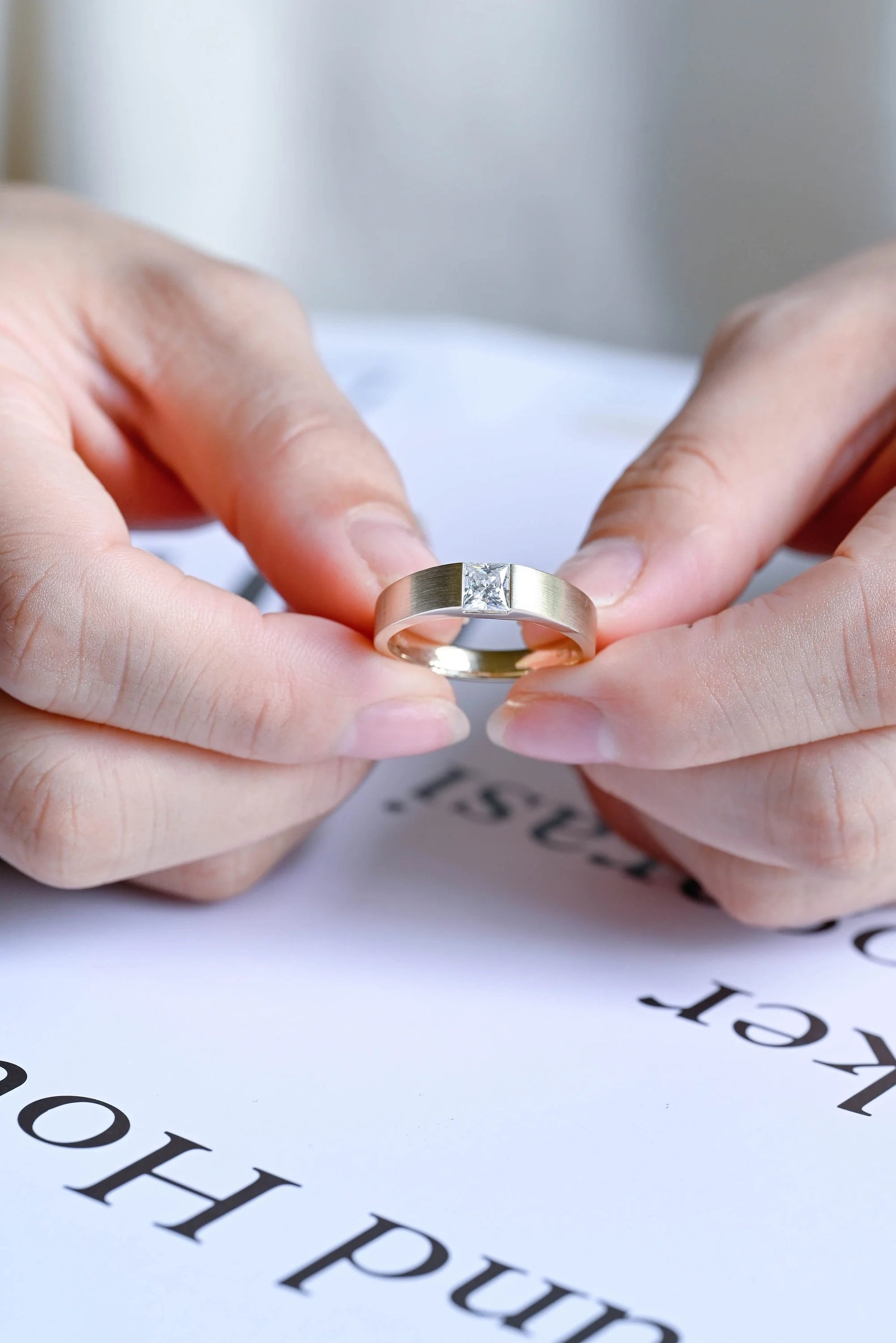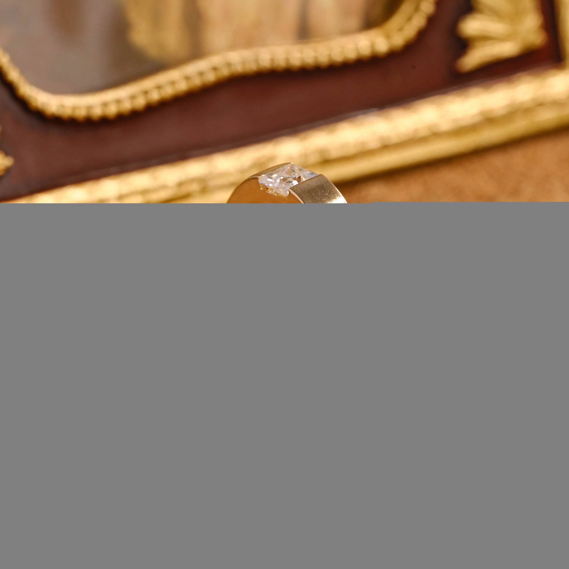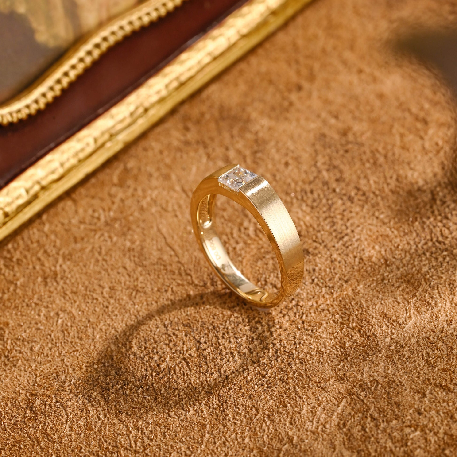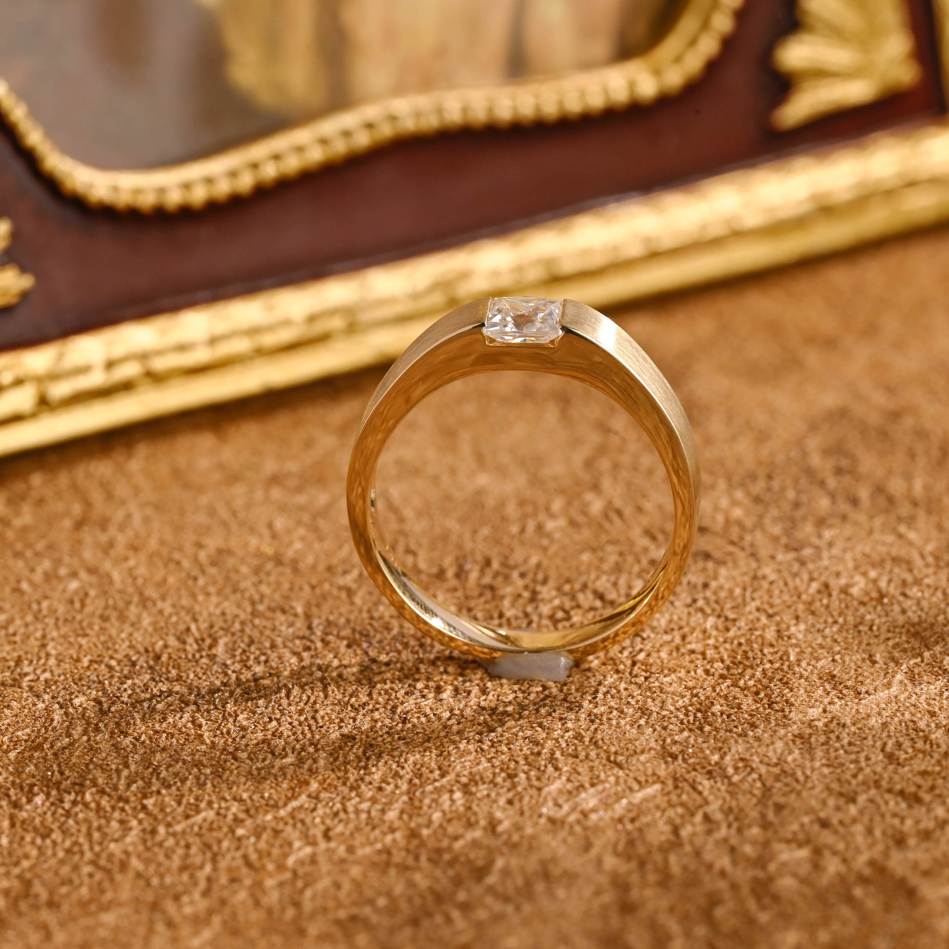 Solid Gold Princess Cut Moissanite Wedding Ring, Minimalist Wedding Band, Art Deco Ring, Anniversary / Birthday Gift for Men, Husband