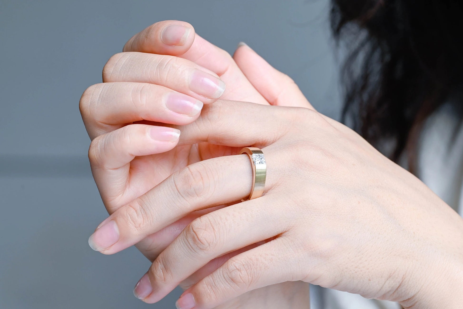 Solid Gold Princess Cut Moissanite Minimalist Wedding Band