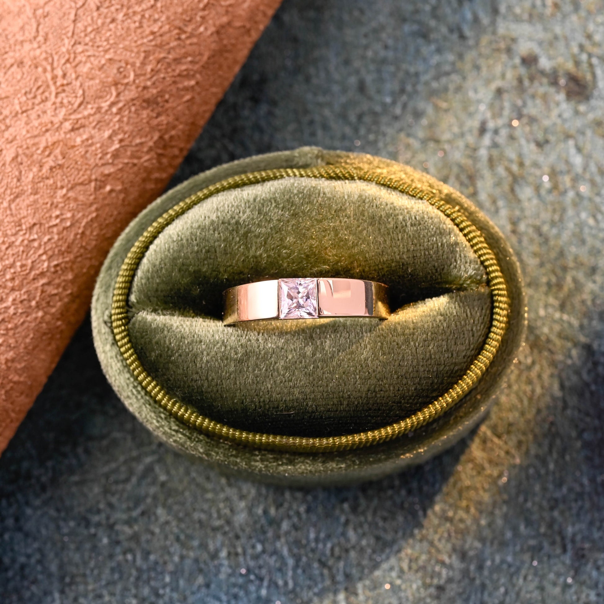 Solid Gold Princess Cut Moissanite Minimalist Wedding Band for Him