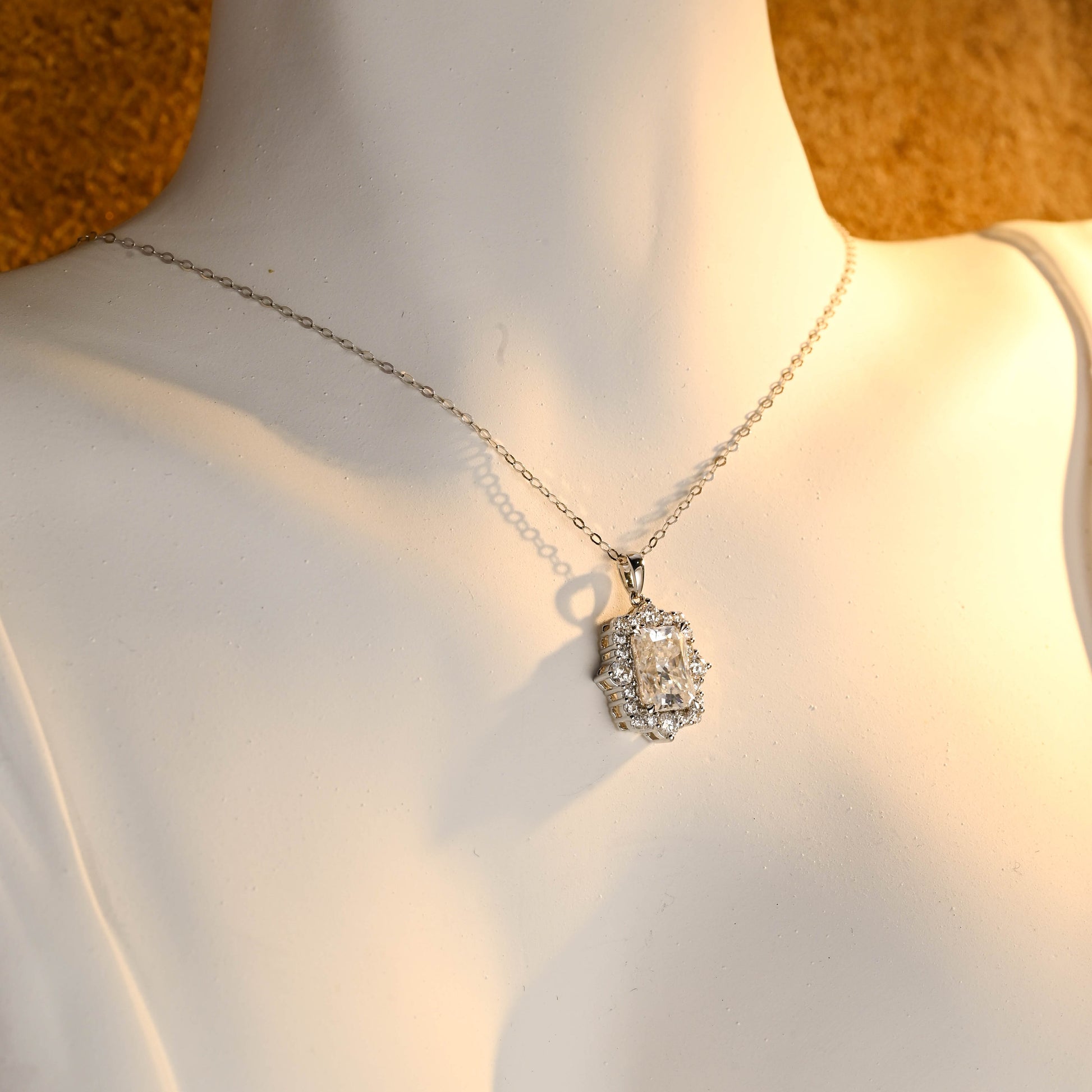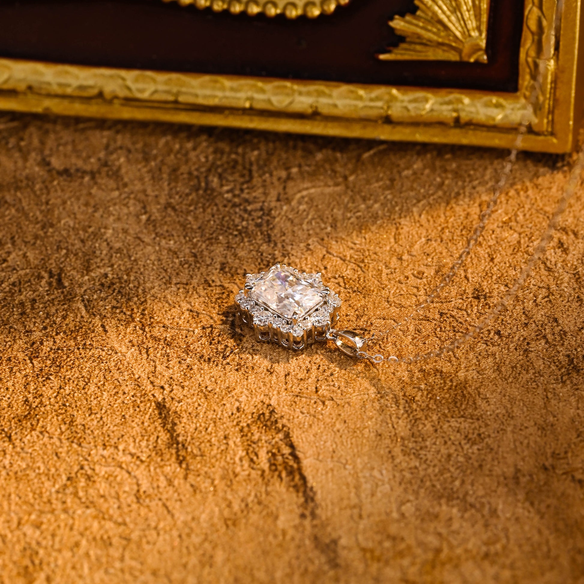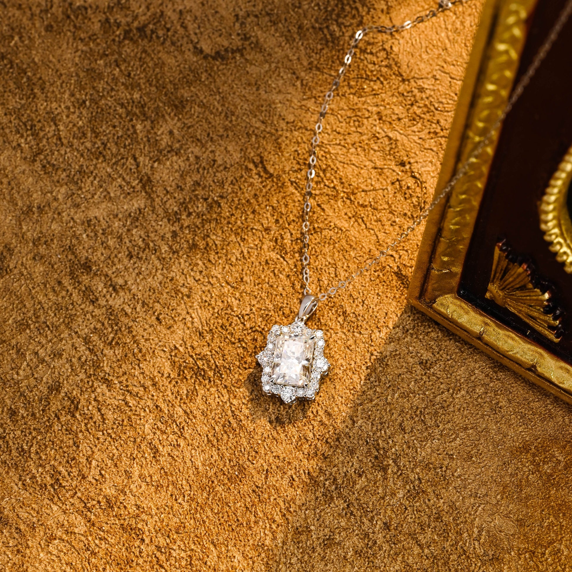 Solid Gold Radiant Cut Moissanite Pendant, Elegant Halo Pendant, Vintage Solitaire Necklace, Birthday Gift / Anniversary Gift for Women