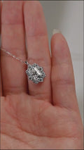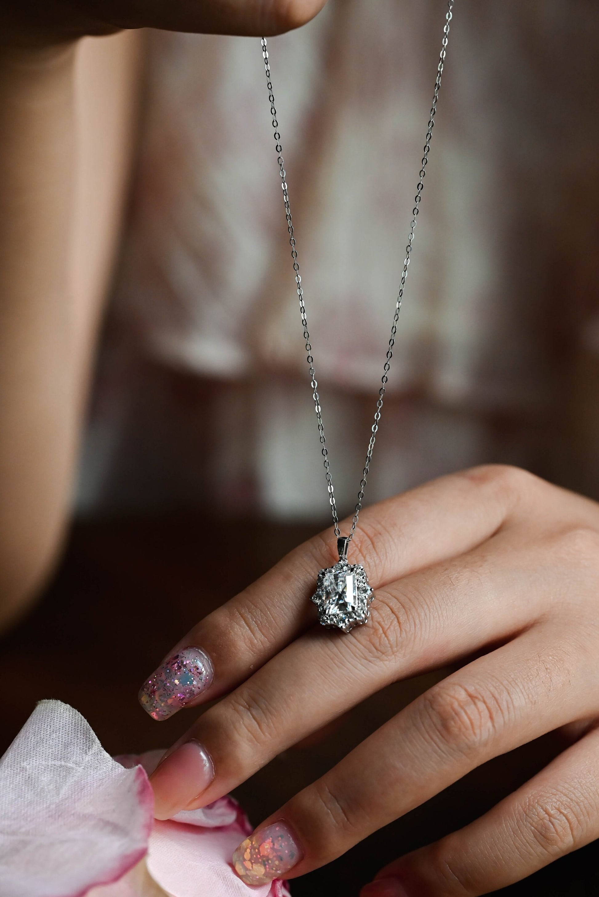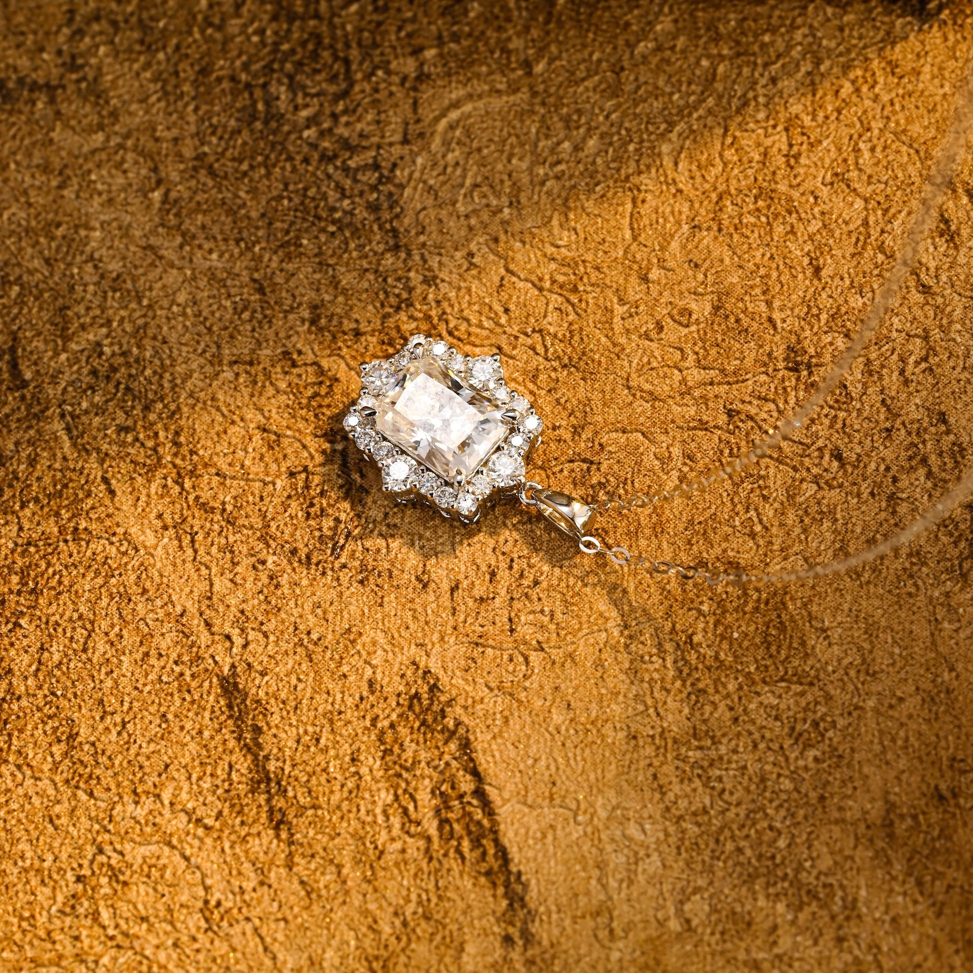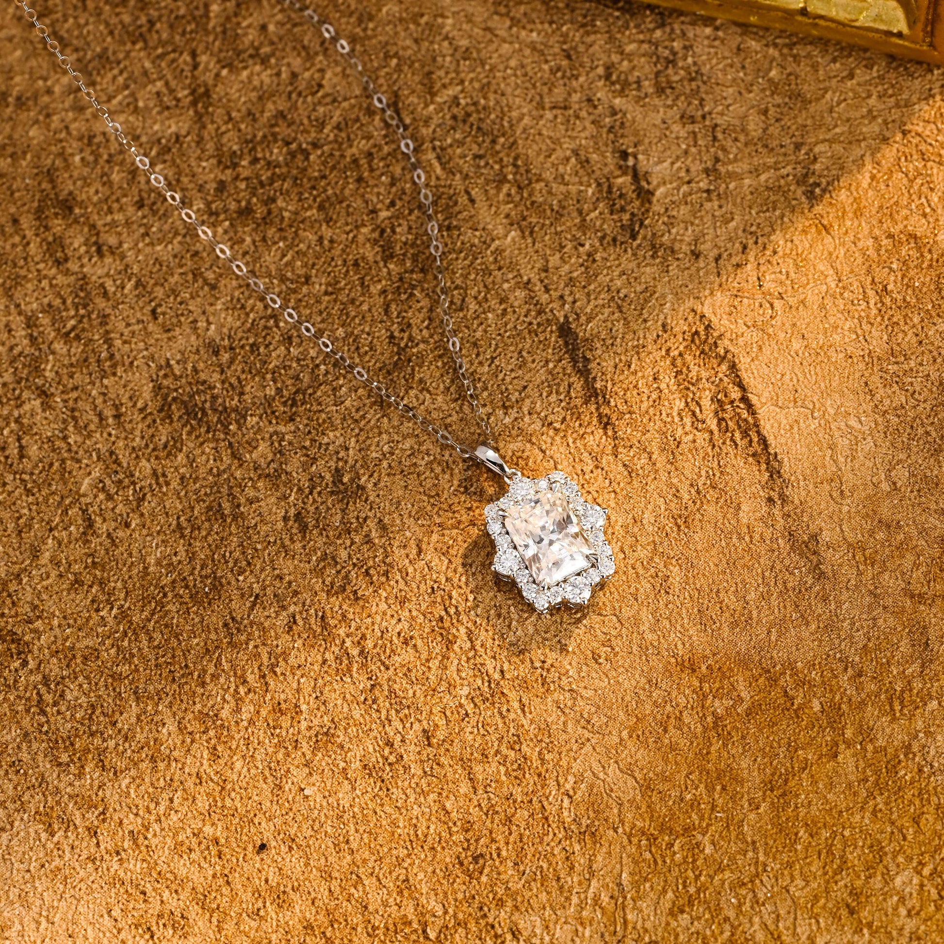 Solid Gold Radiant Cut Moissanite Pendant, Elegant Halo Pendant, Vintage Solitaire Necklace, Birthday Gift / Anniversary Gift for Women
