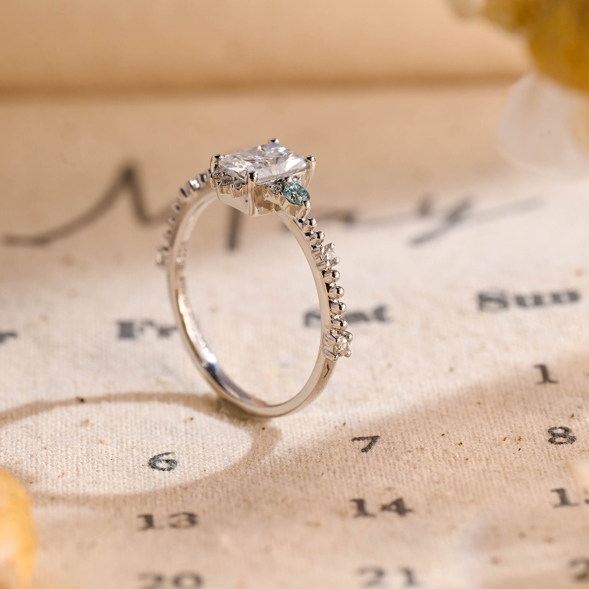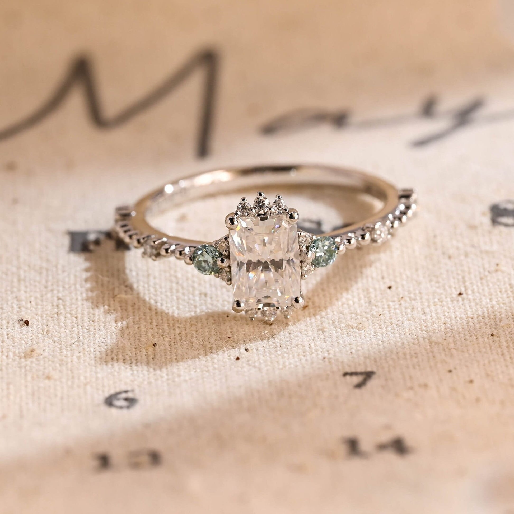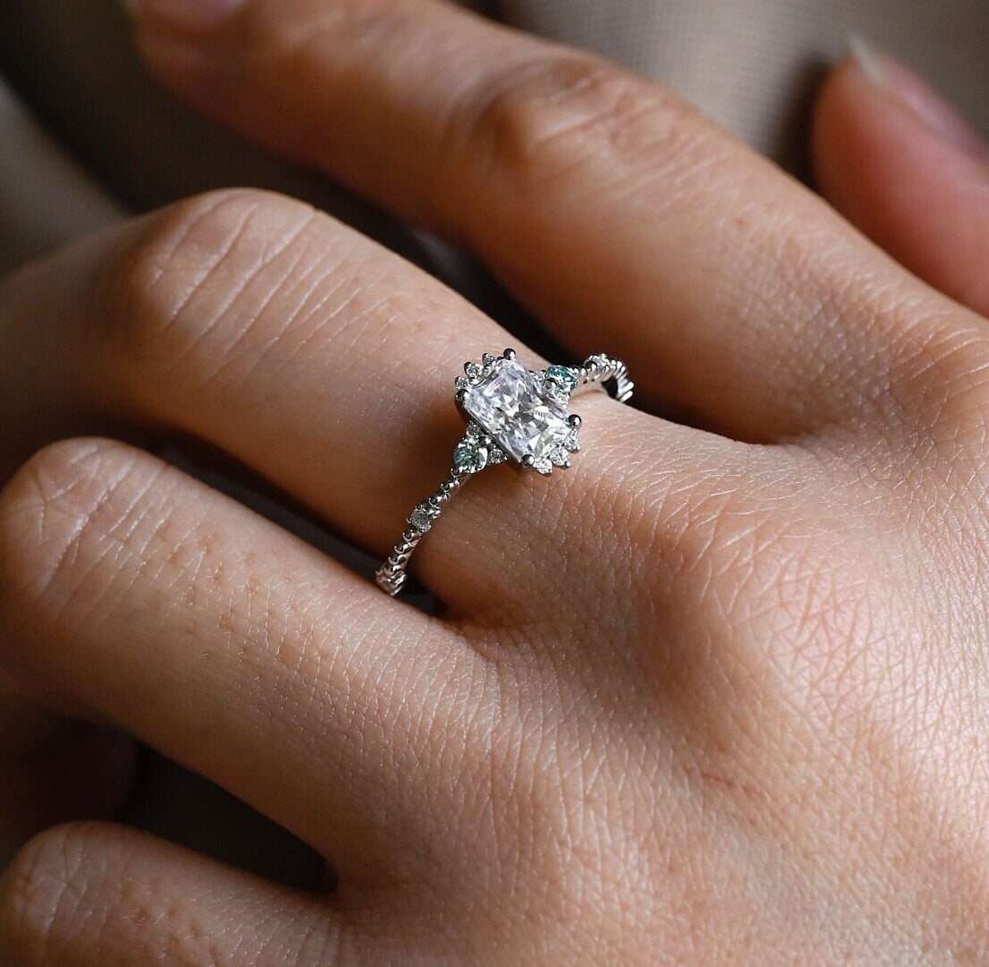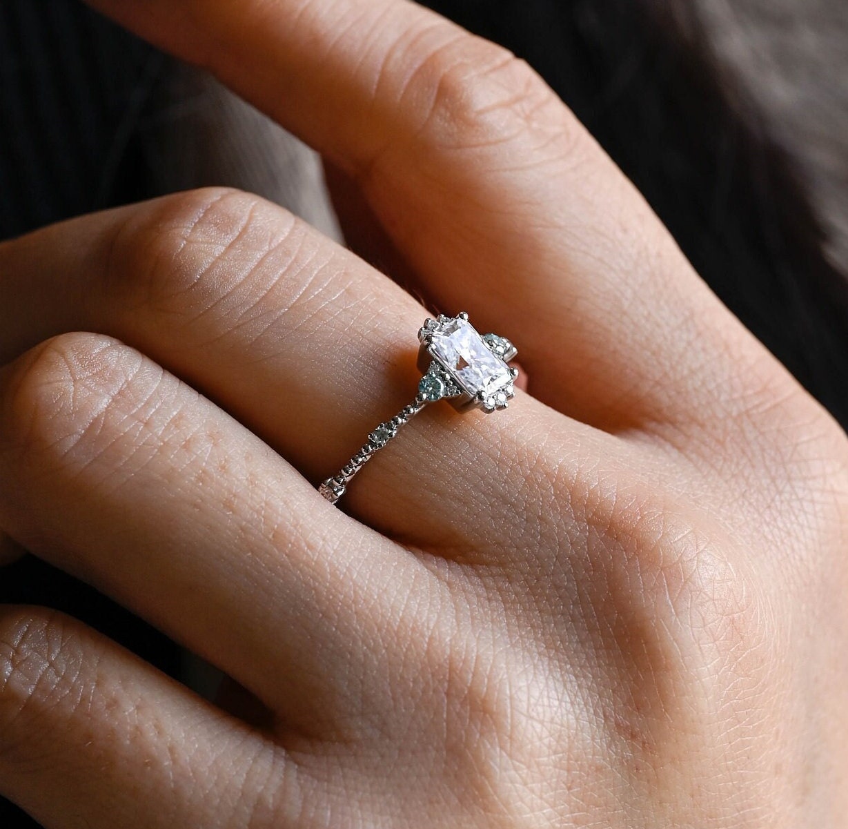 1.00ct Rectangle Radiant cut Pave Diamond Engagement Ring, VintageΒ Radiant Wedding Ring,Β Gifts for Mom