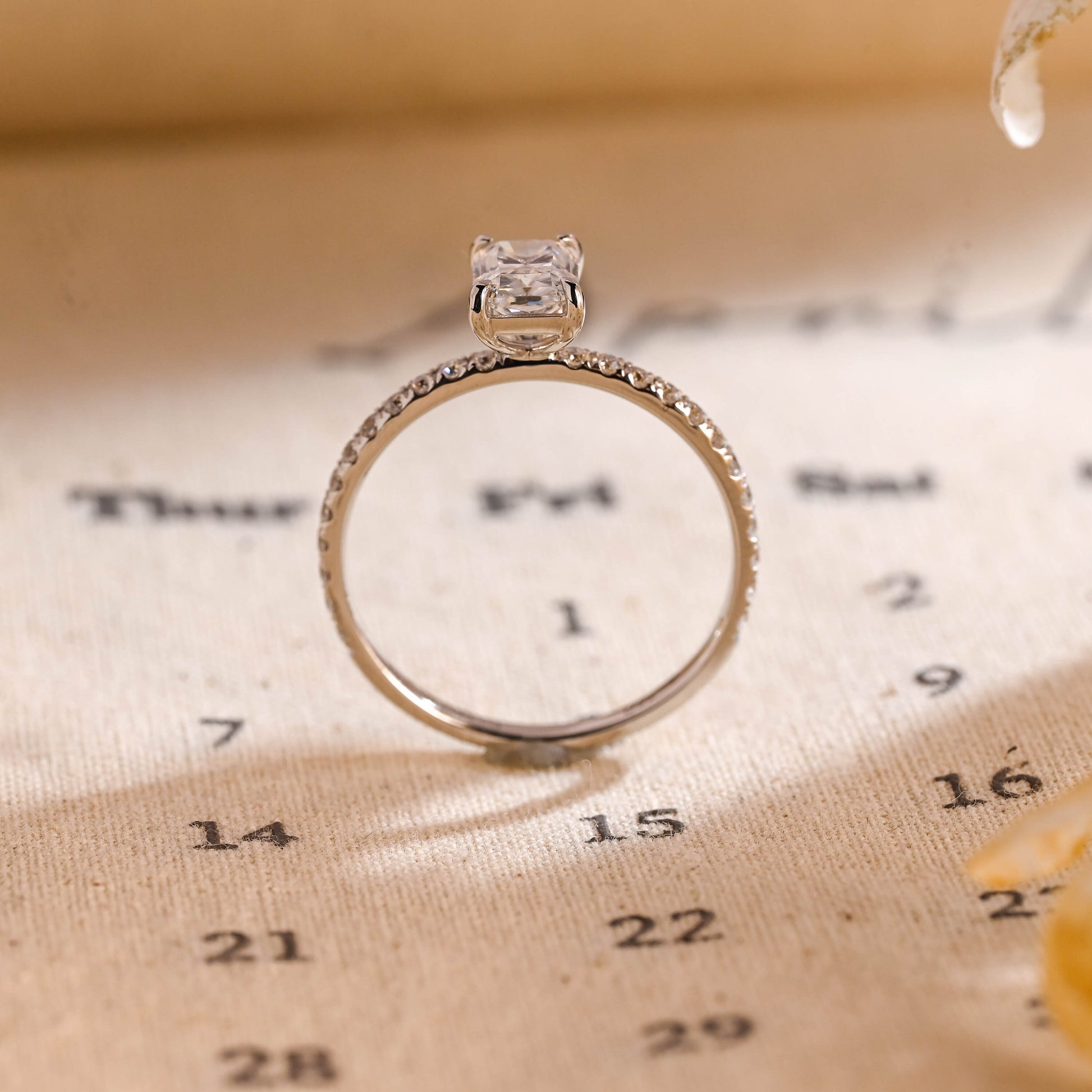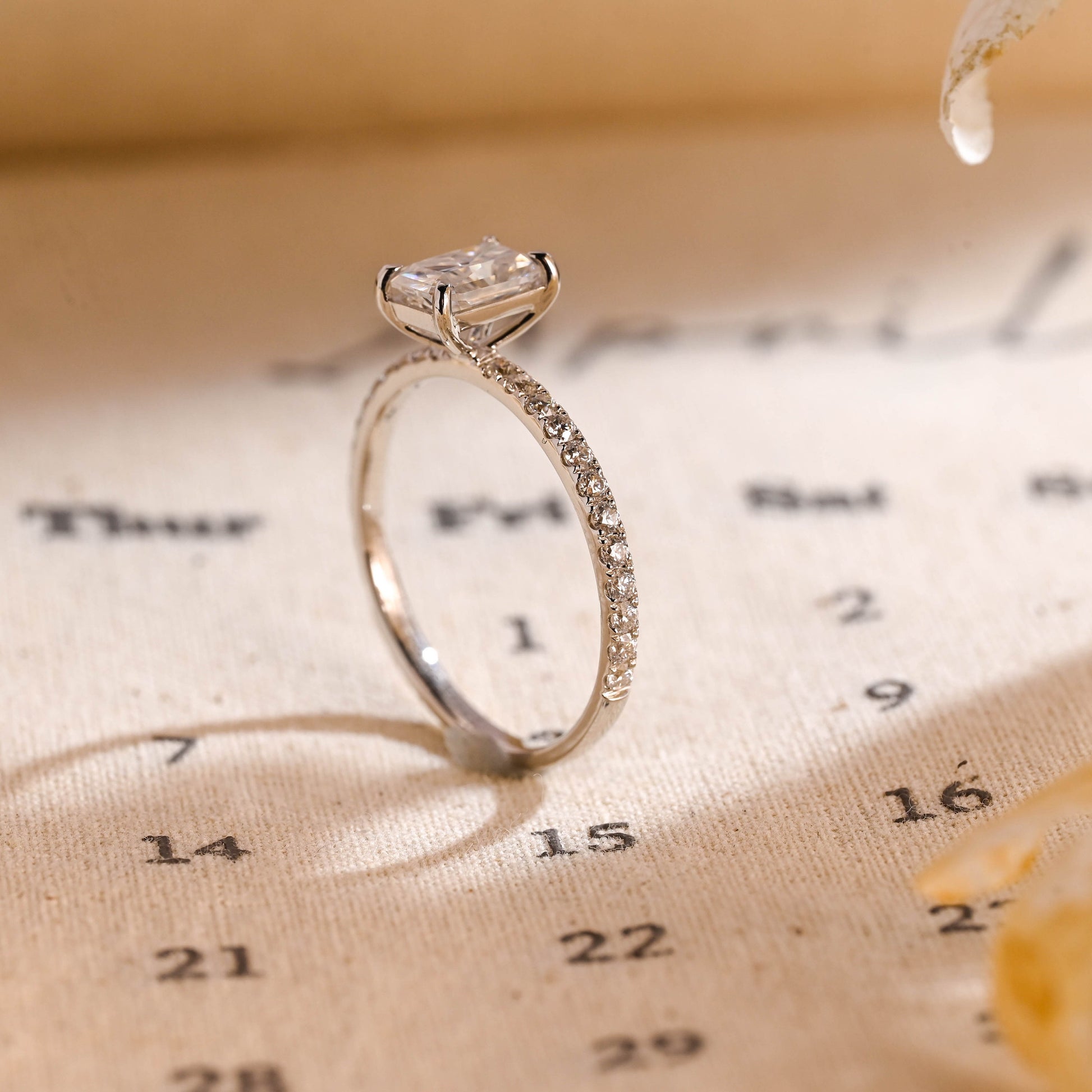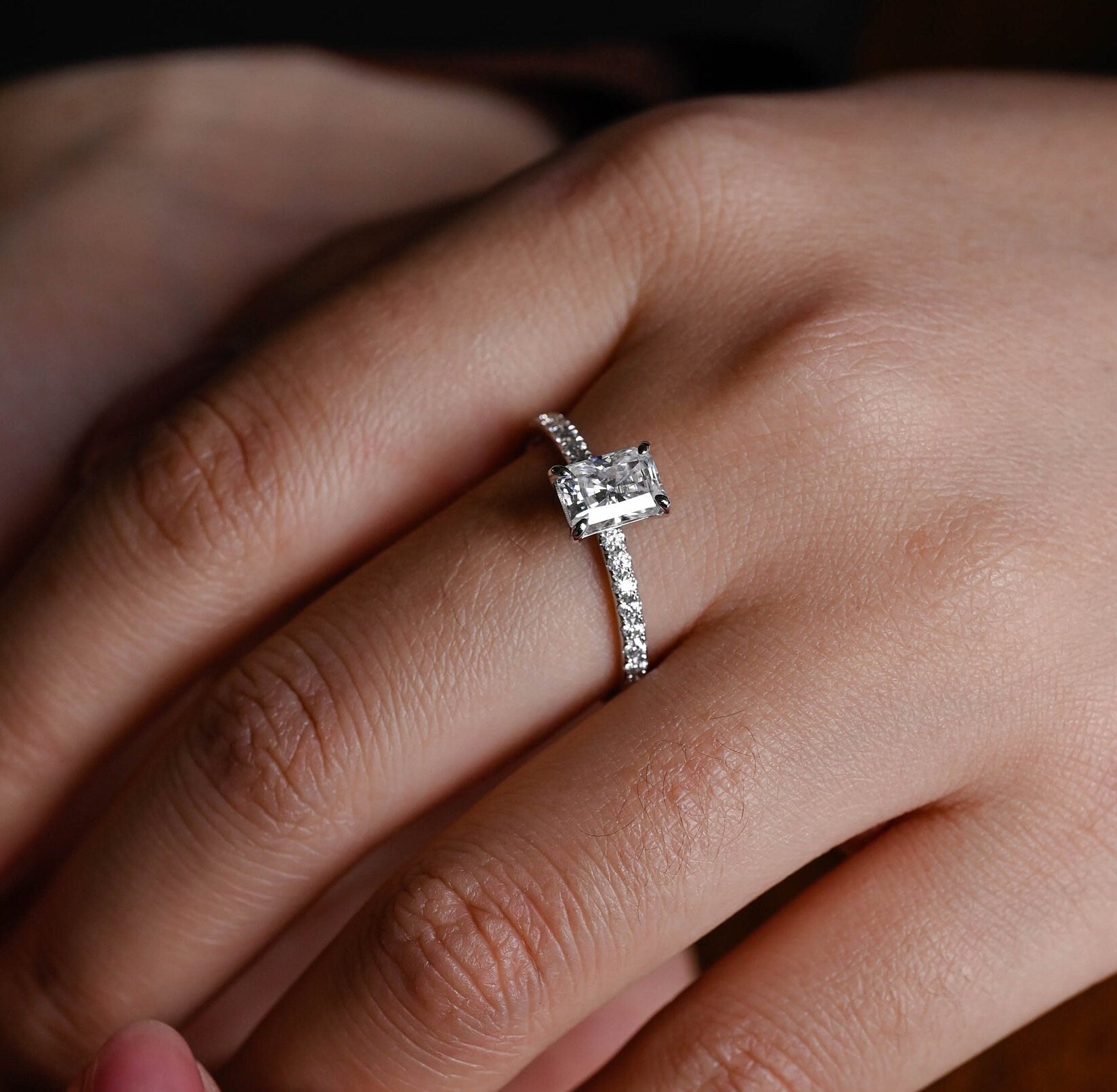 1ct Radiant Cut Pave Diamond Engagement Ring, Solitaire Rectangle Radiant Ring, Gifts for Wife
