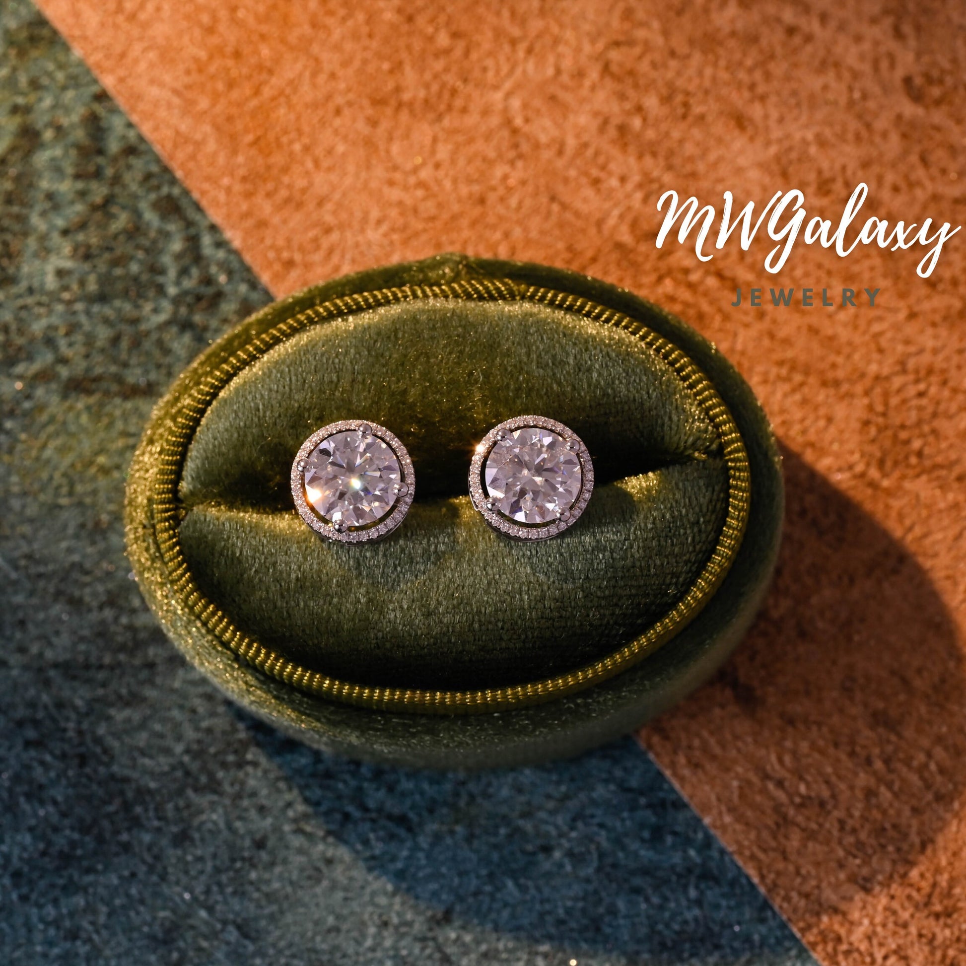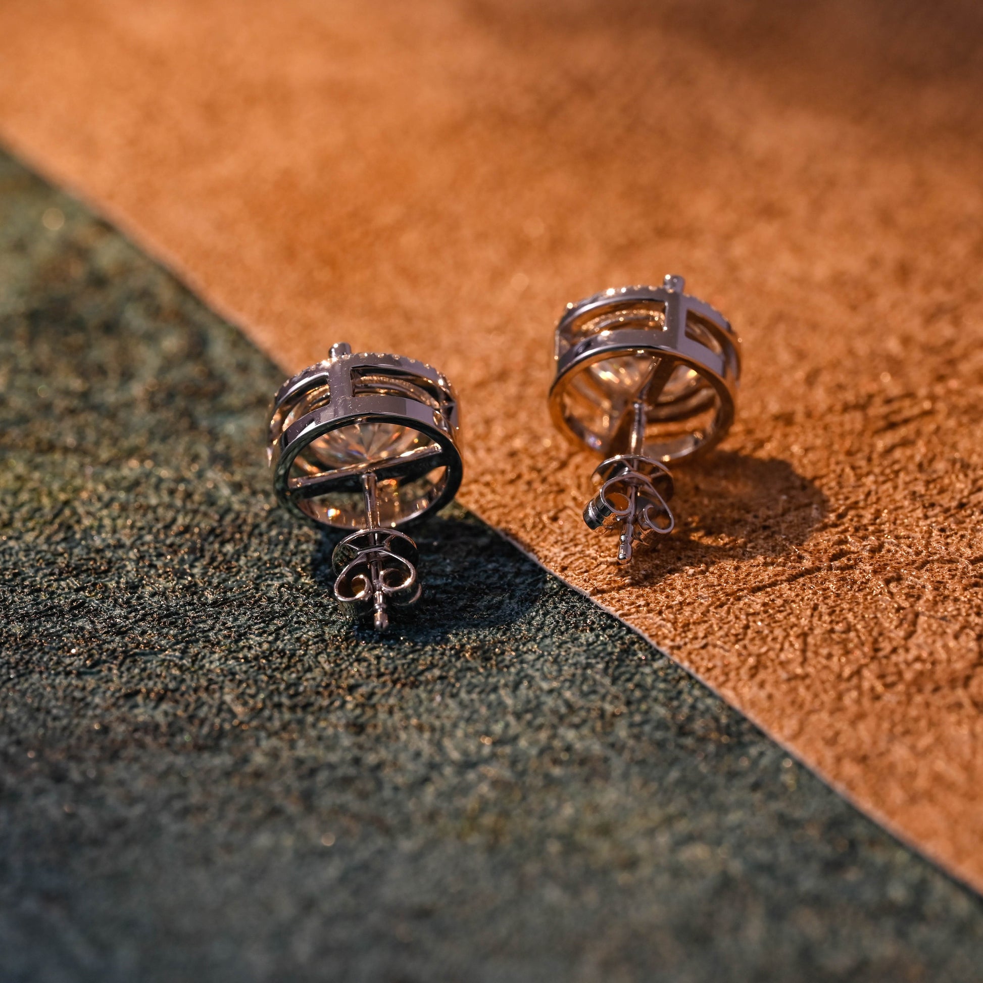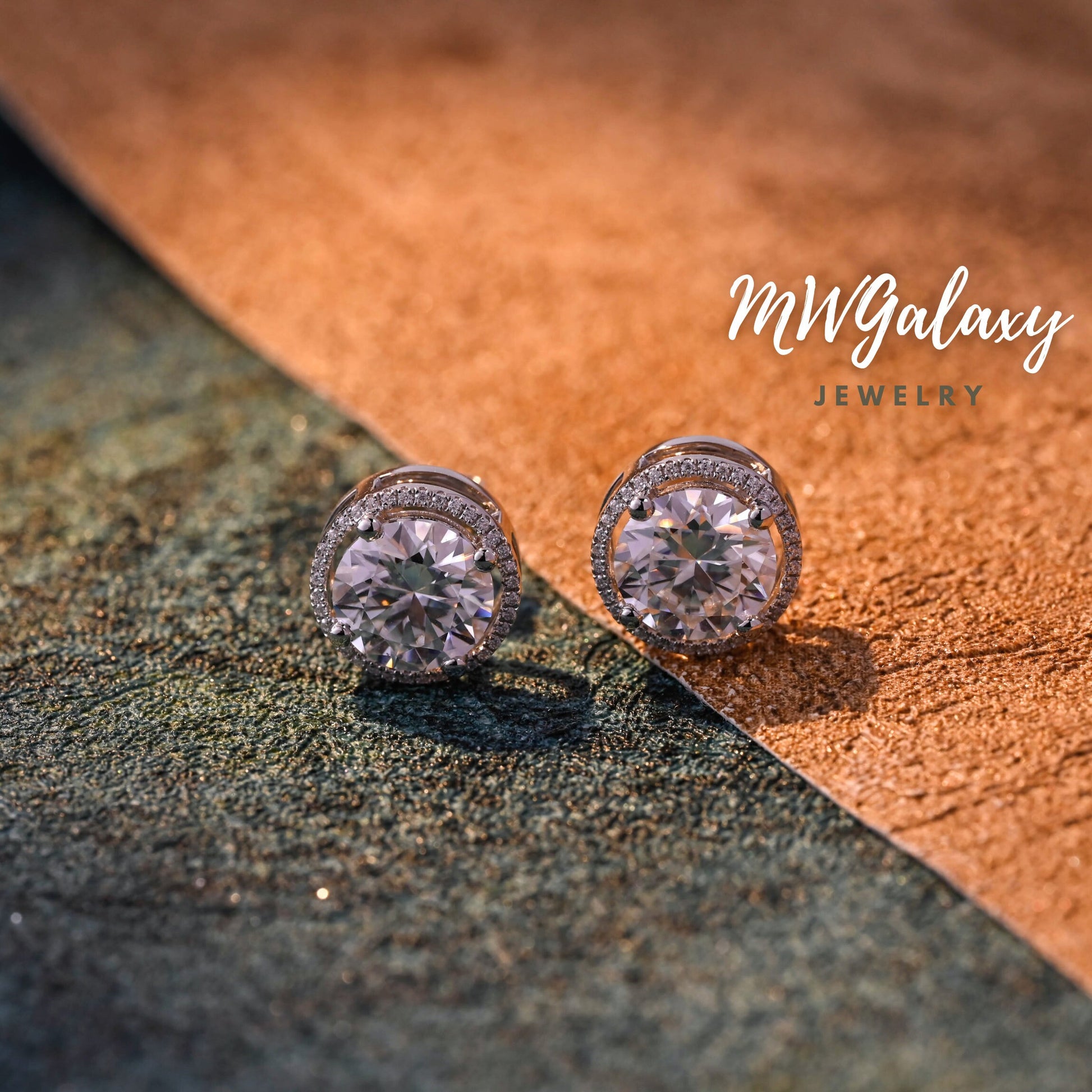 Solid Gold Round Cut Moissanite Earrings Stud for Woman, Push Back / Screw Back Studs, Anniversary / Birthday Gift for Girl, Wife, Woman