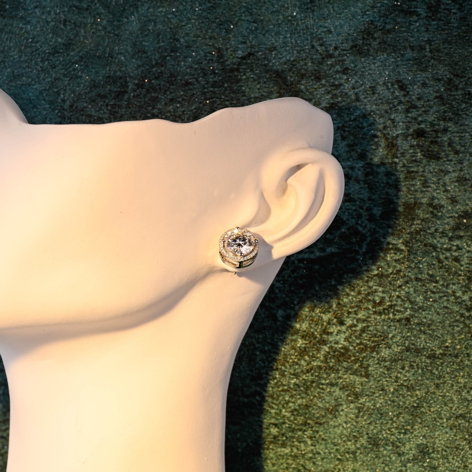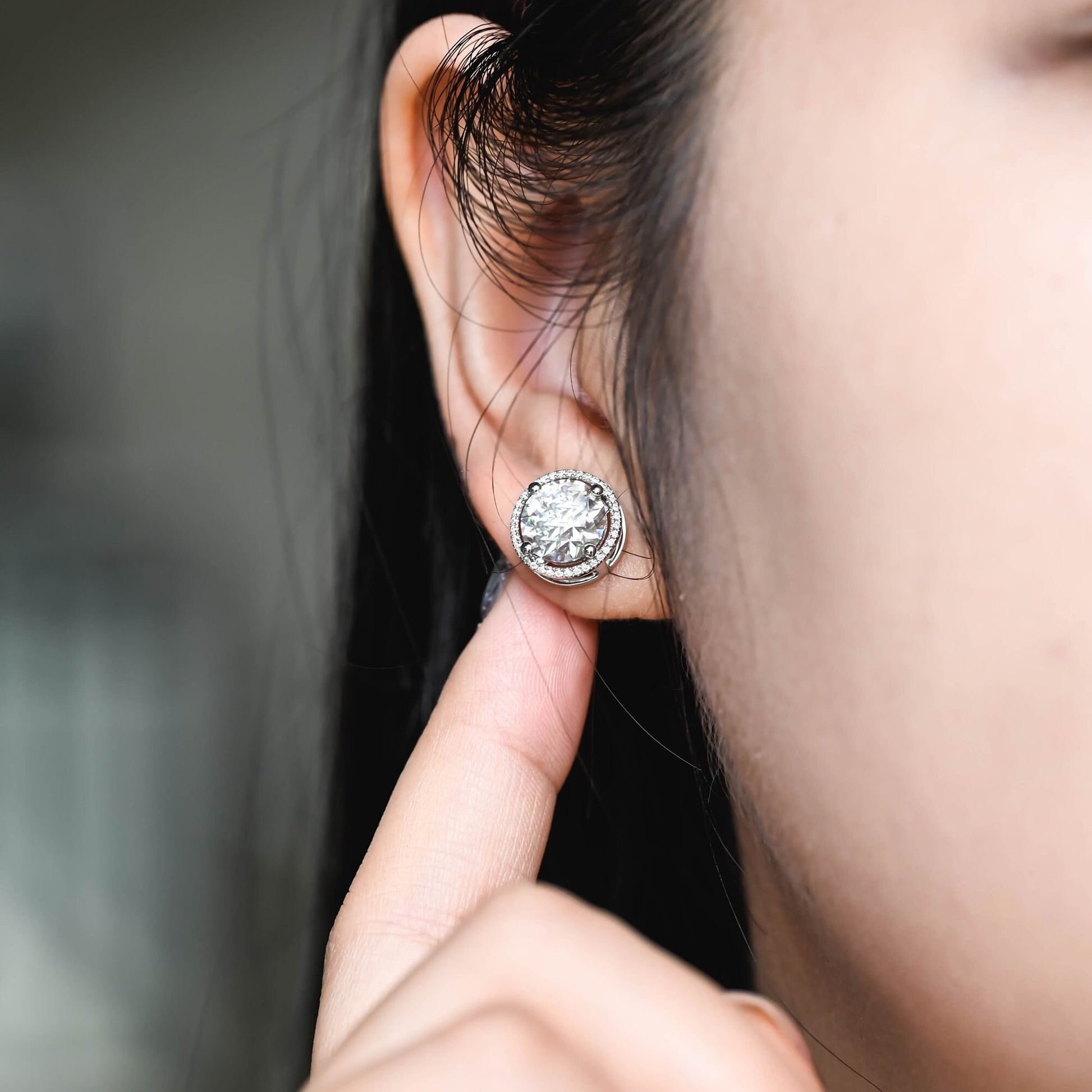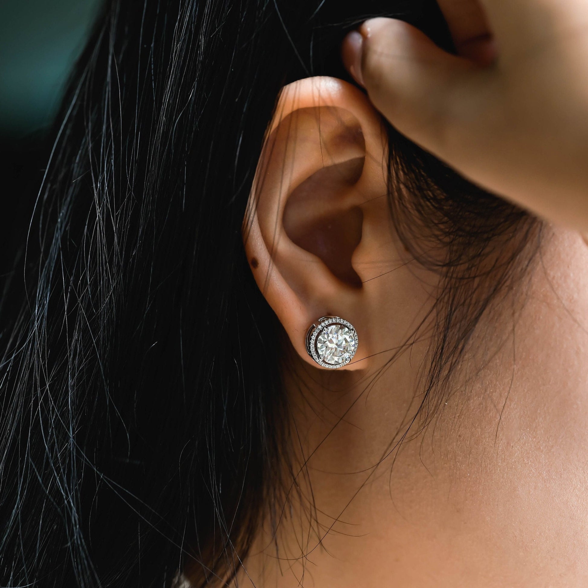 Solid Gold Round Cut Moissanite Earrings Stud for Woman, Push Back / Screw Back Studs, Anniversary / Birthday Gift for Girl, Wife, Woman