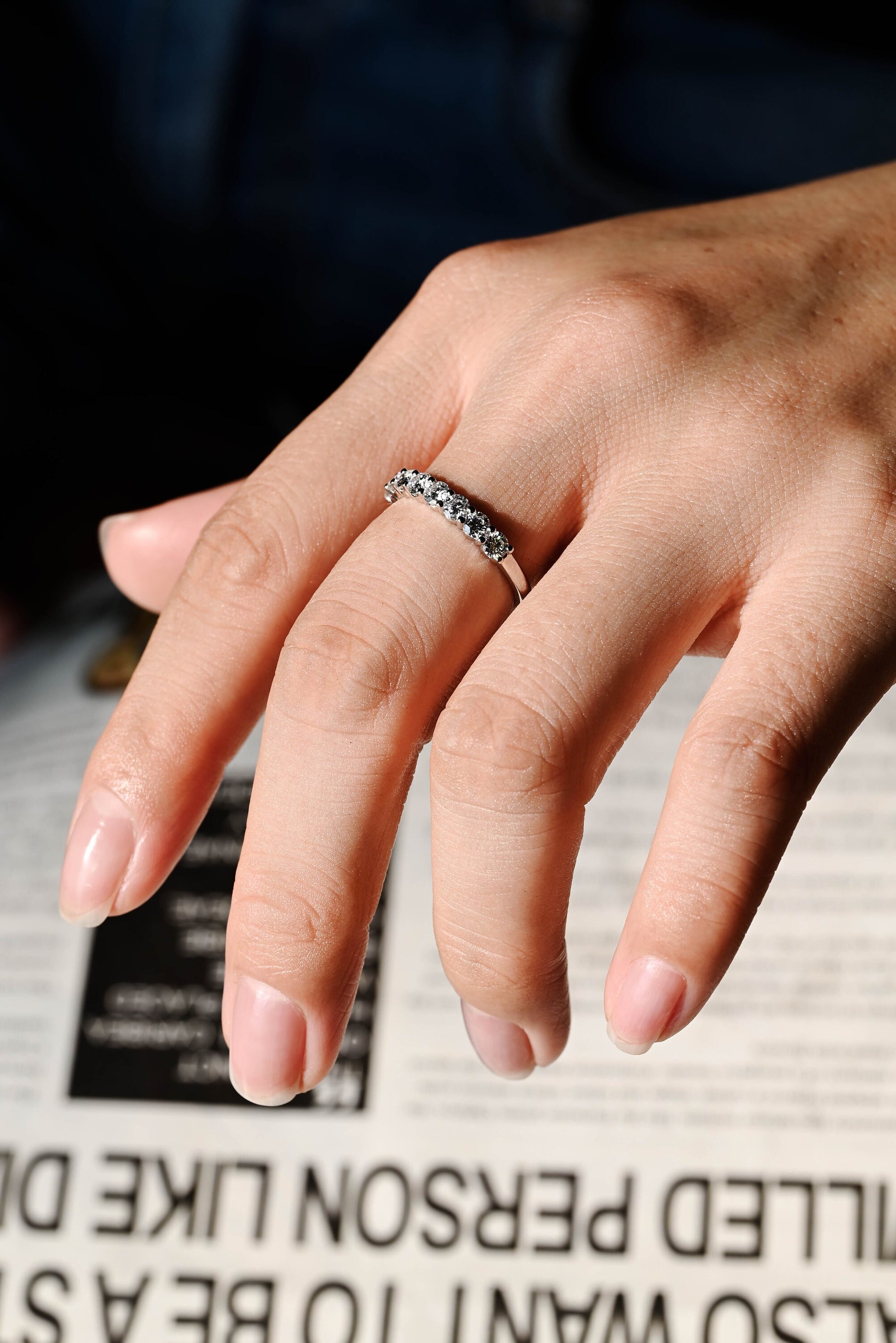 Solid Gold Round Cut Moissanite Wedding Band, Classic Wedding Ring, Art Deco Bridal Band, Anniversary / Birthday Gift for Woman, Wife, Girl