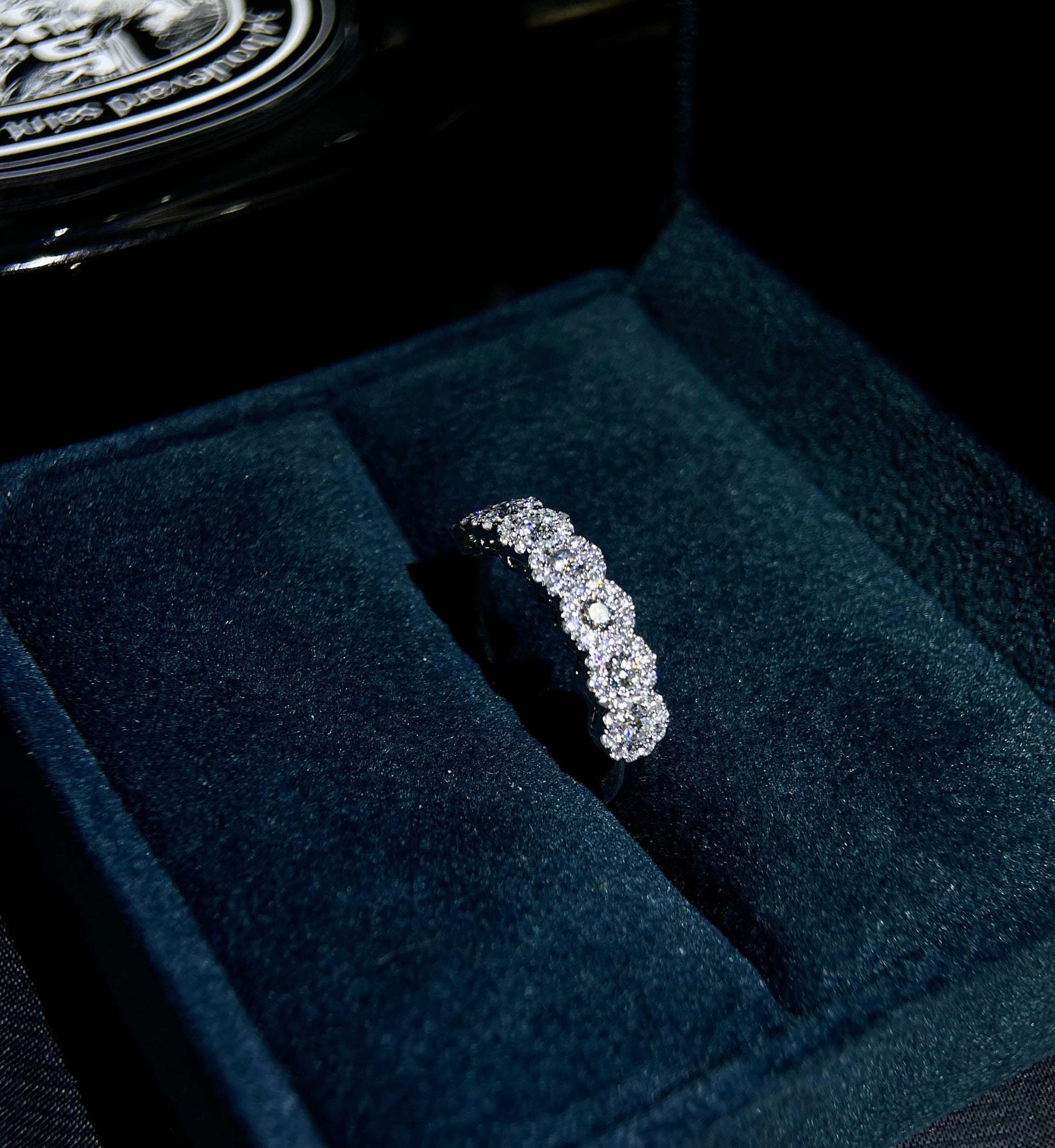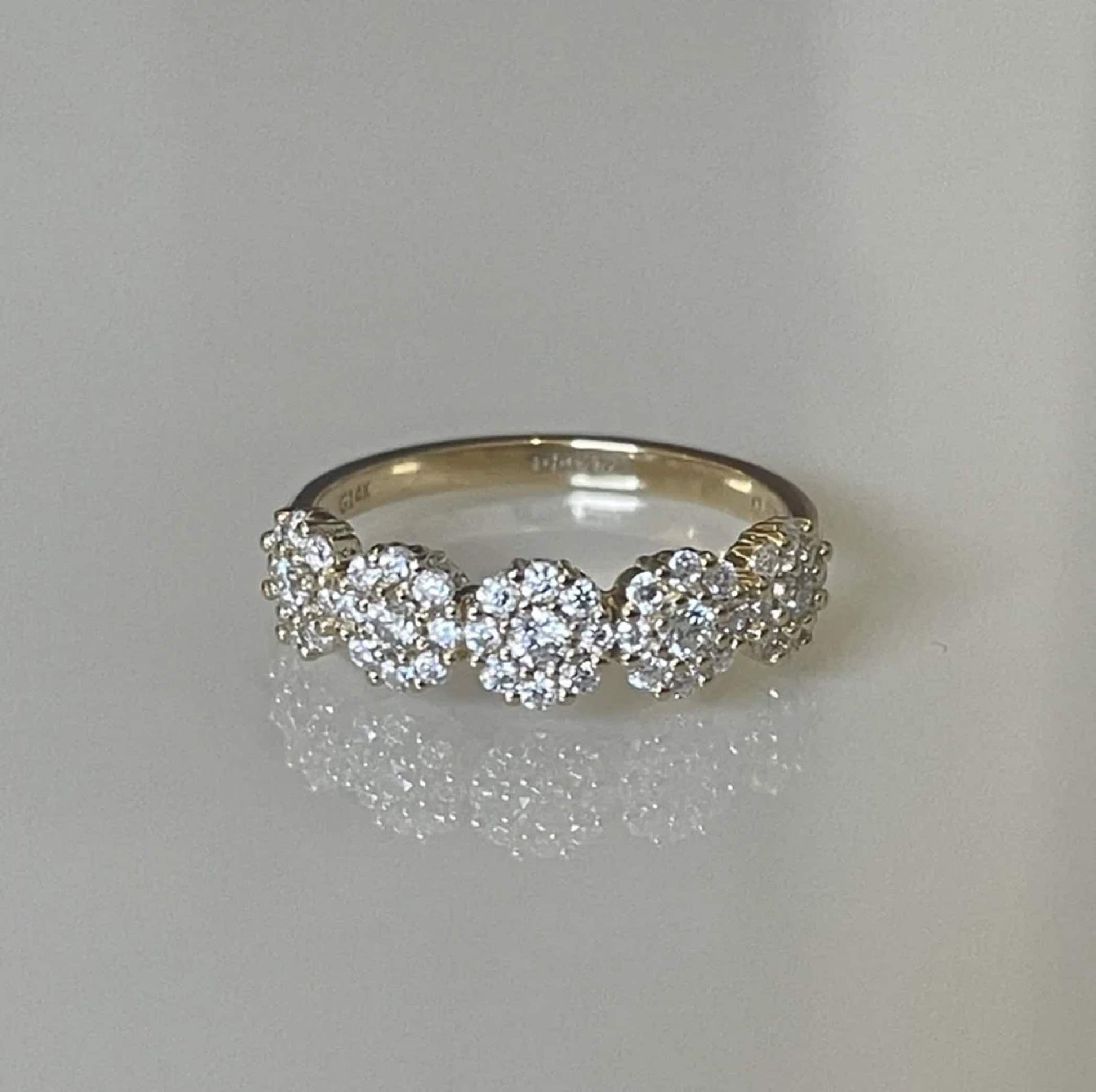 Solid Gold Round Cut Moissanite Vintage Floral Cluster for Woman