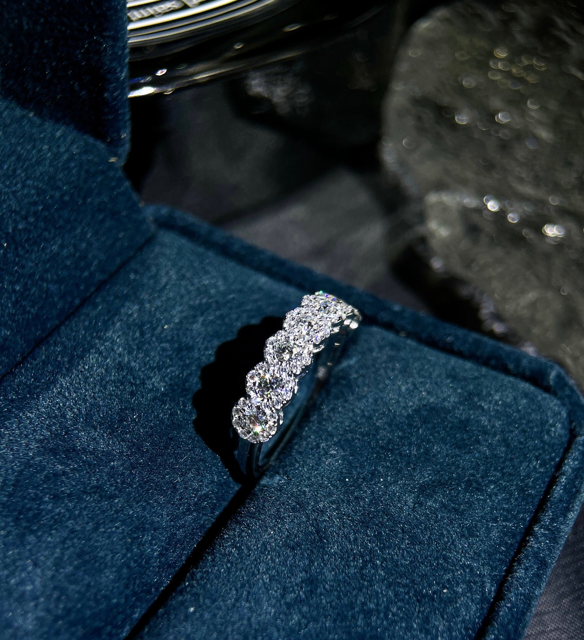 Our jewelry is crafted with simulant diamonds, moissanite, natural diamonds, lab-grown diamonds, and fine metals like 925 silver (with gold plating) and solid 10K, 14K, and 18K gold in white, yellow, and rose gold.