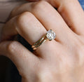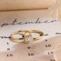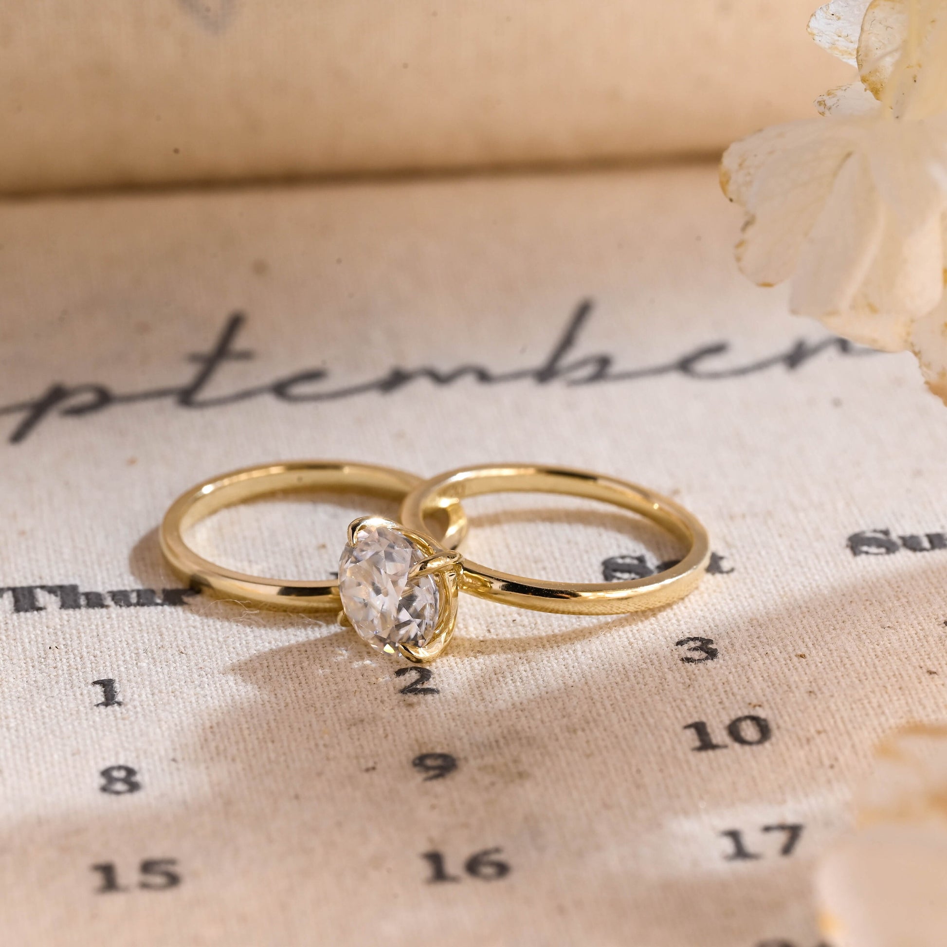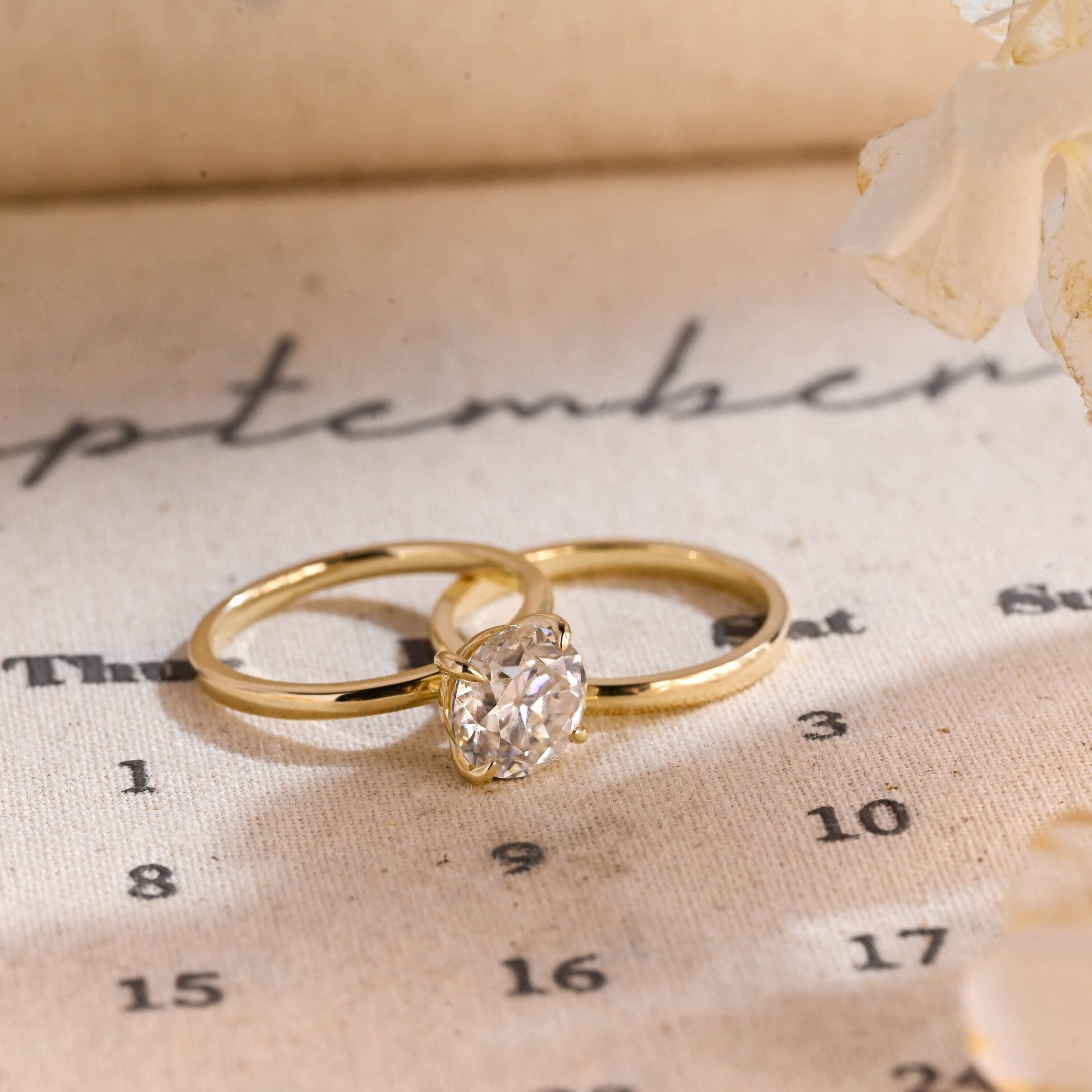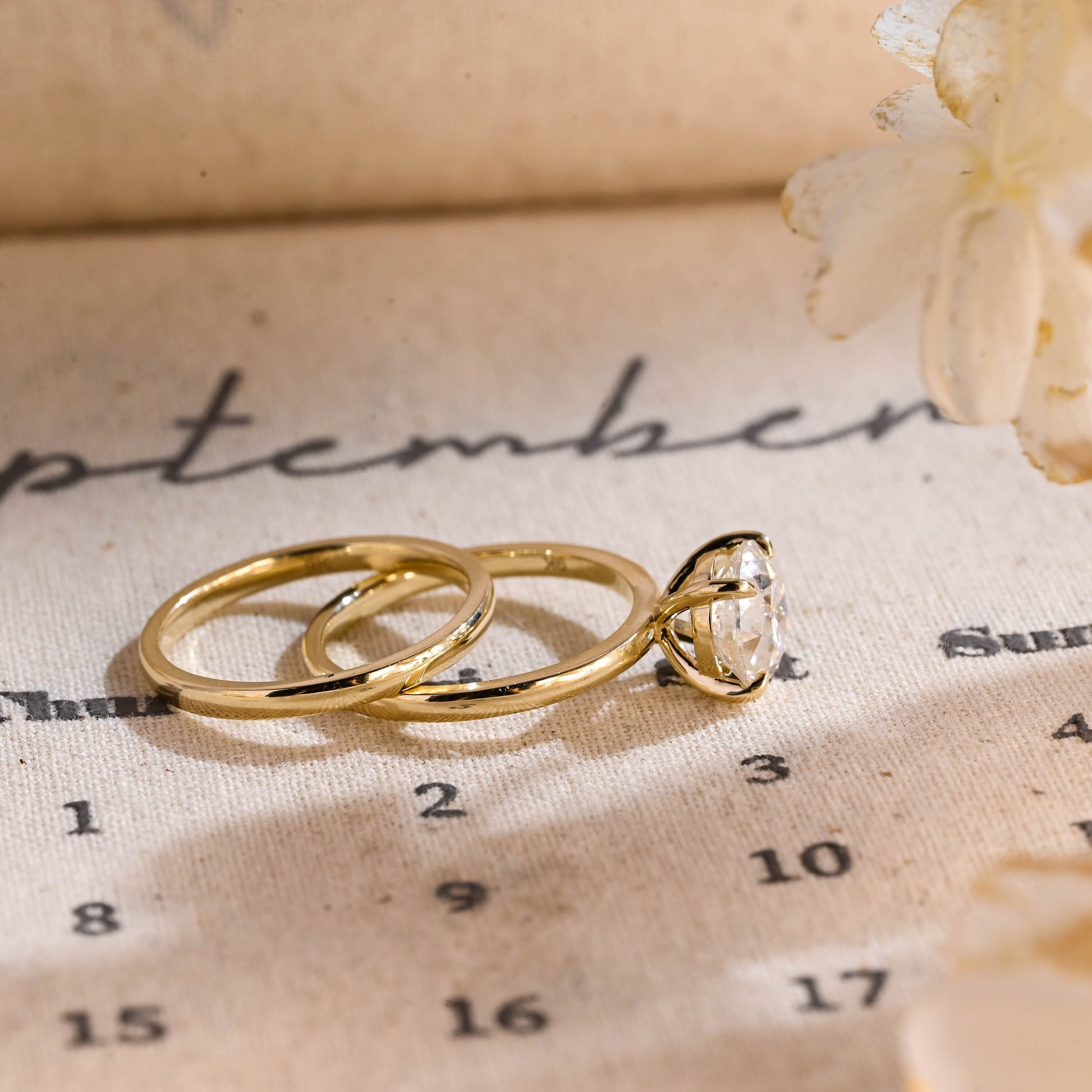 Solid Gold Round Moissanite Engagement Ring Set, Plain Band Bridal Ring Set for Women, Round Diamond Moissanite Wedding Ring Set, Ring Gifts