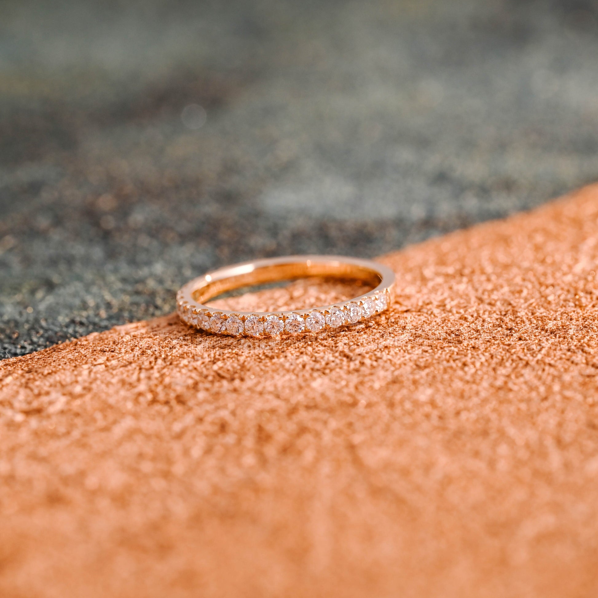 Solid Gold Round Moissanite Wedding Band, Classic Wedding Ring for Woman, Minimalist Dainty Ring, Anniversary Gift for Girl, Woman, Wife