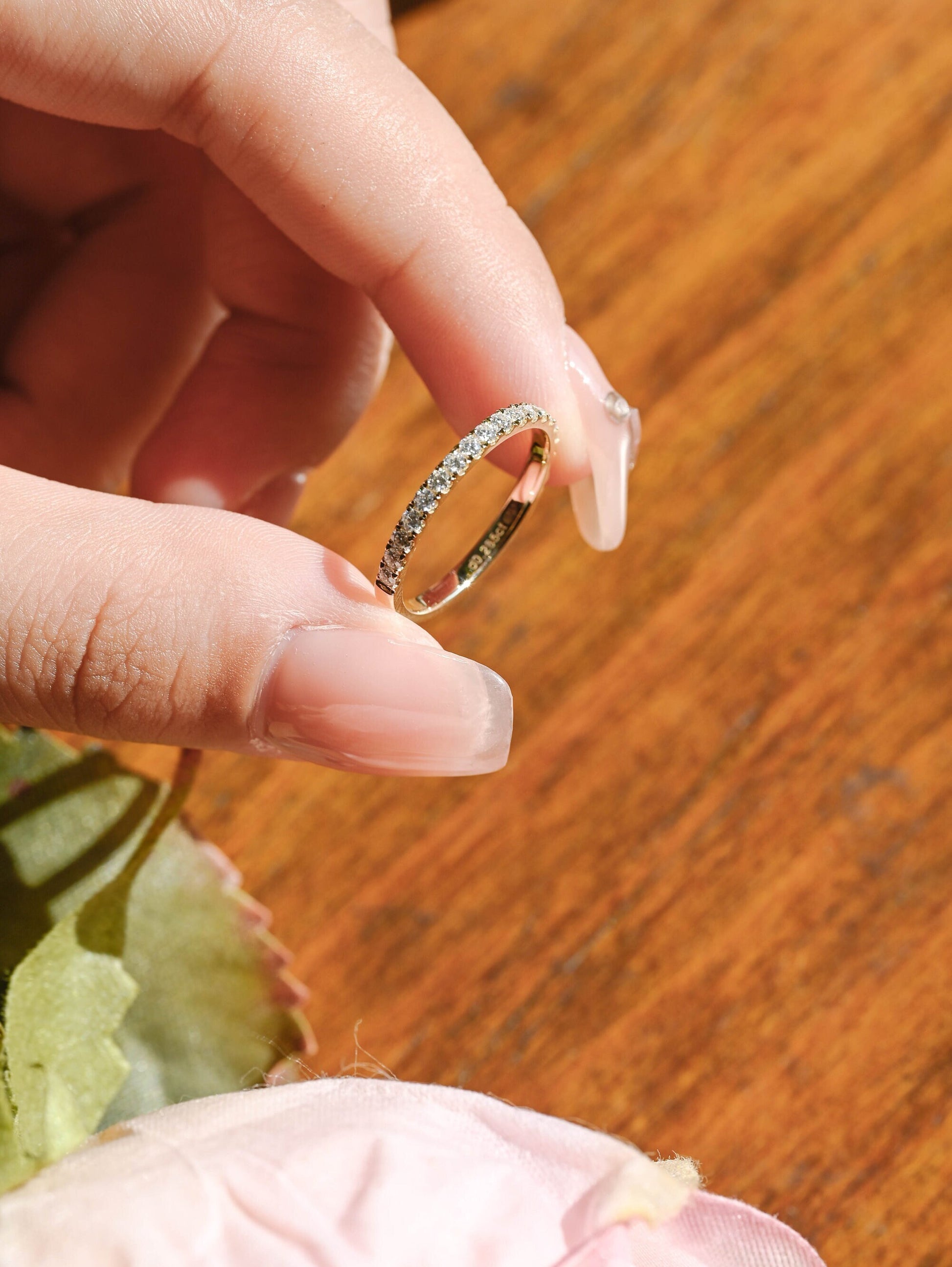 Our jewelry is crafted with simulant diamonds, moissanite, natural diamonds, lab-grown diamonds, and fine metals like 925 silver (with gold plating) and solid 10K, 14K, and 18K gold in white, yellow, and rose gold.
