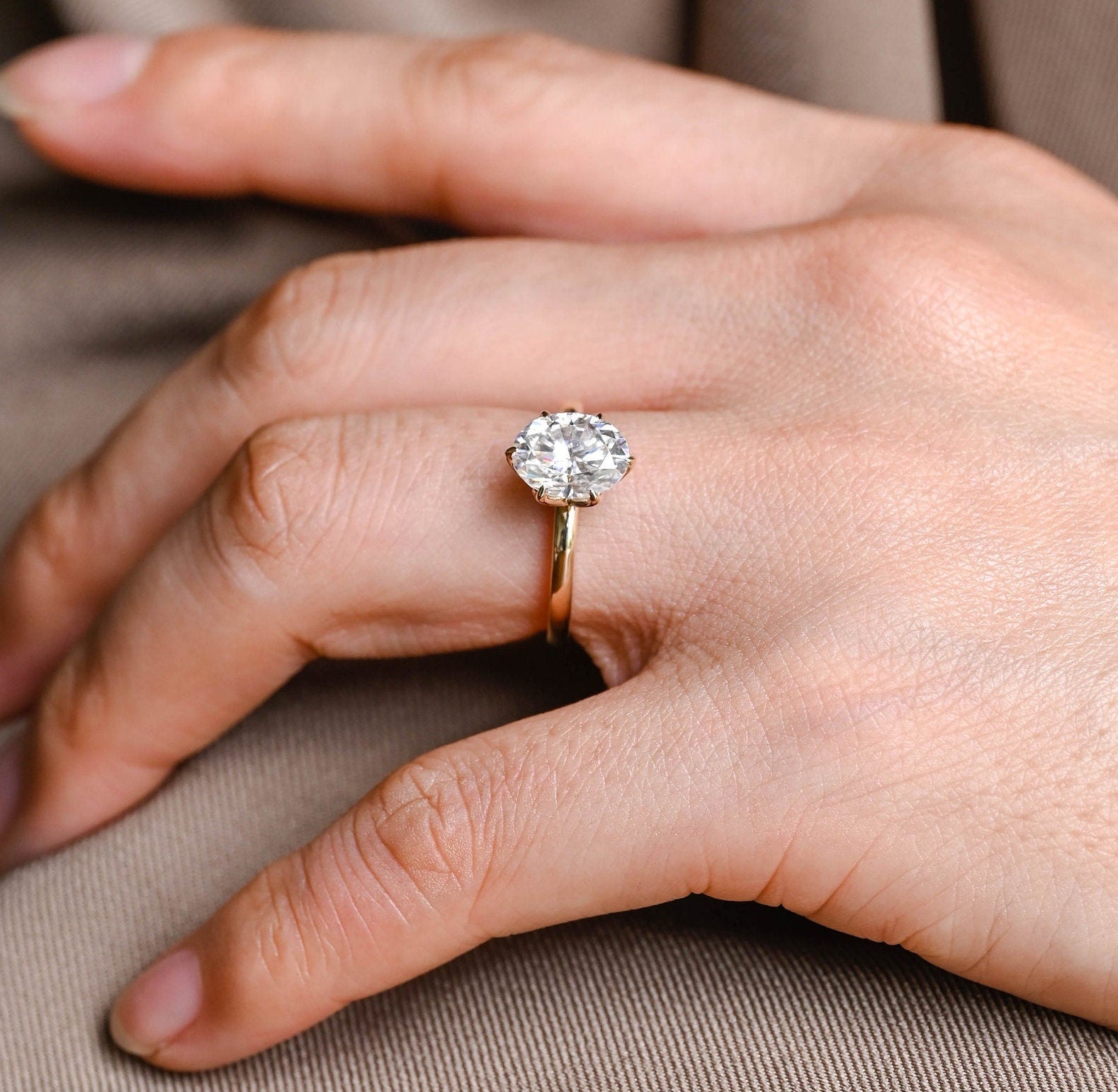 2ct Tulip Solitaire Oval Diamond Engagement Ring, Classic Solitaire 6 Prongs Oval Cut Ring,Β Valentine's Gifts for Her