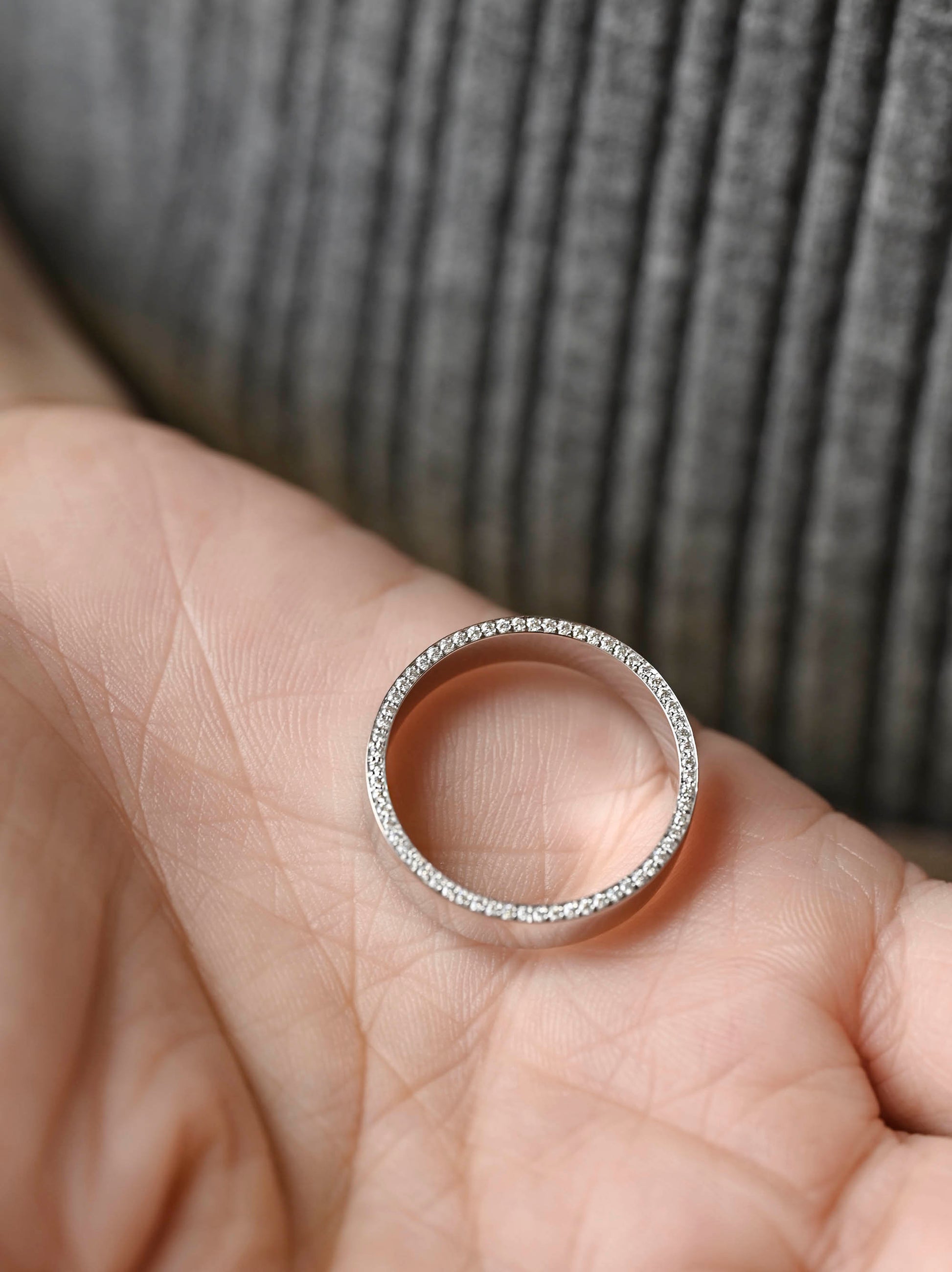 Our jewelry is crafted with simulant diamonds, moissanite, natural diamonds, lab-grown diamonds, and fine metals like 925 silver (with gold plating) and solid 10K, 14K, and 18K gold in white, yellow, and rose gold.