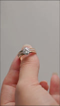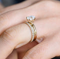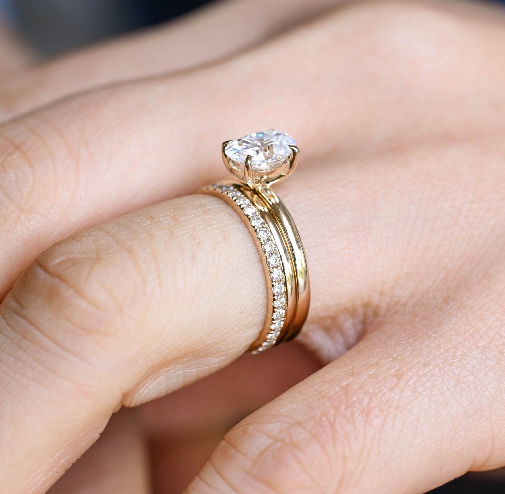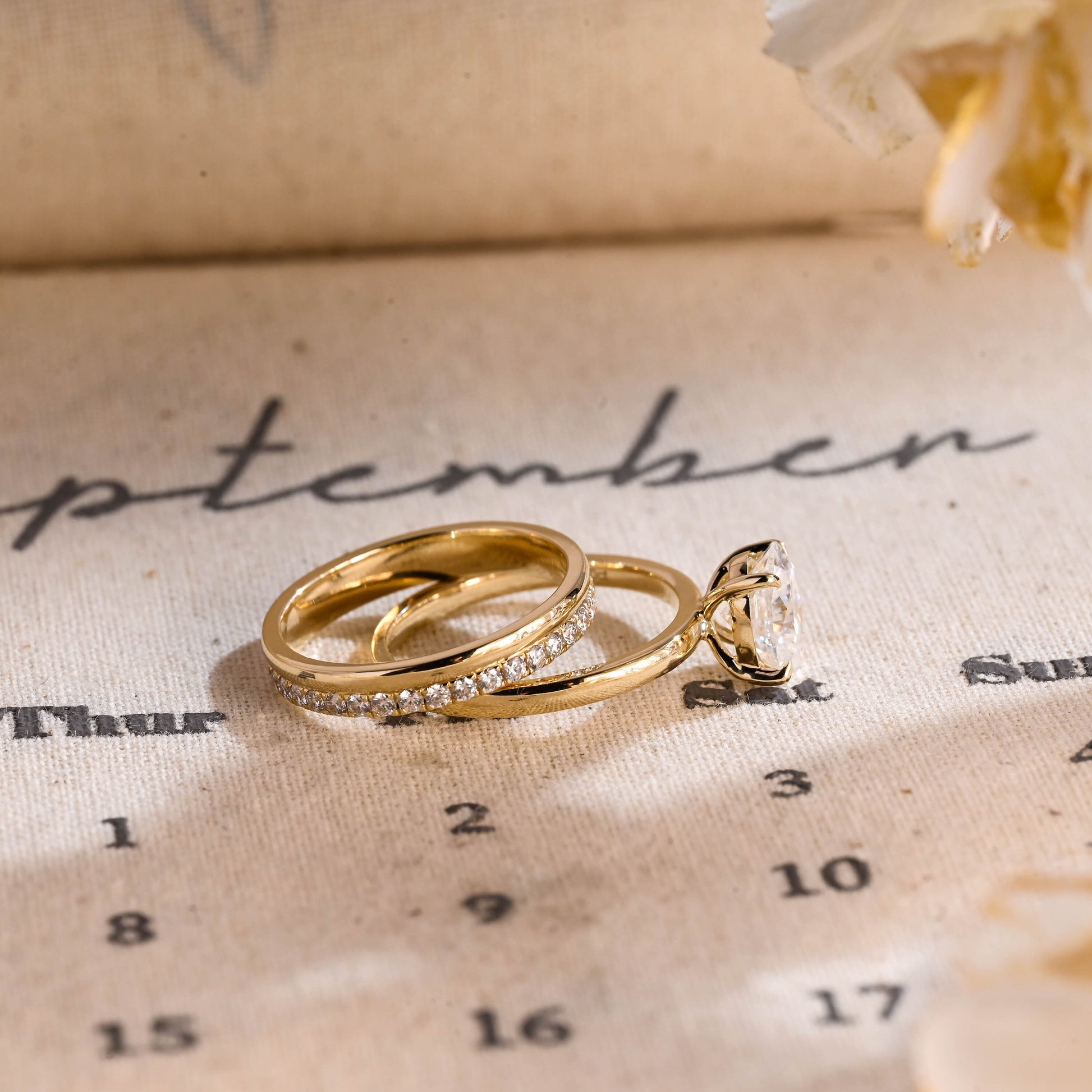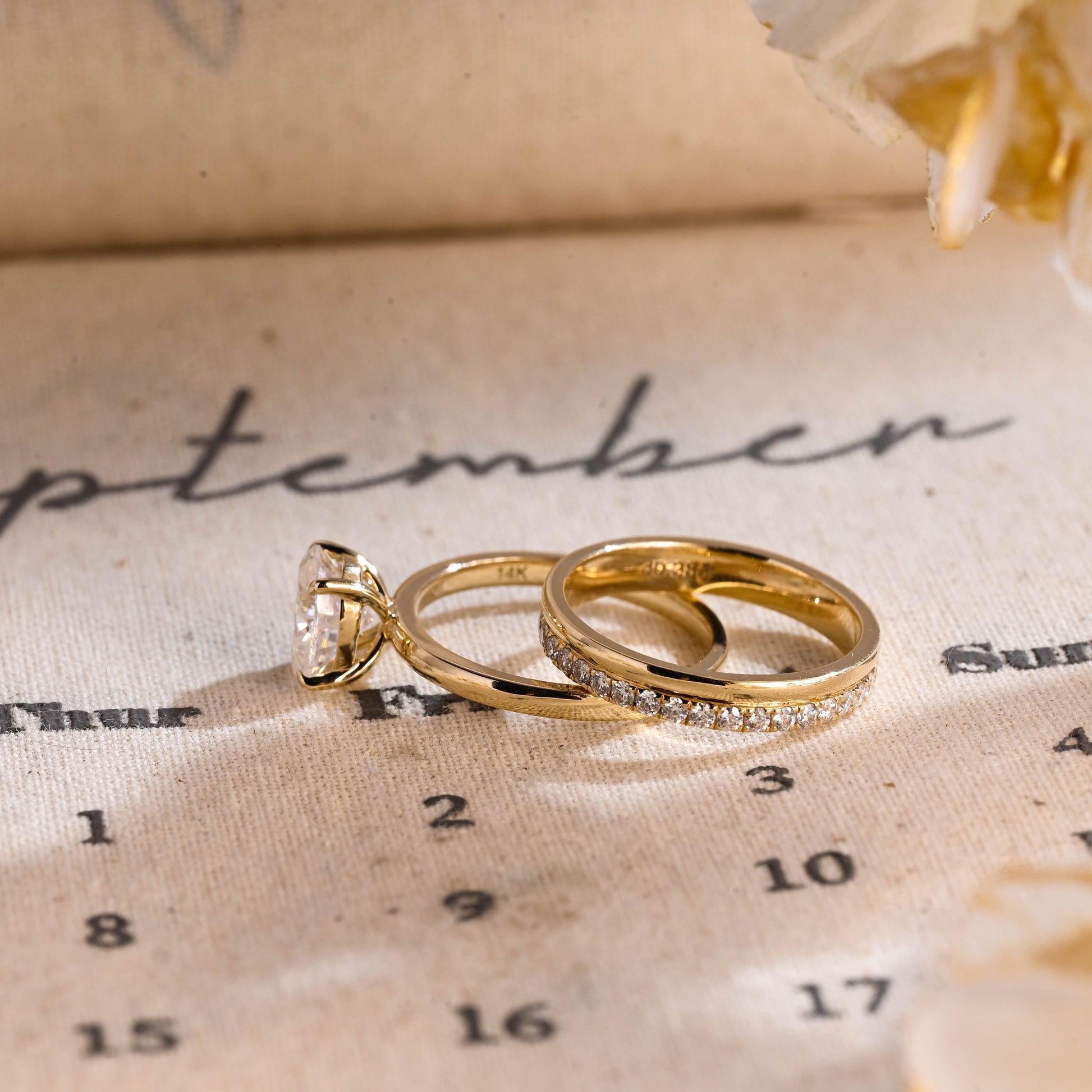 Solitaire Oval Moissanite Engagement Ring Set, Real Solid Gold Full-Eternity Round Moissanite Bridal Ring Set Wedding Ring Set for Women