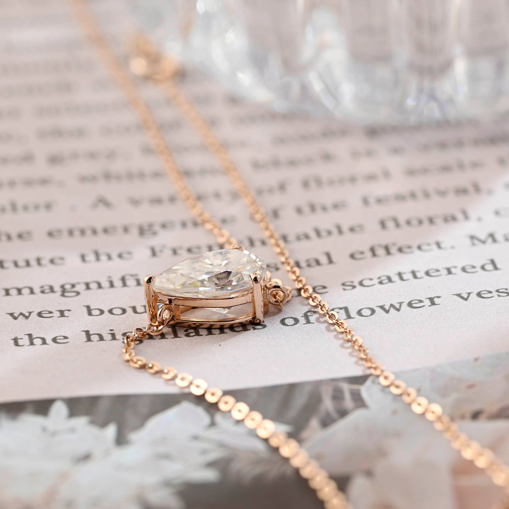 Solitaire Pear Moissanite Engagement Pendant Necklace, Solid Gold Moissanite Pendant Necklace Anniversary Necklace/Birthday Christmas Gifts