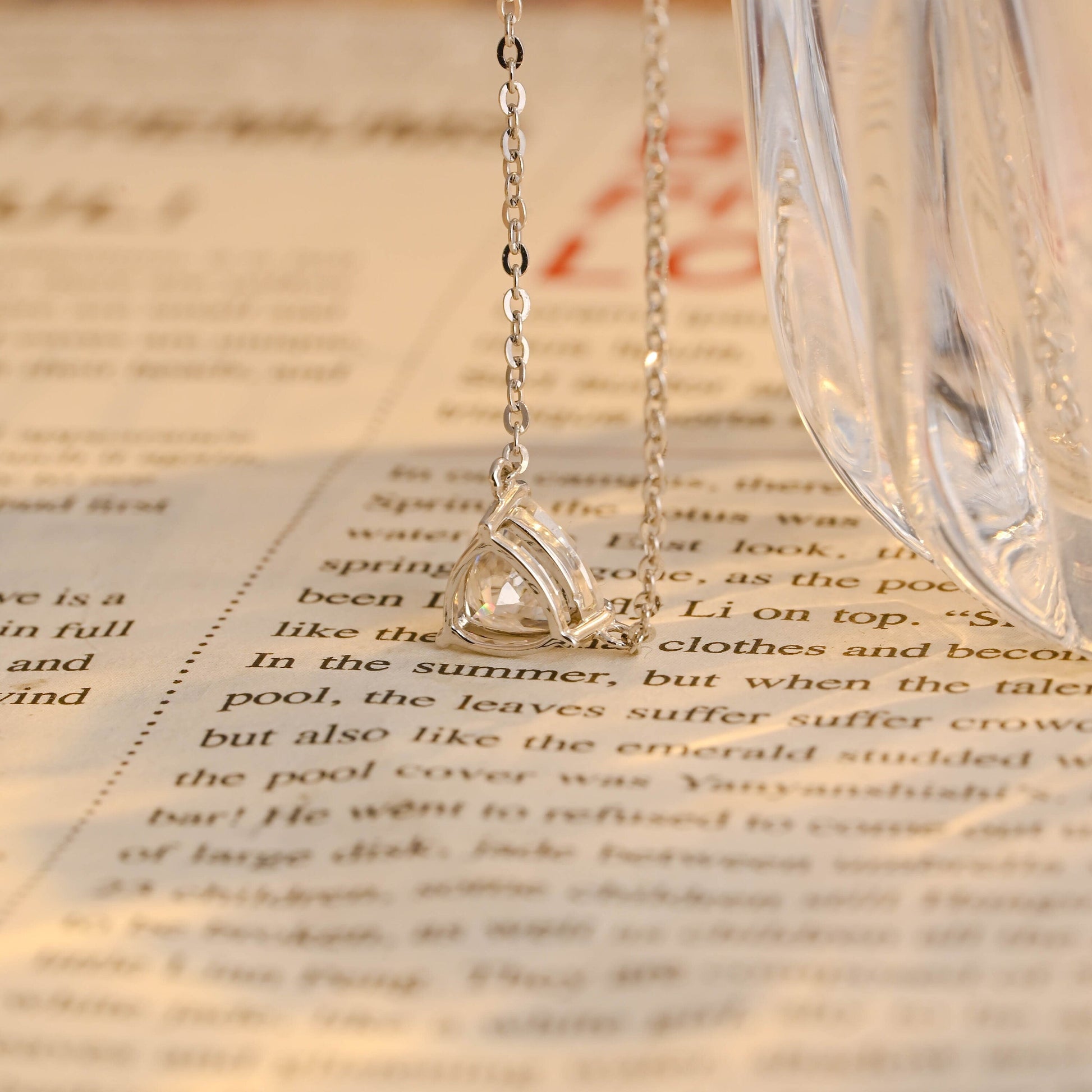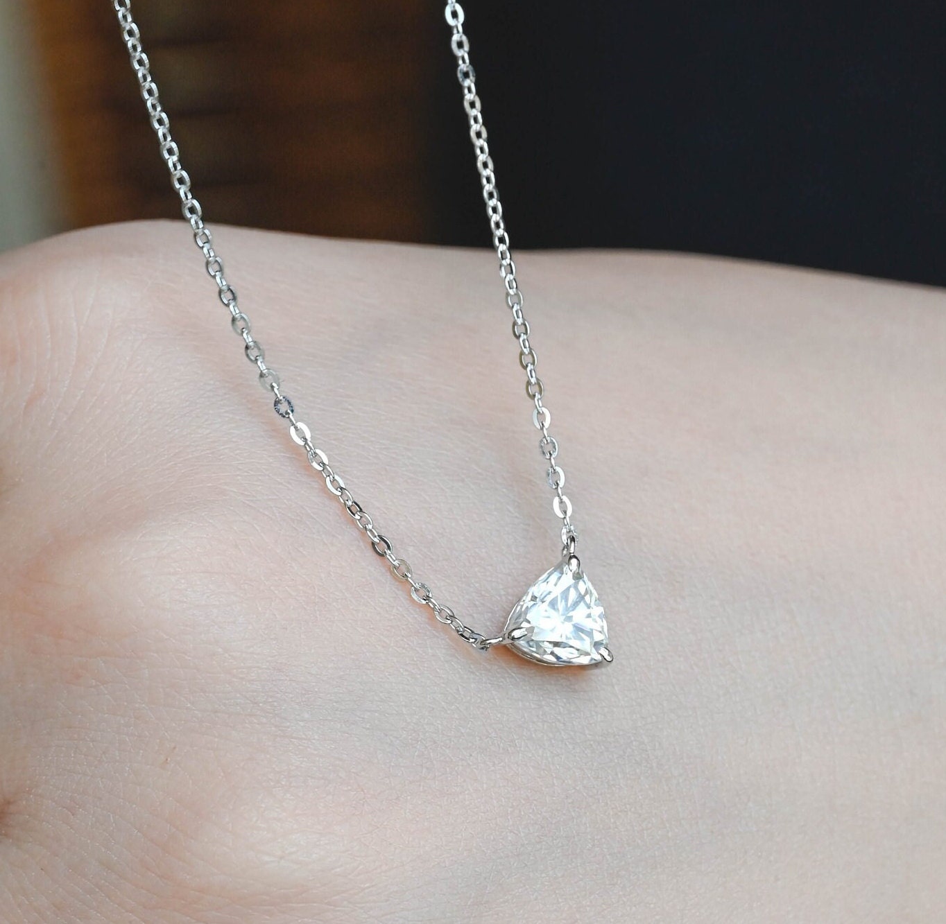 Solitaire Trilliant Moissanite Engagement Pendant Necklace, Trillion Promise Wedding Triangle Pendant Necklace, Anniversary Gifts for Woman