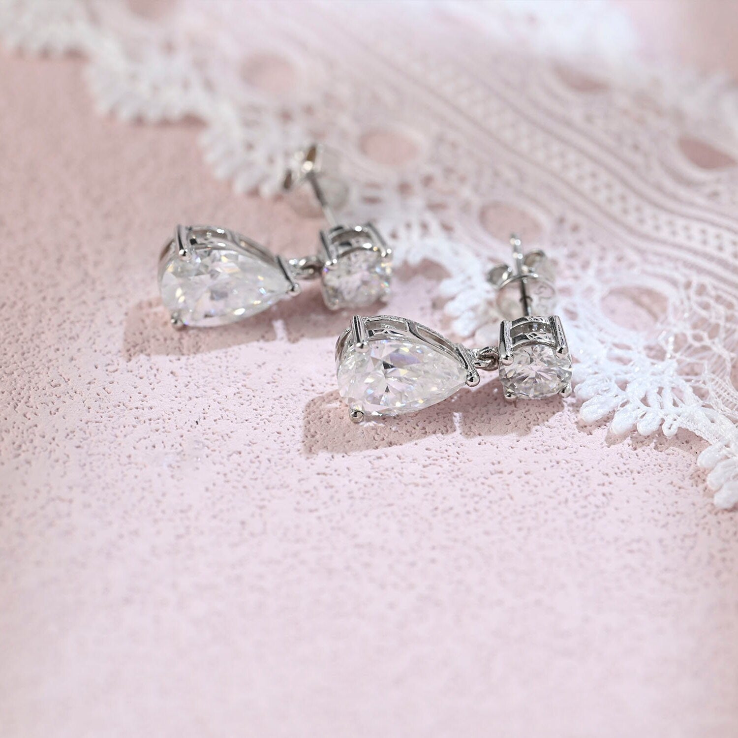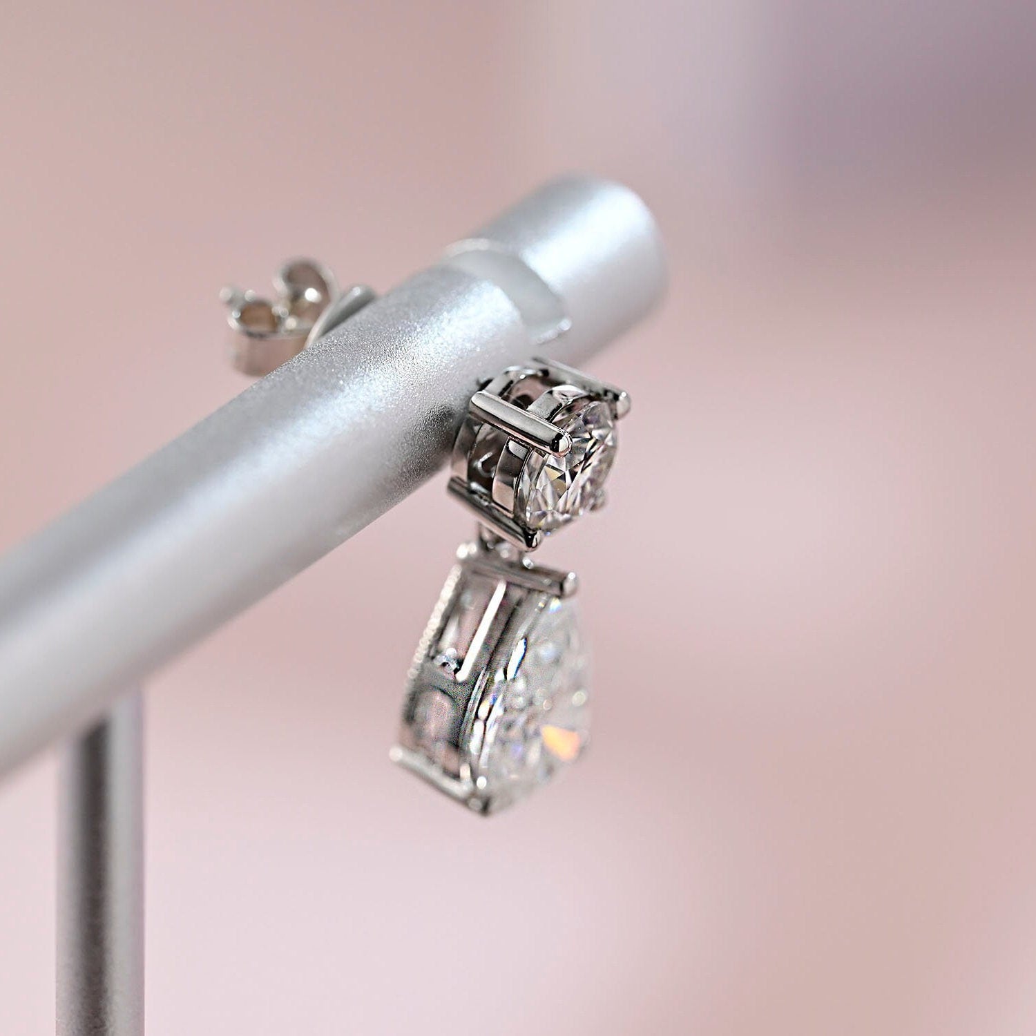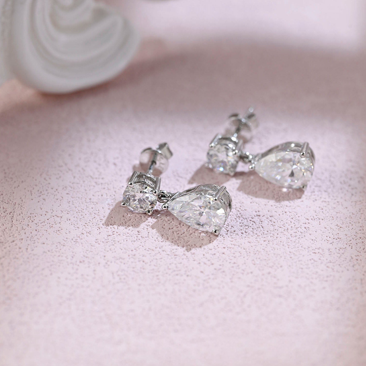 Tear Drop Pear and Round Cut Moissanite Dangle & Drop Earring/Pear Cut Moissanite Drop Earring Gift/Moissanite Earring gold/Anniversary Gift