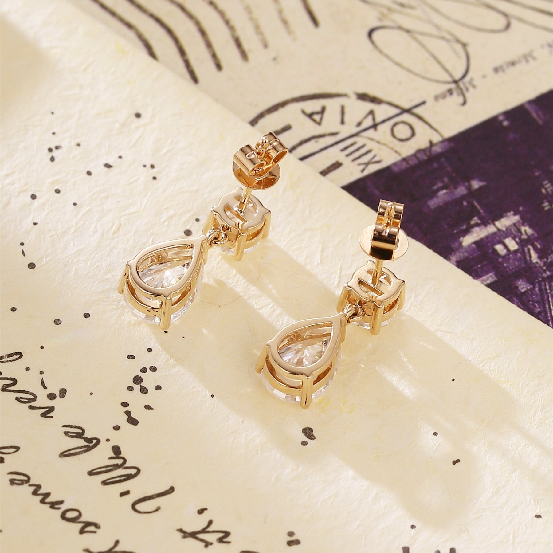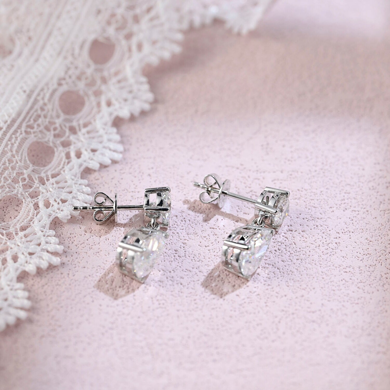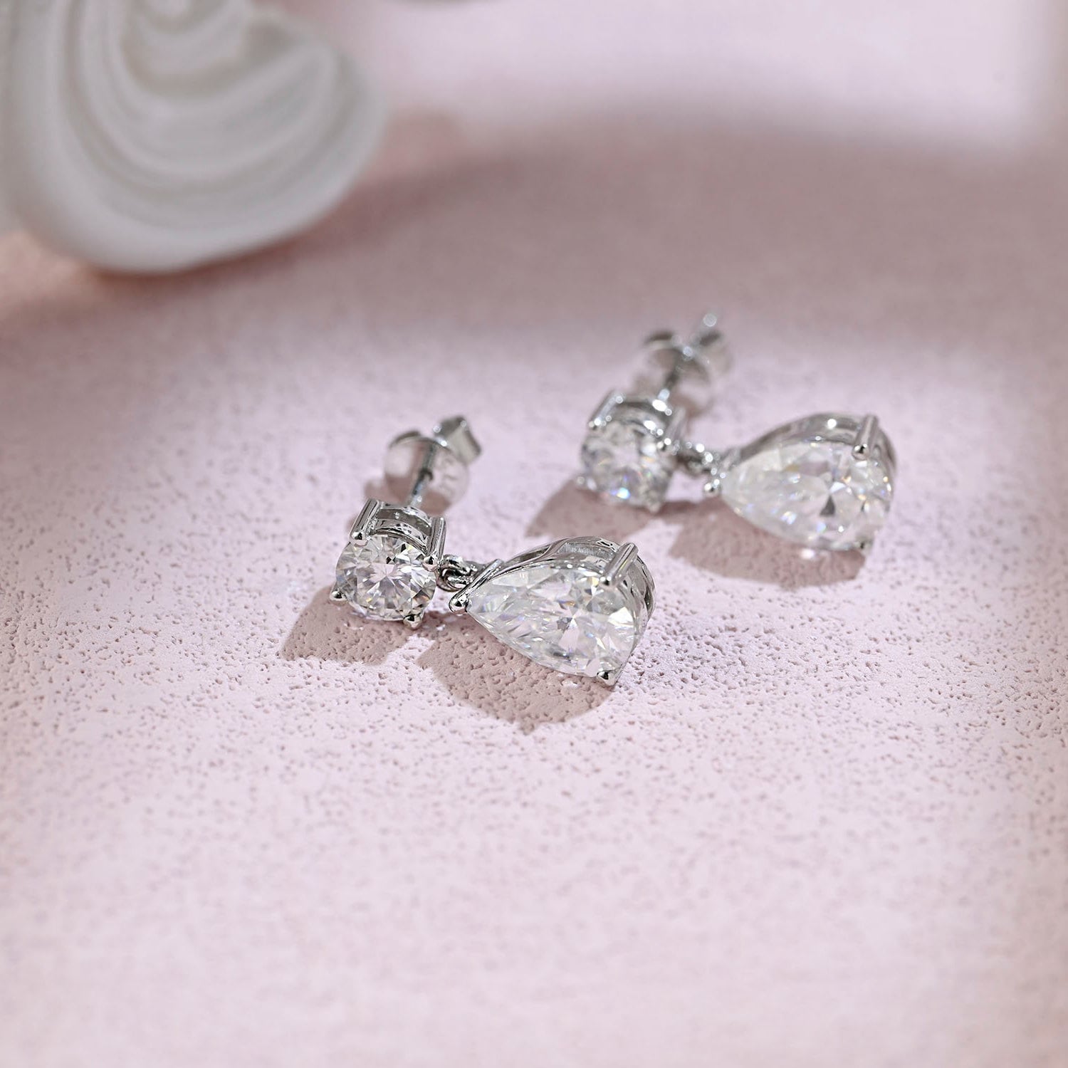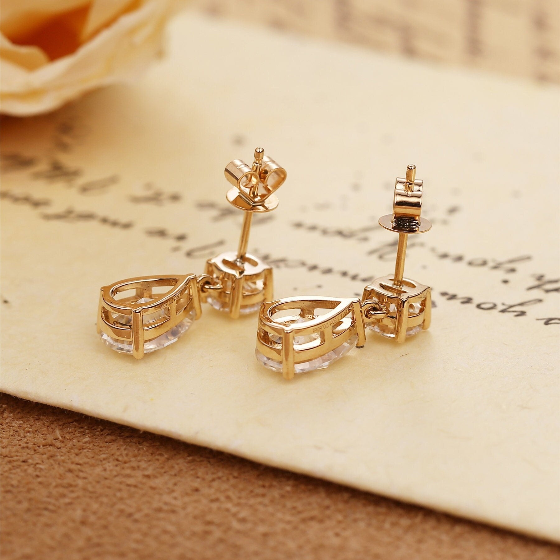 Tear Drop Pear and Round Cut Moissanite Dangle & Drop Earring/Pear Cut Moissanite Drop Earring Gift/Moissanite Earring gold/Anniversary Gift
