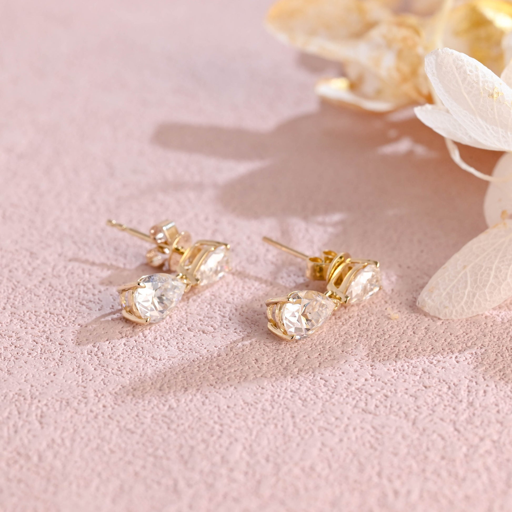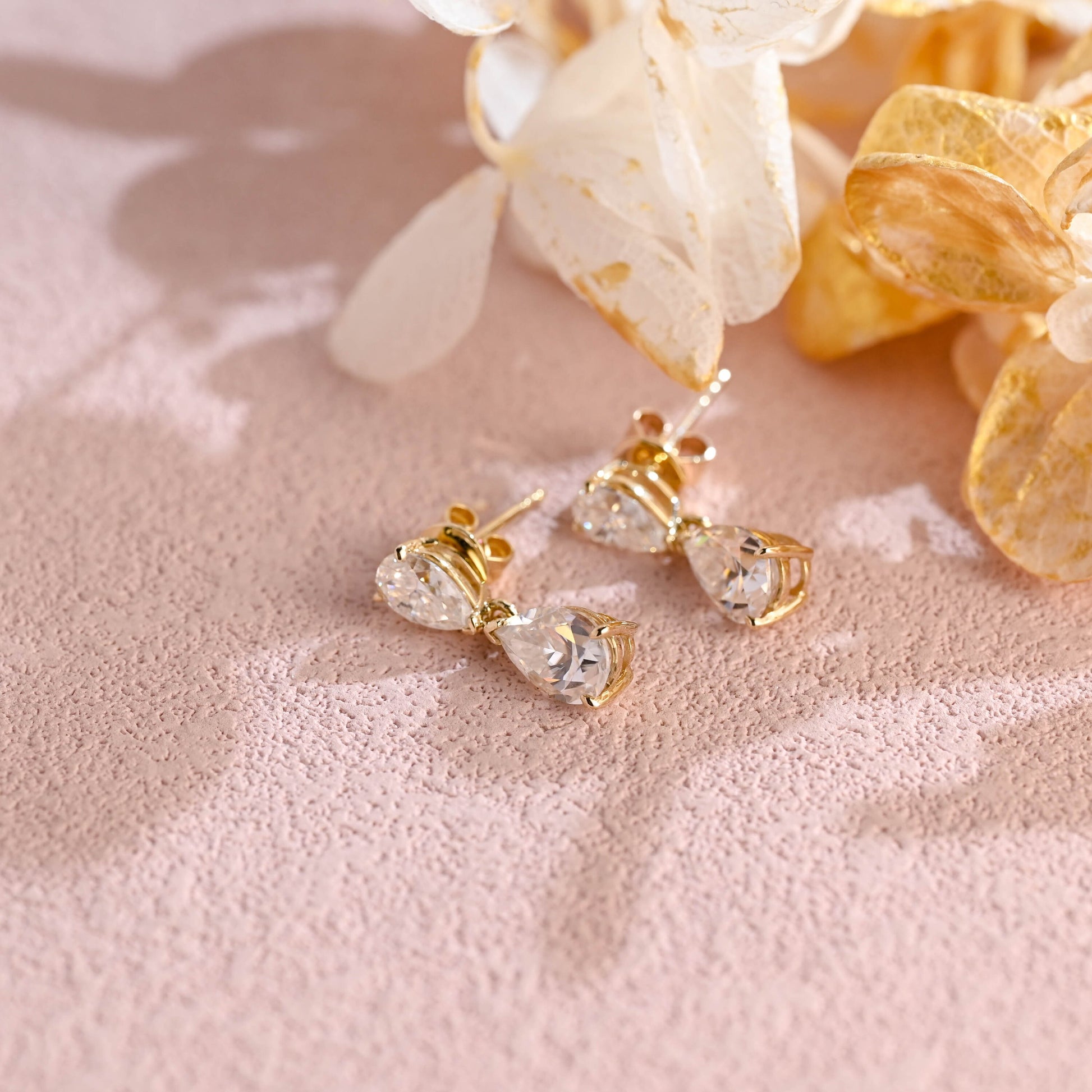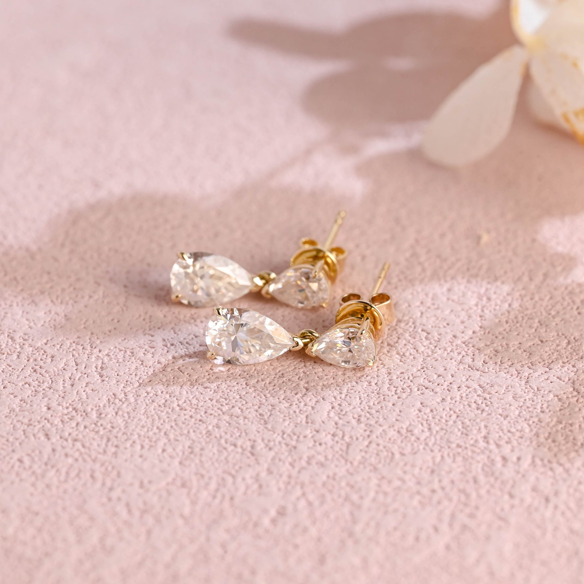 Tear Drop Pear Moissanite Dangle & Drop Earring Studs,Pear Cut Moissanite Earring,9K 14K 18K Solid Gold Moissanite Earring Gift for Women