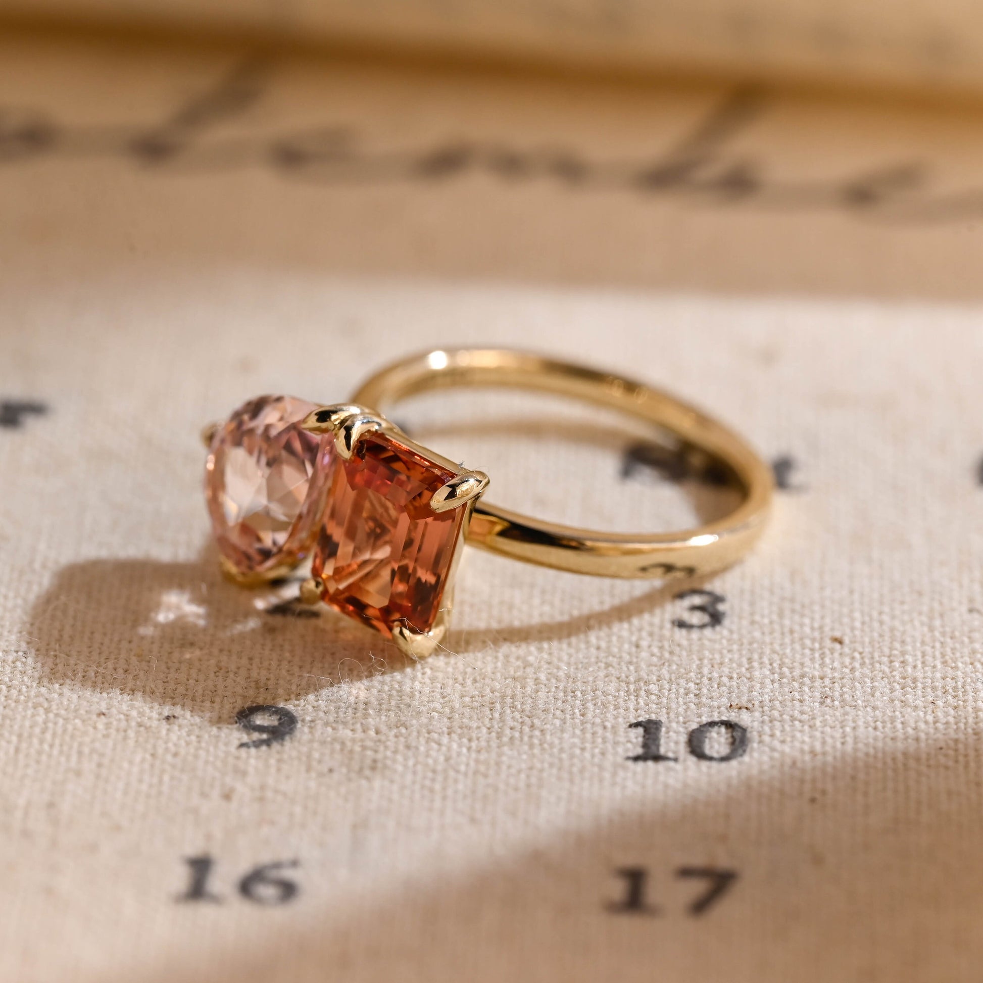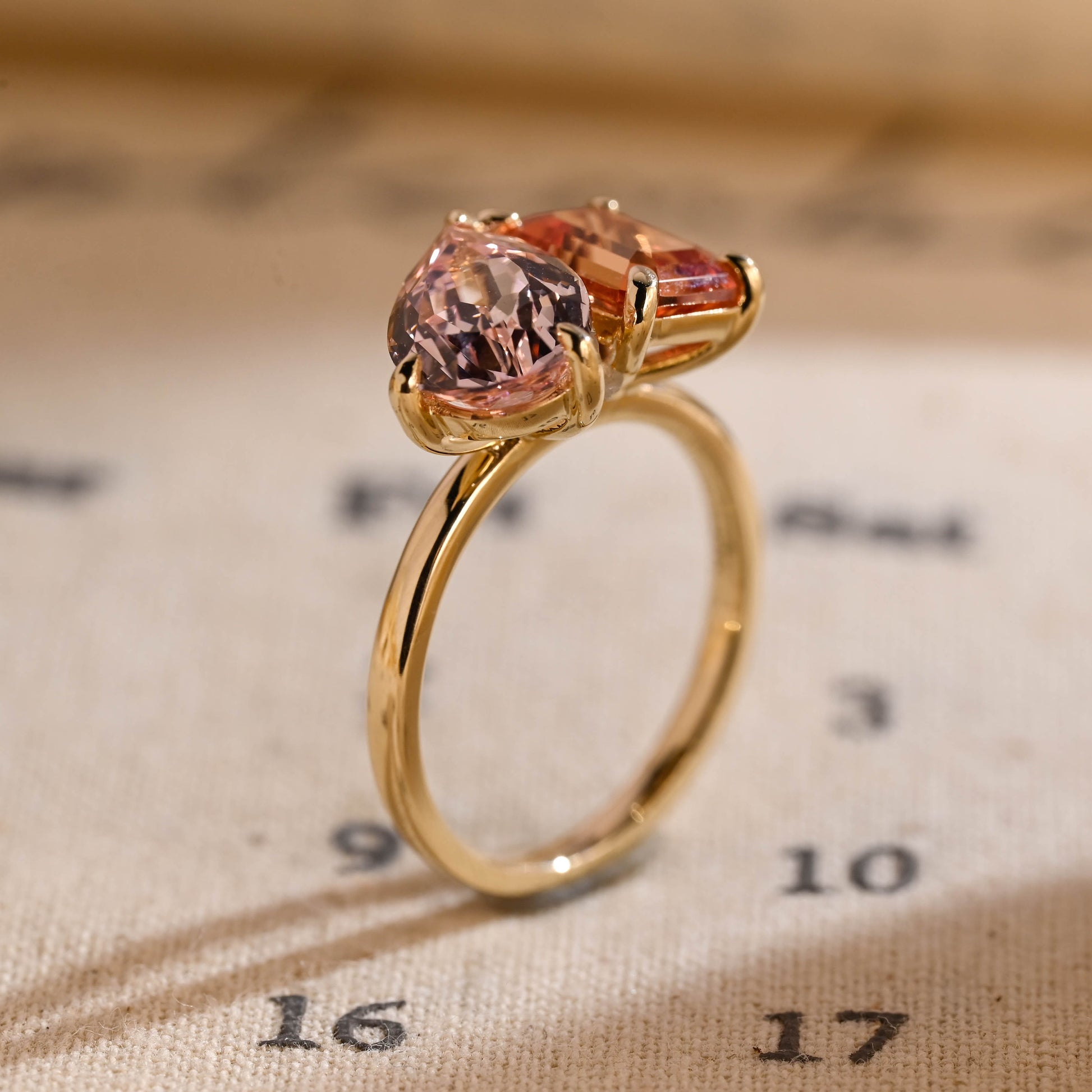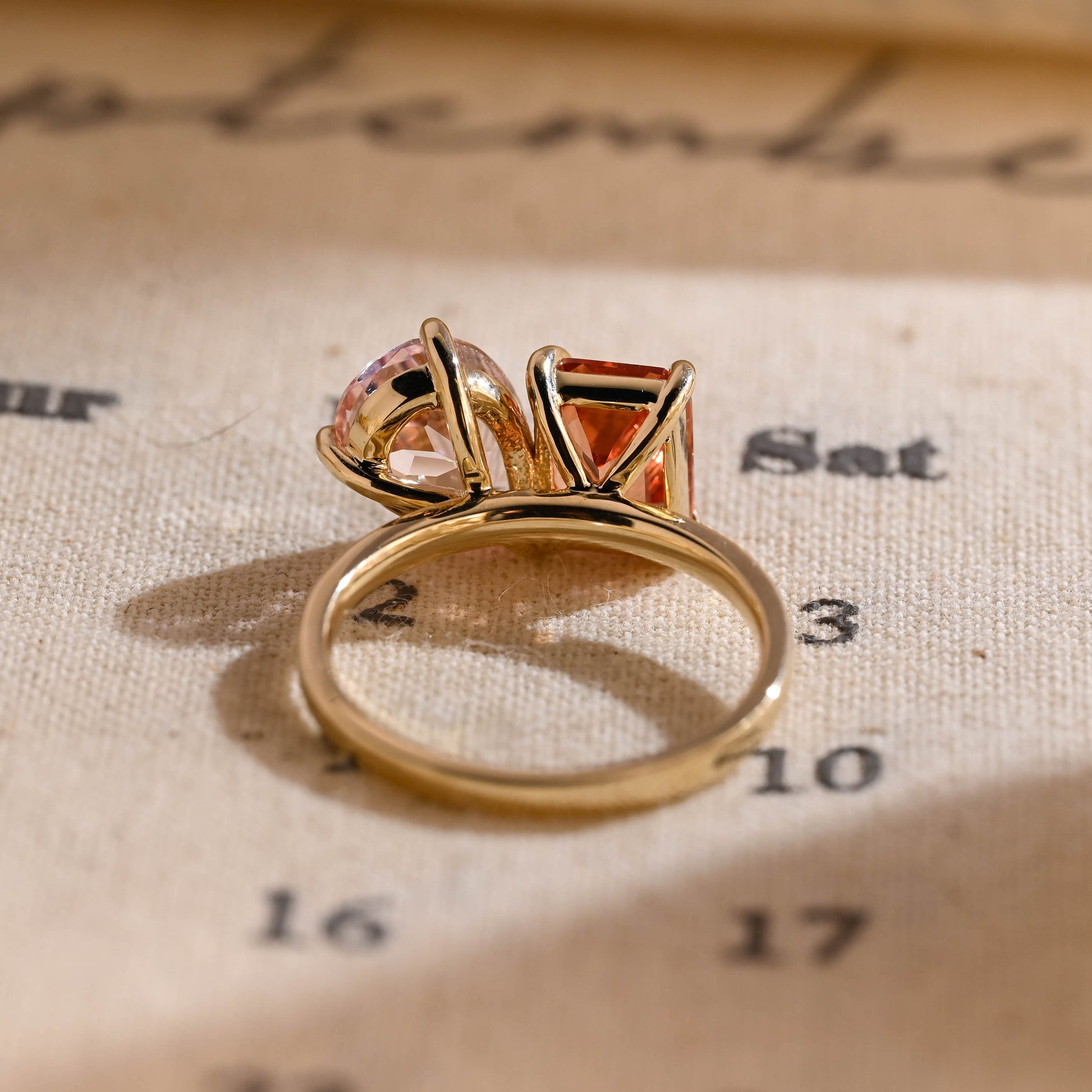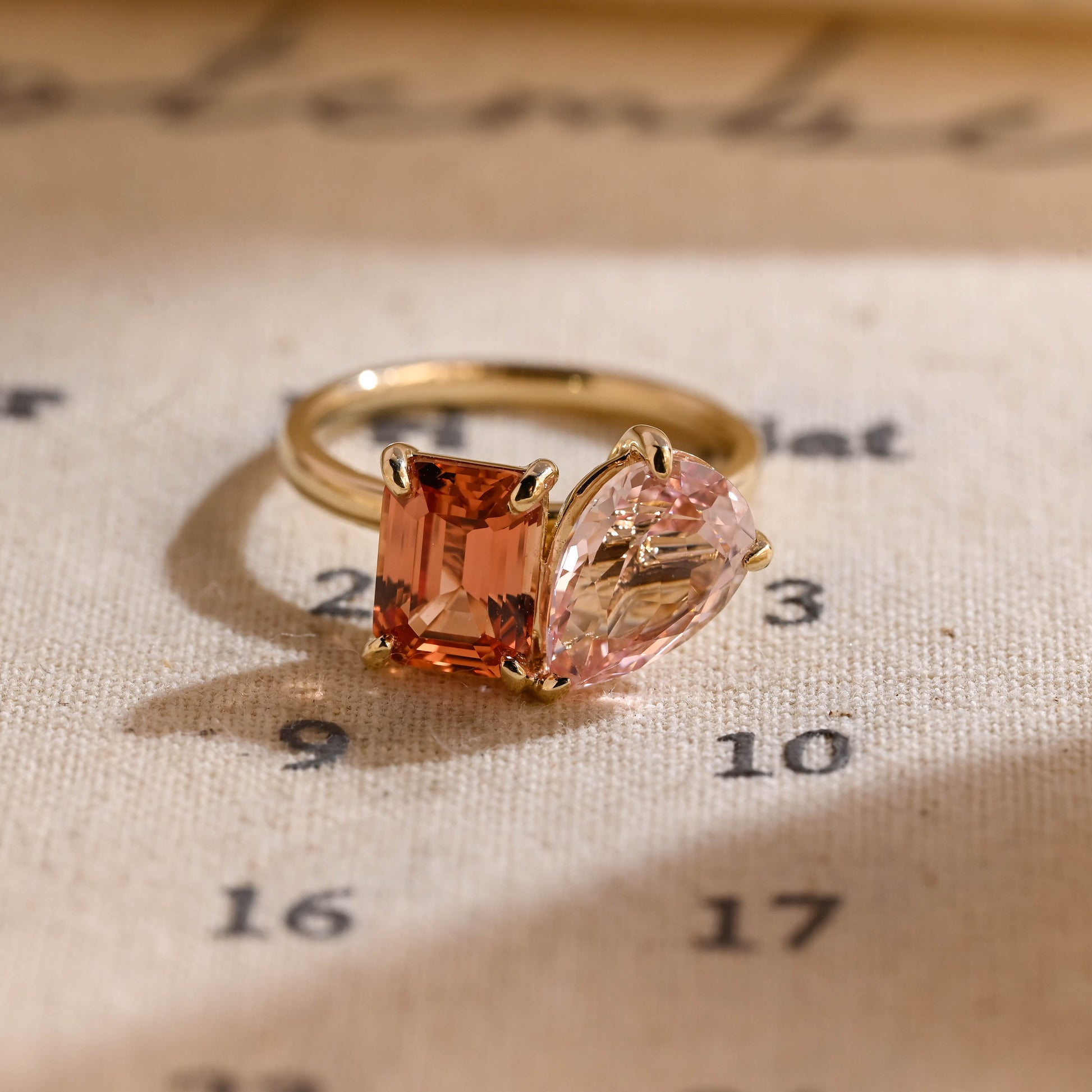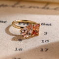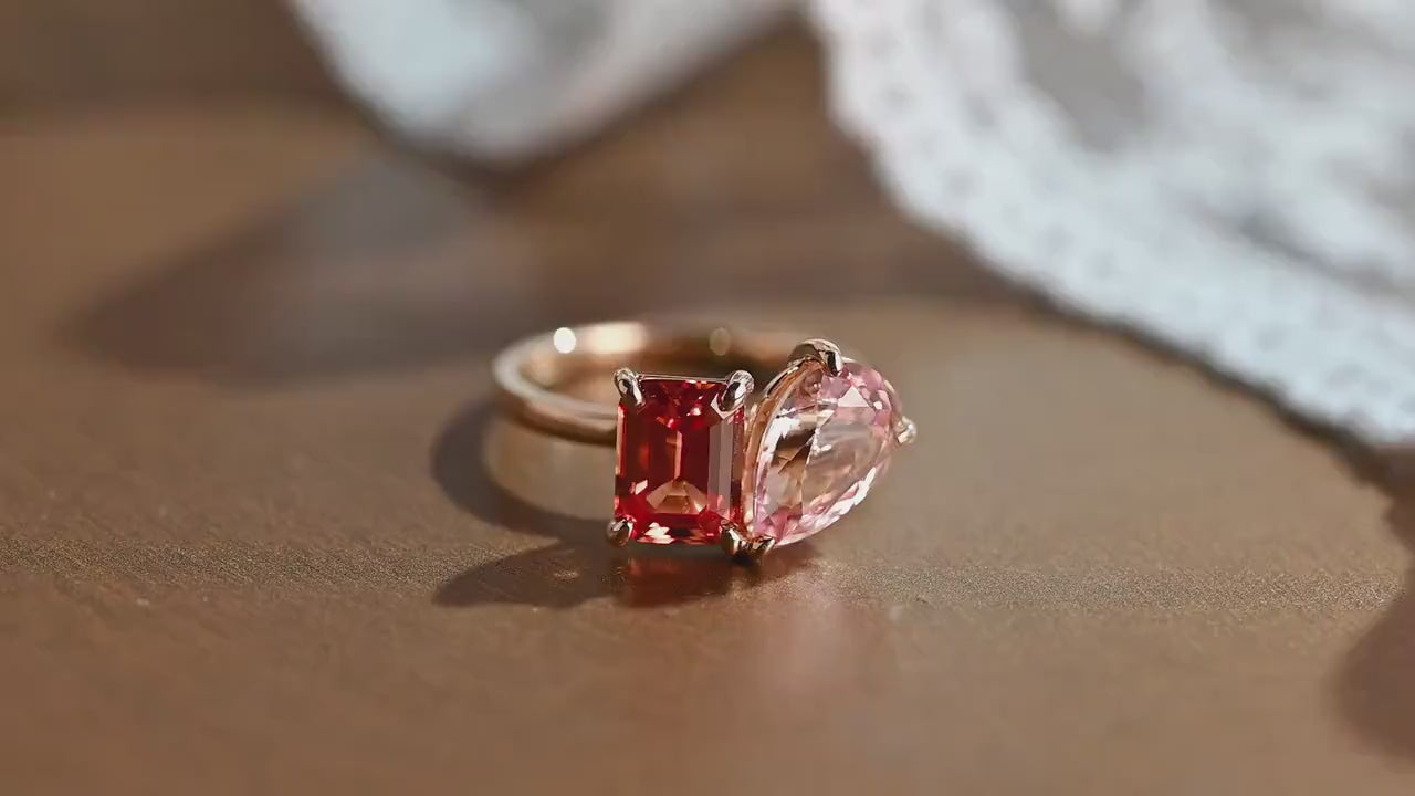 2.00ct Pear Pink & 2.00ct Emerald Orange Sapphire Toi Et Moi Engagement Ring,Β Two-Stone Birthday Gift, Anniversary Ring Gifts for Women