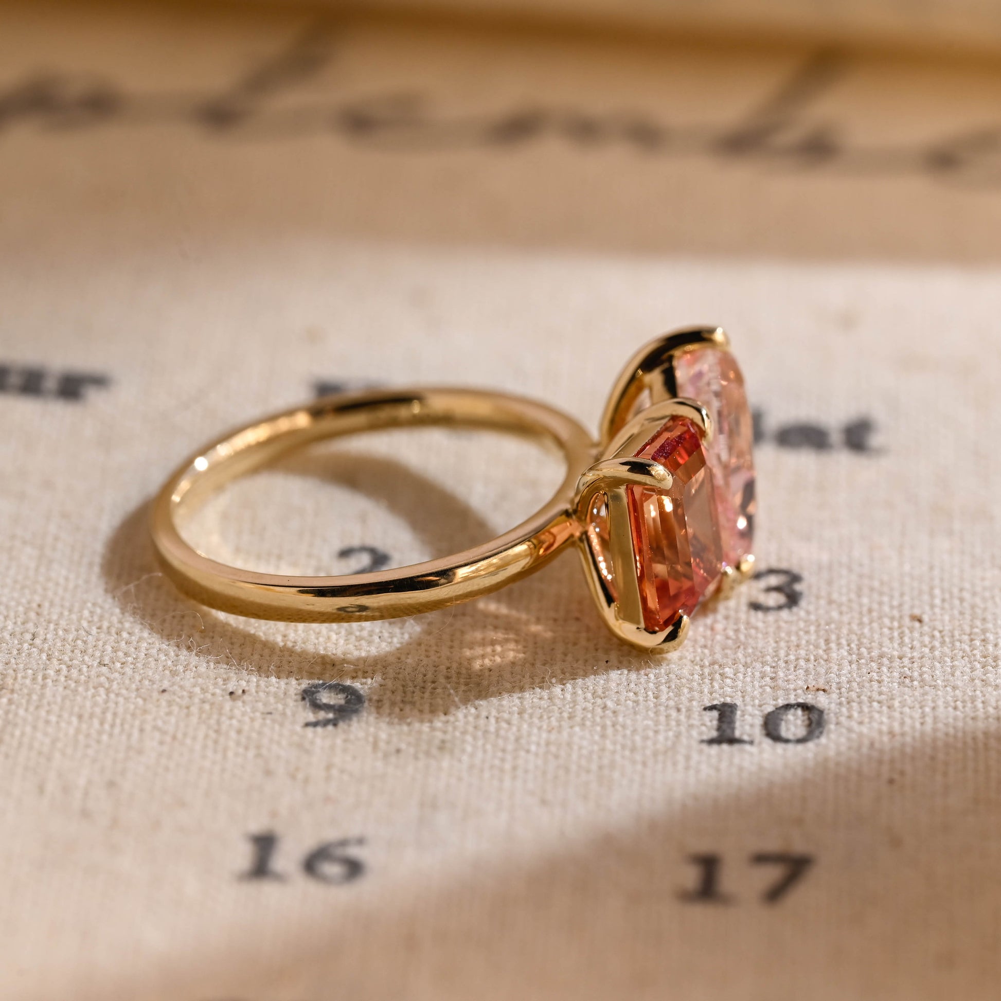2.00ct Pear Pink & 2.00ct Emerald Orange Sapphire Toi Et Moi Engagement Ring