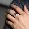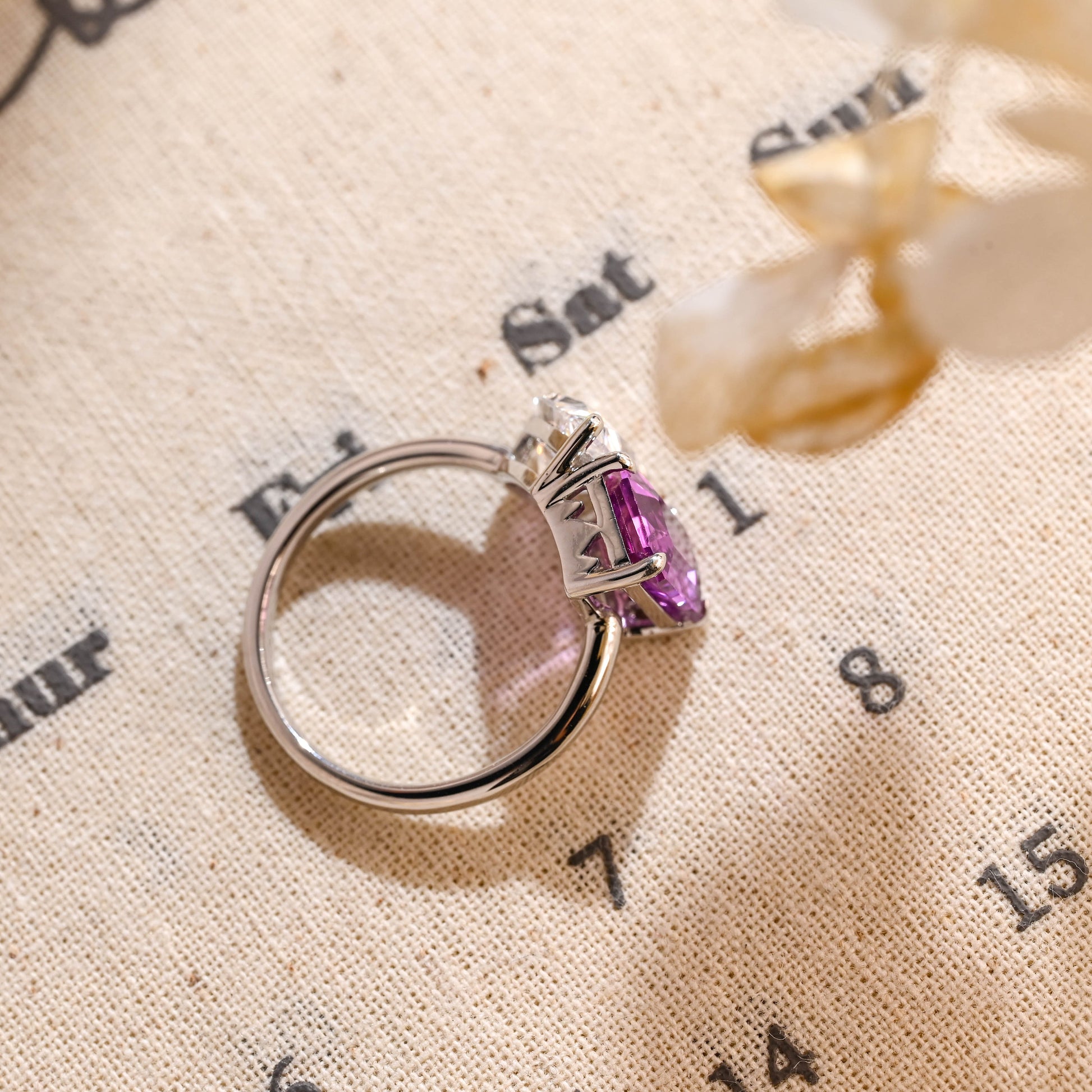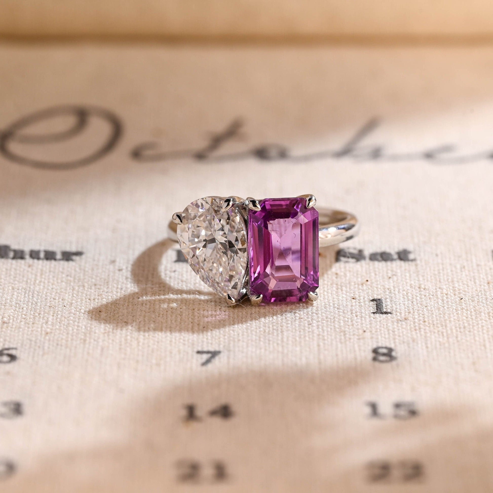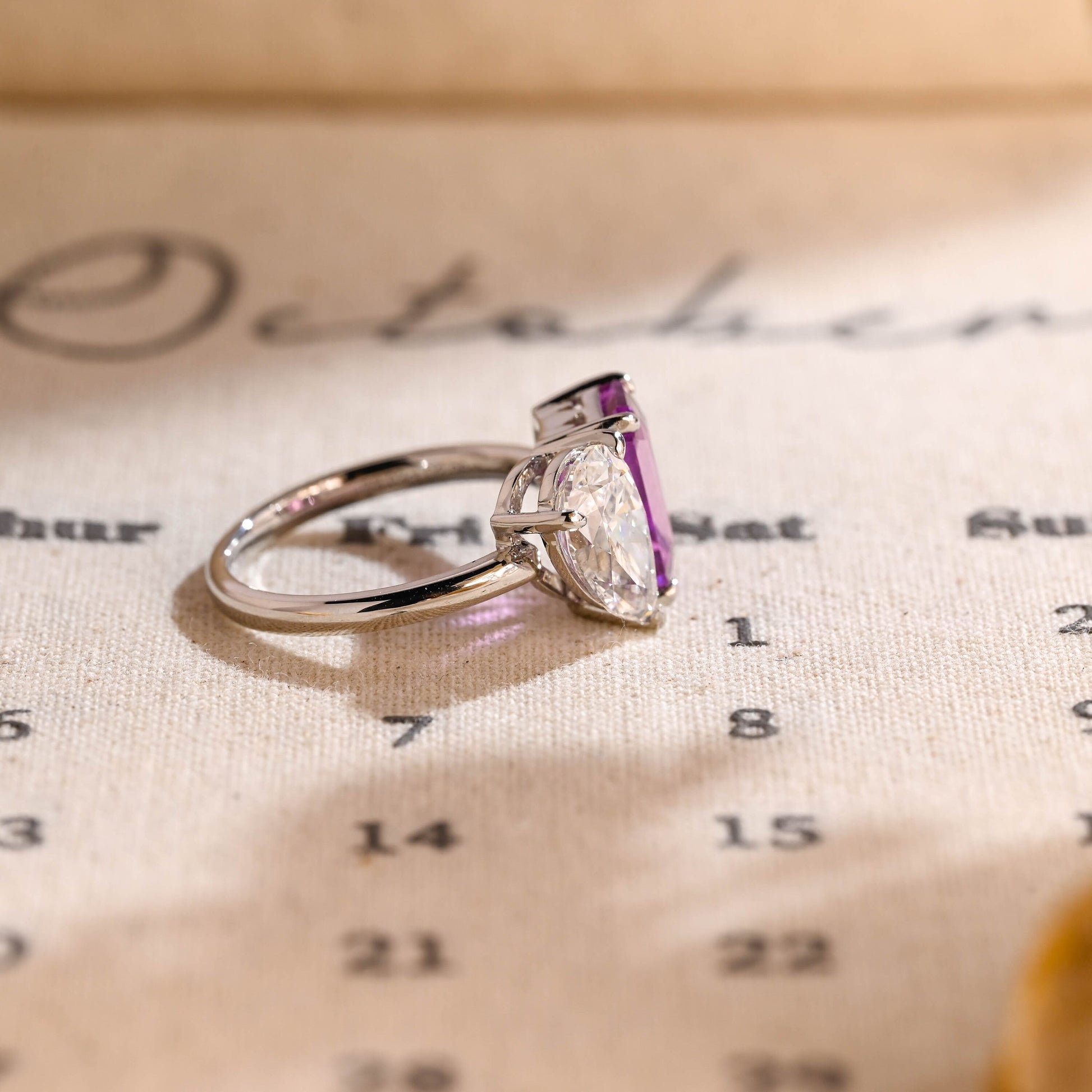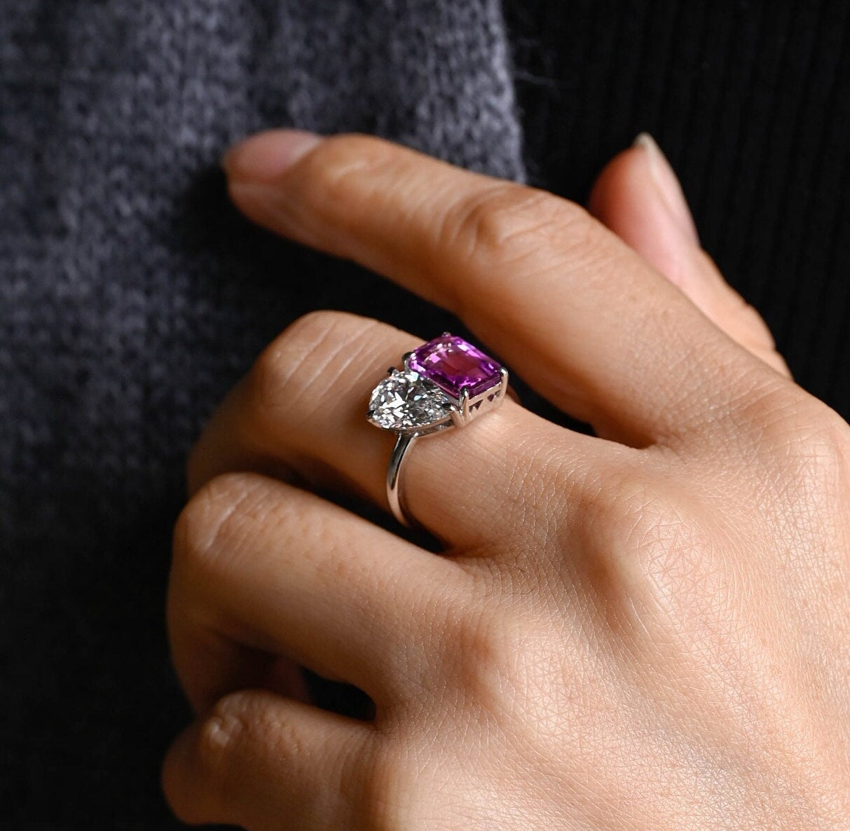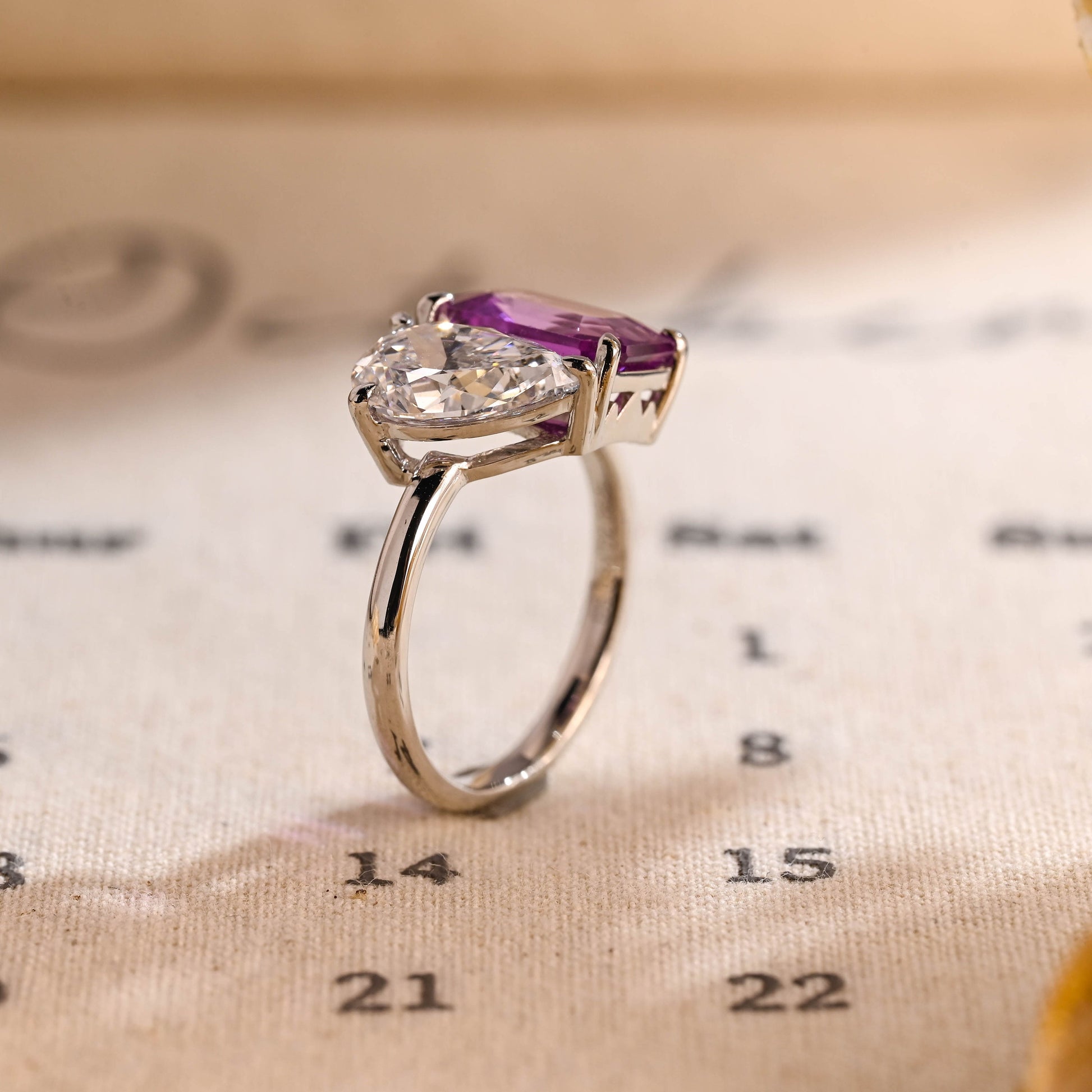 10mm Purple Emerald and Pear Toi Et Moi Engagement Ring, Pear Diamond Engagement Ring, Purple Emerald Sapphire Ring Gifts