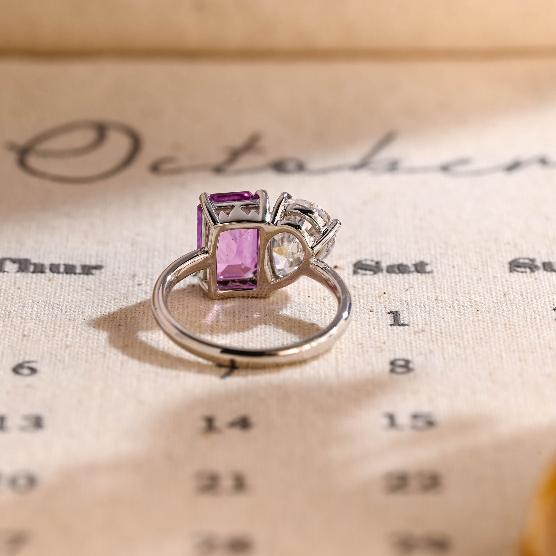 10mm Purple Emerald and Pear Toi Et Moi Engagement Ring
