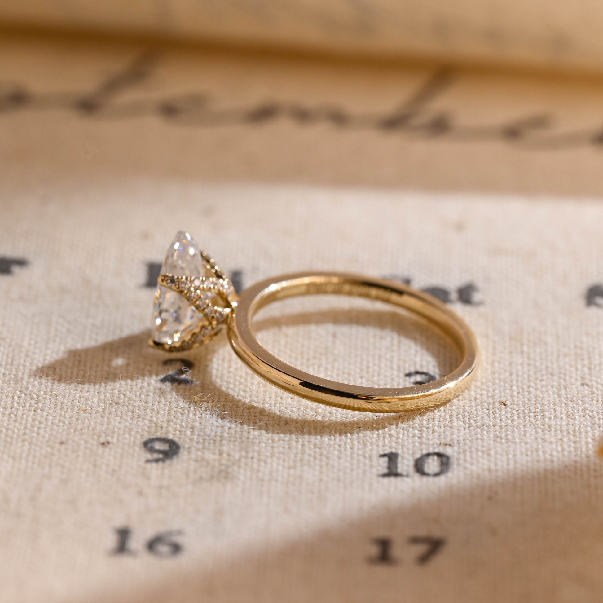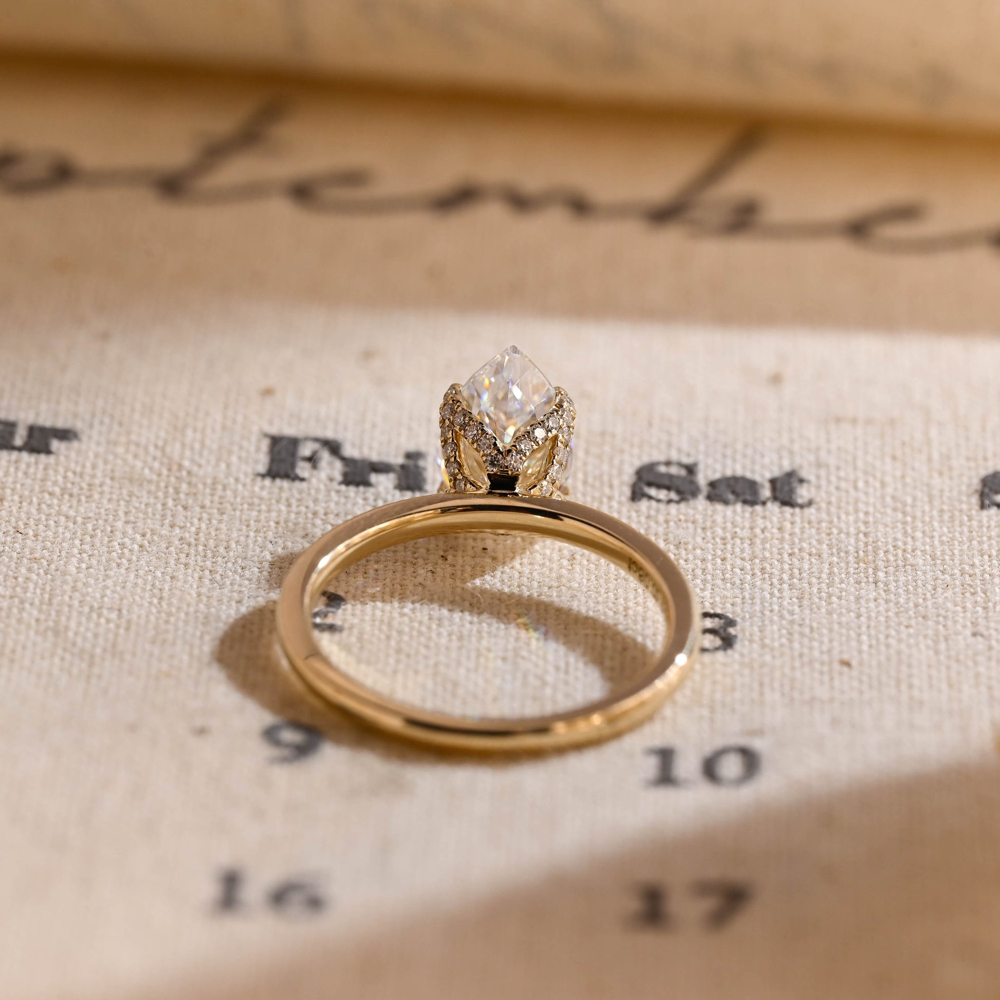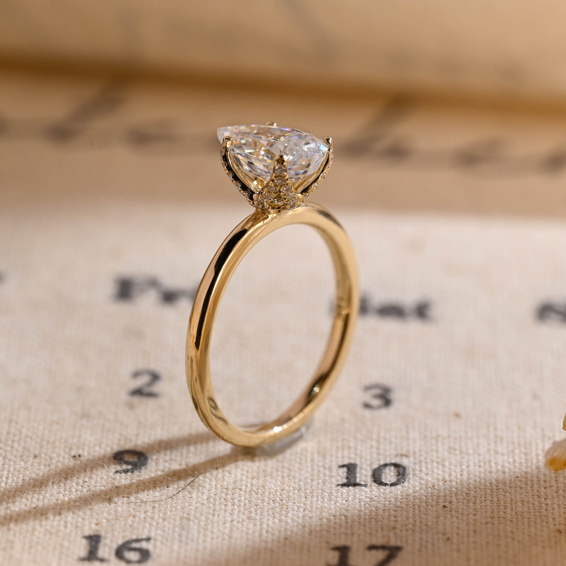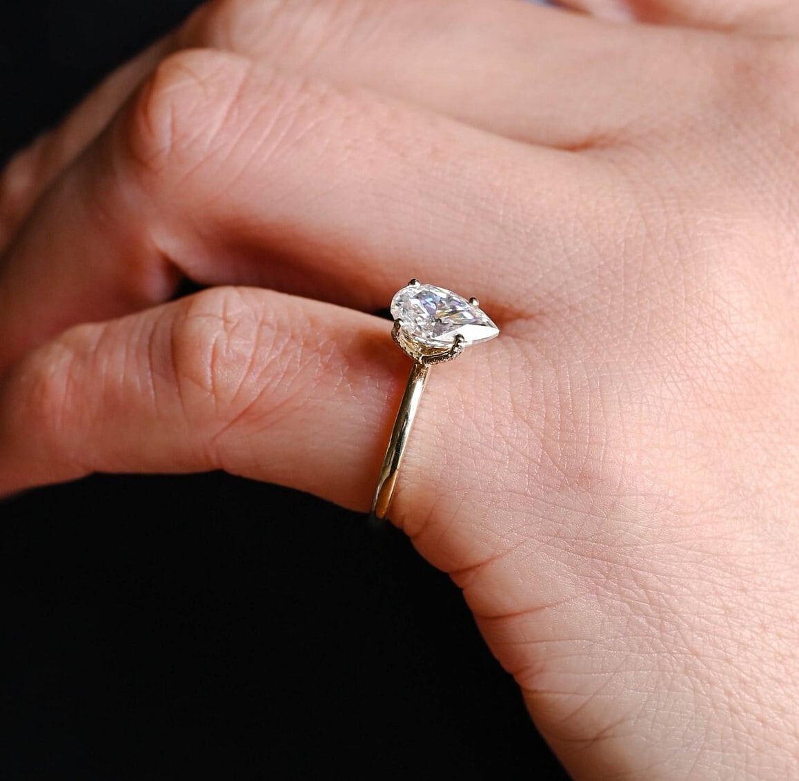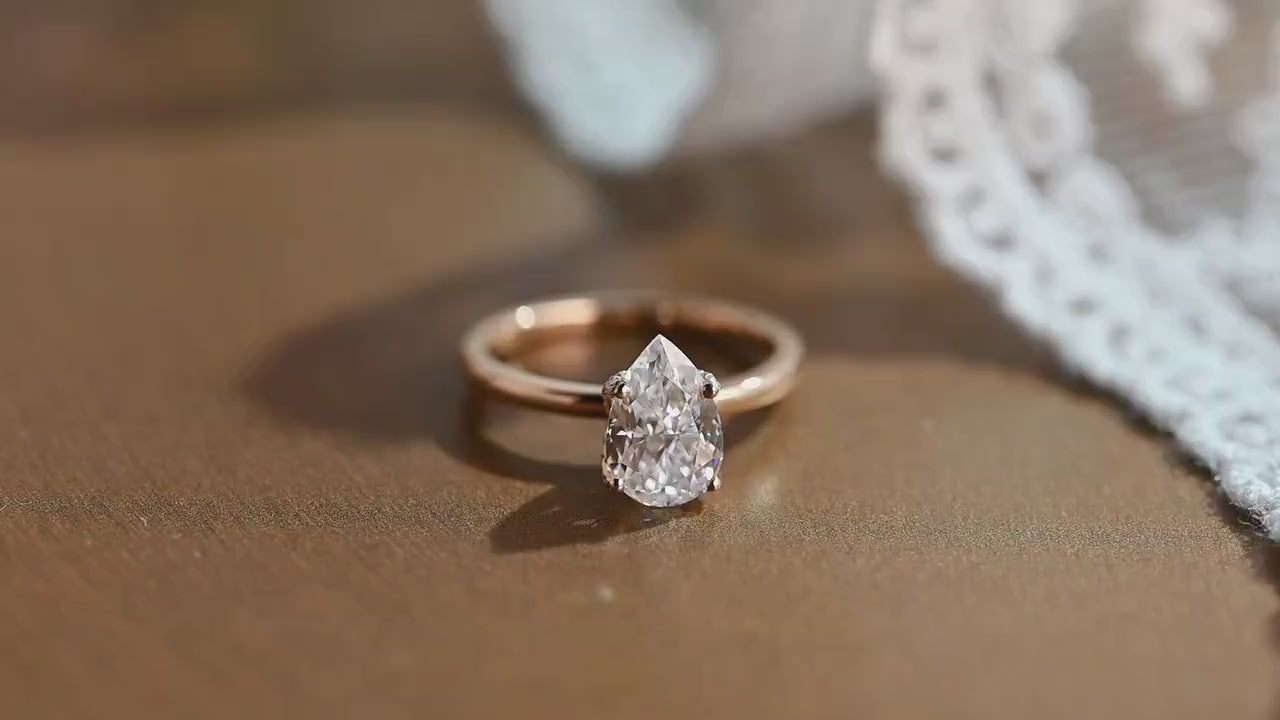 1.50ct Tulip Prong Pave Pear Diamond Engagement Ring, Crushed Ice Pear CutΒ Wedding Ring for Women, Solitaire Hidden Halo Gold Rings