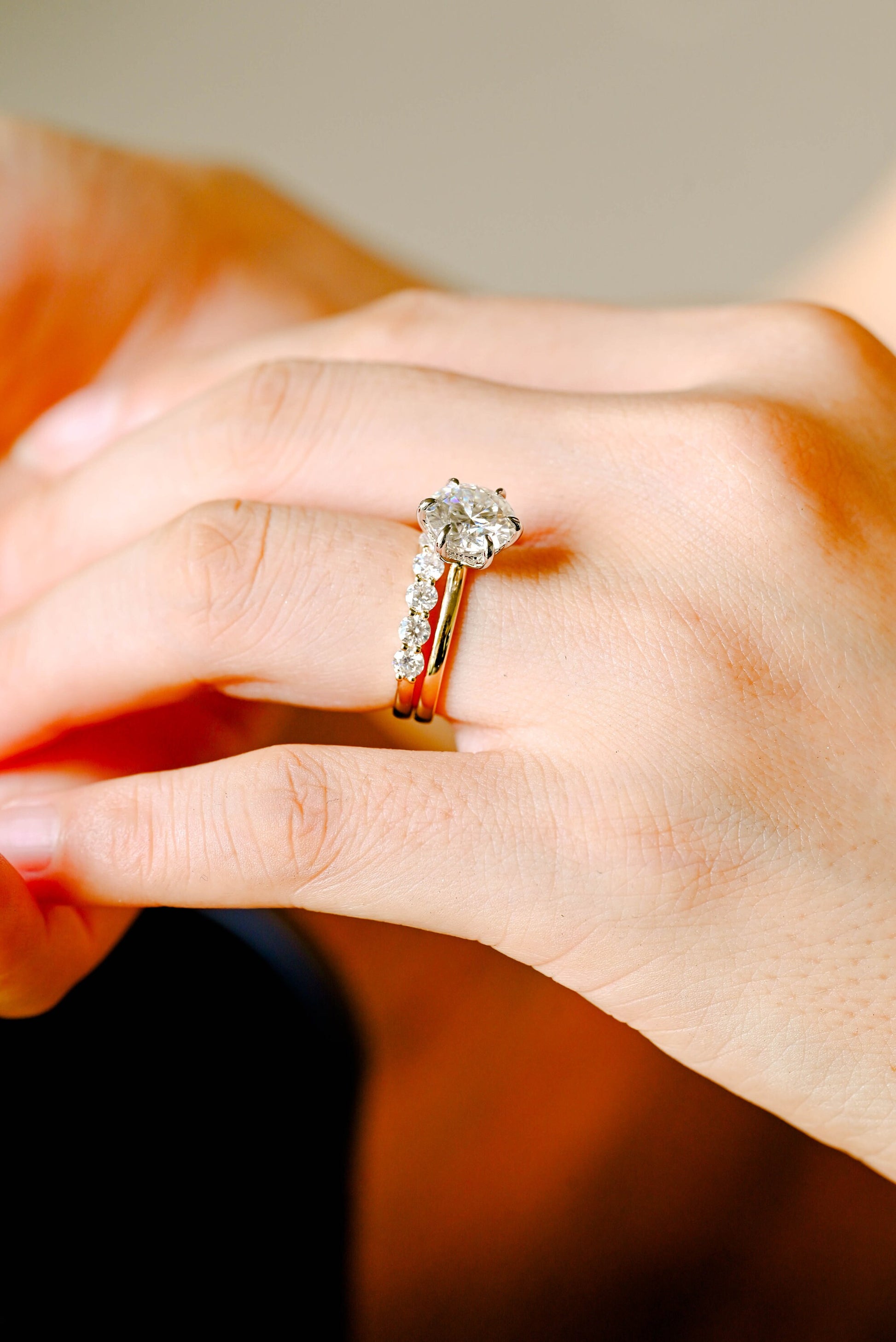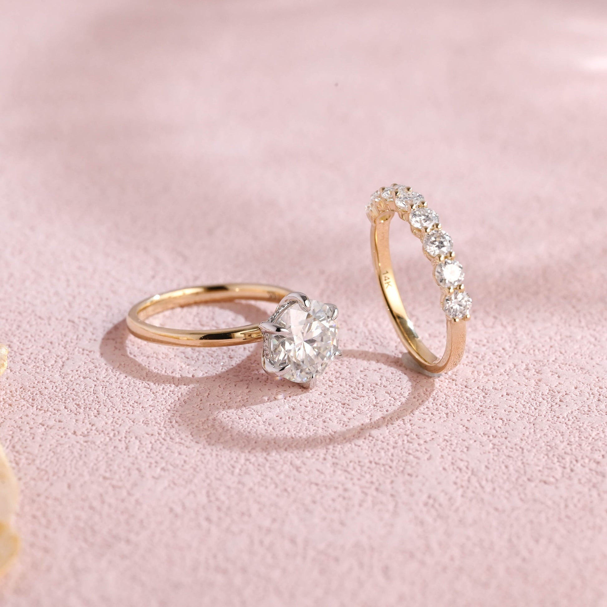 Our jewelry is crafted with simulant diamonds, moissanite, natural diamonds, lab-grown diamonds, and fine metals like 925 silver (with gold plating) and solid 10K, 14K, and 18K gold in white, yellow, and rose gold.