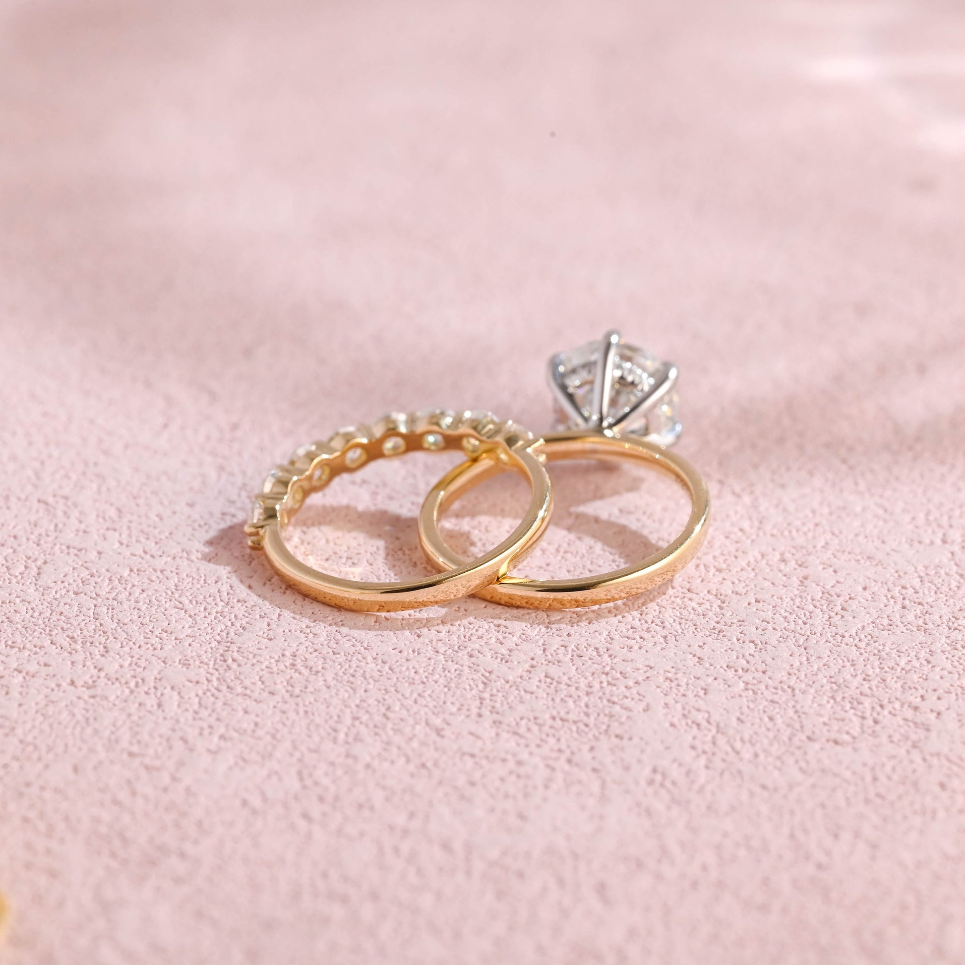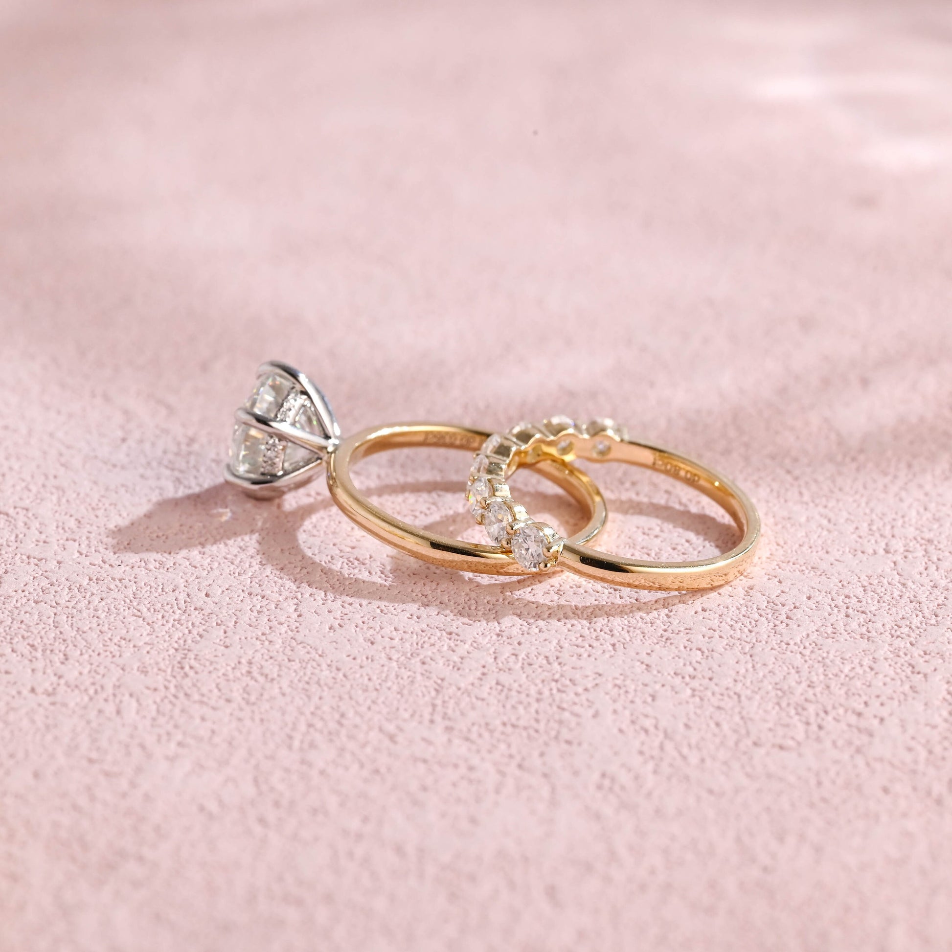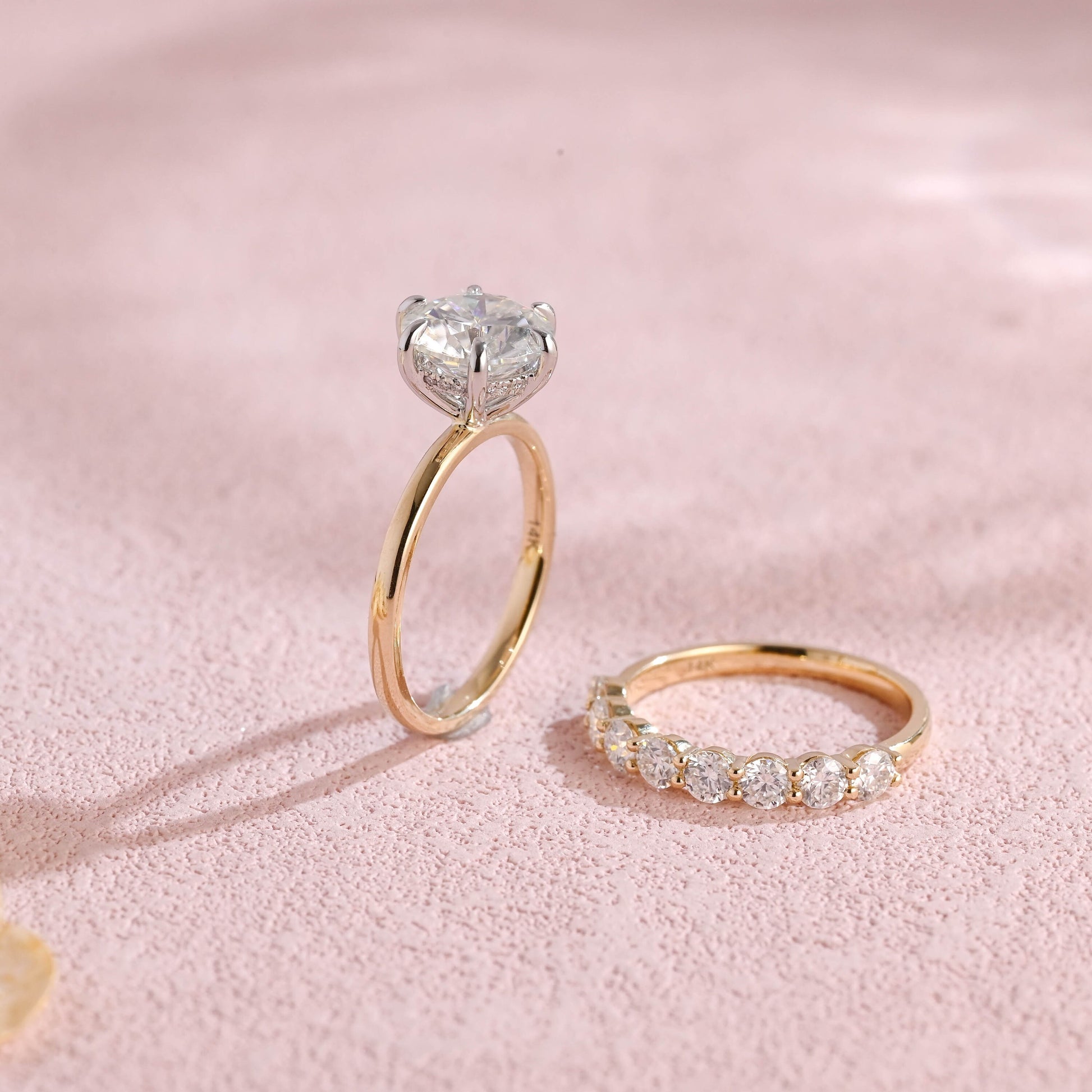 Two Tone 2.5ct 8.5mm Round Moissanite Engagement Ring Set,14K Yellow Gold Bridal Set Hidden Halo, Wedding Ring Set Art Deco Ring Gift Women