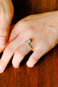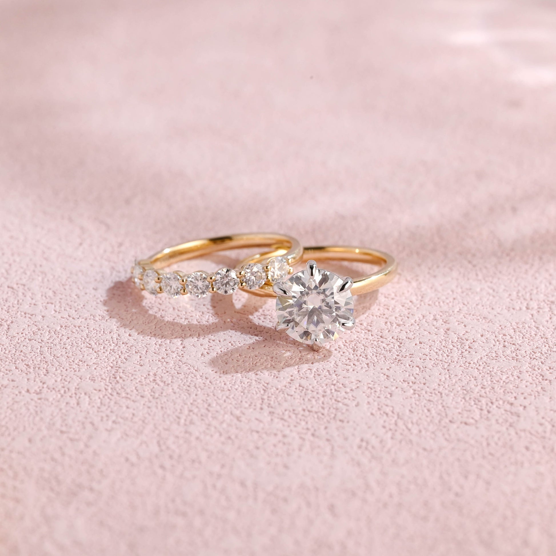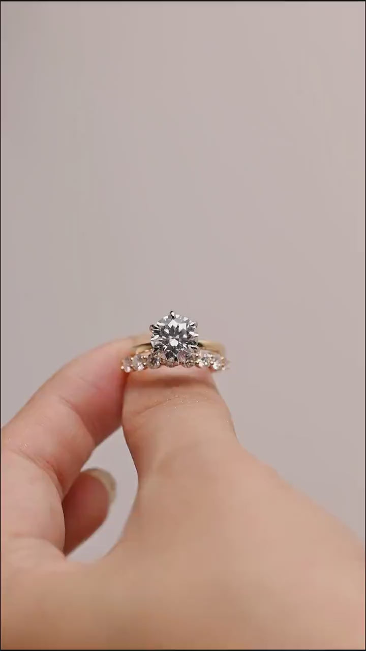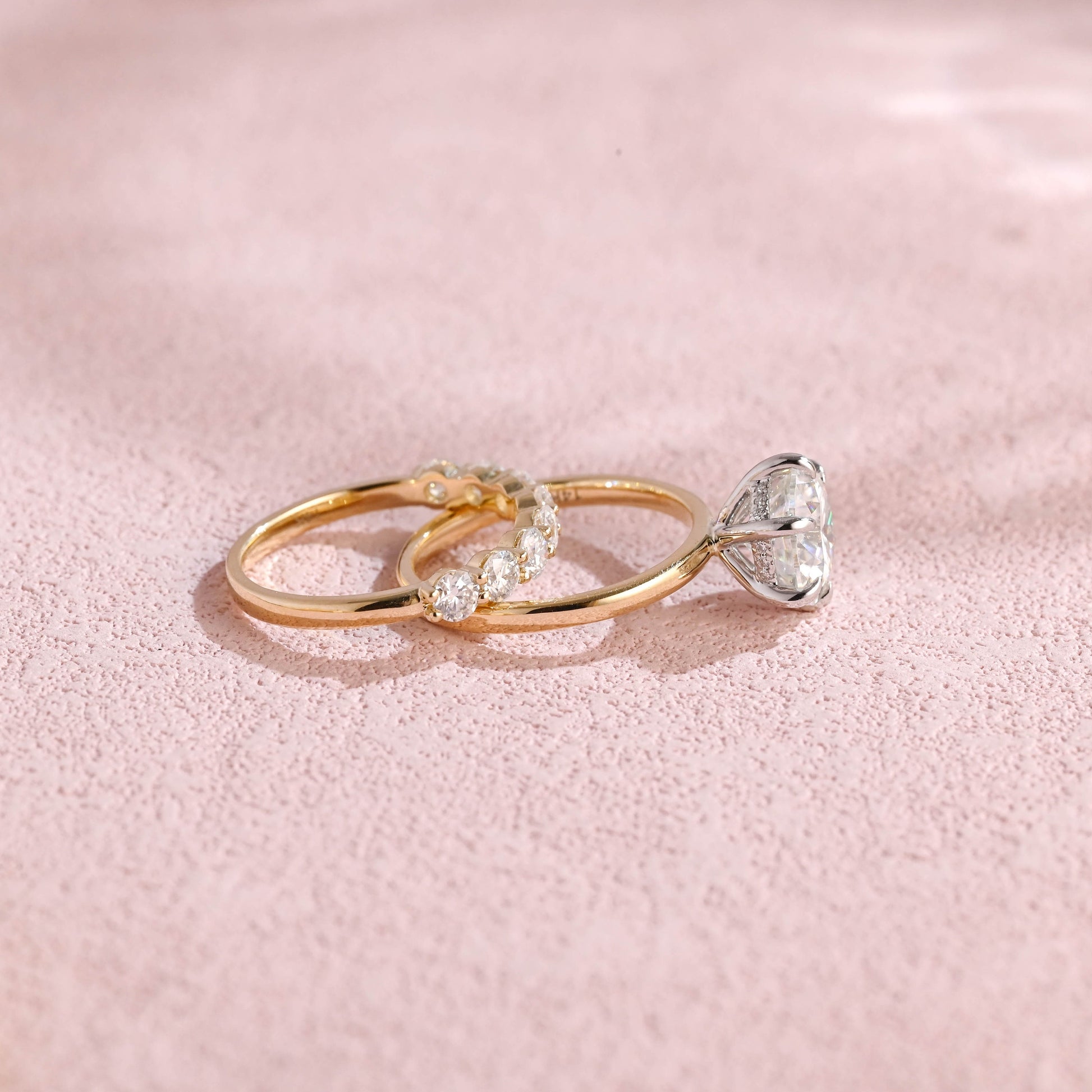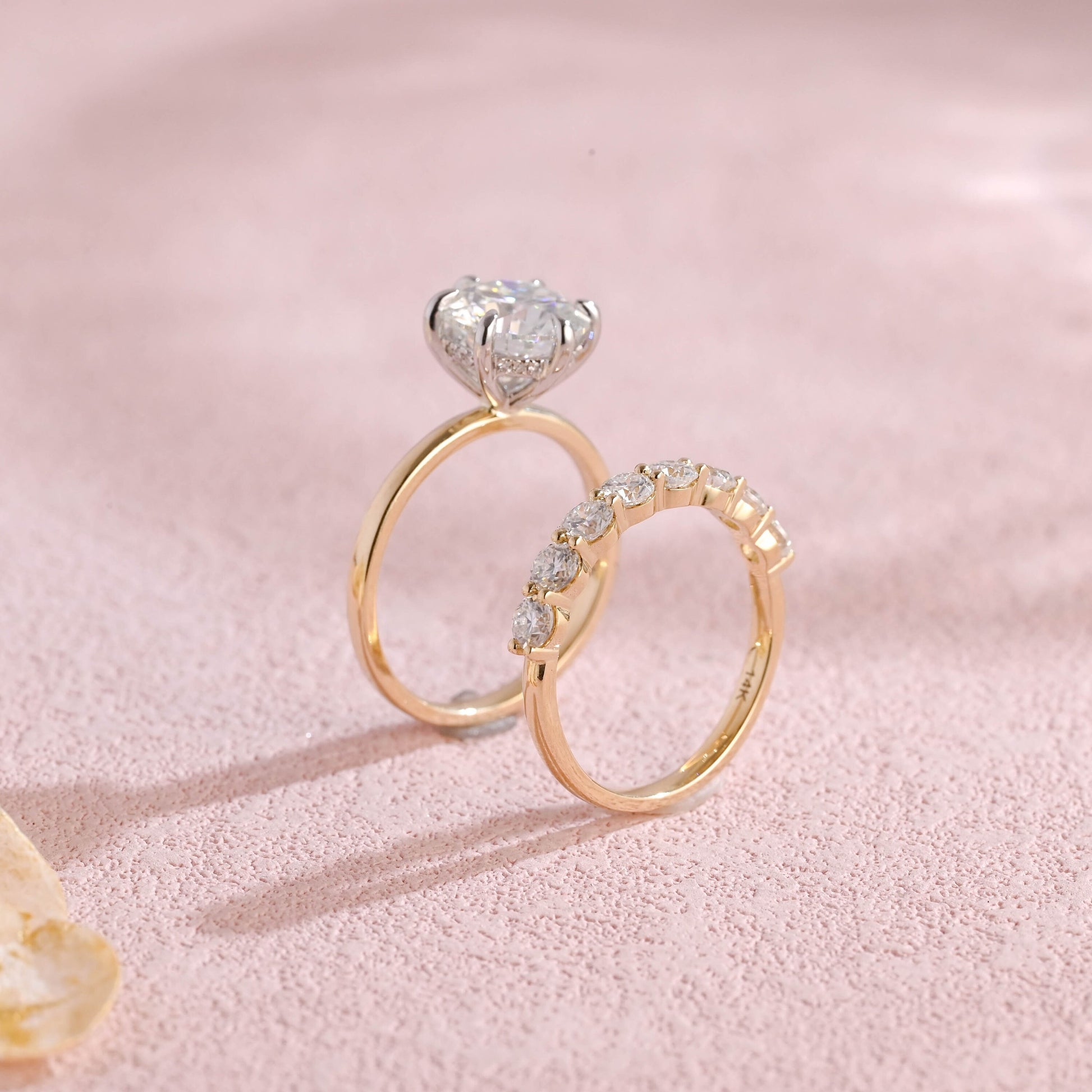 Two Tone 2.5ct 8.5mm Round Moissanite Engagement Ring Set,14K Yellow Gold Bridal Set Hidden Halo, Wedding Ring Set Art Deco Ring Gift Women