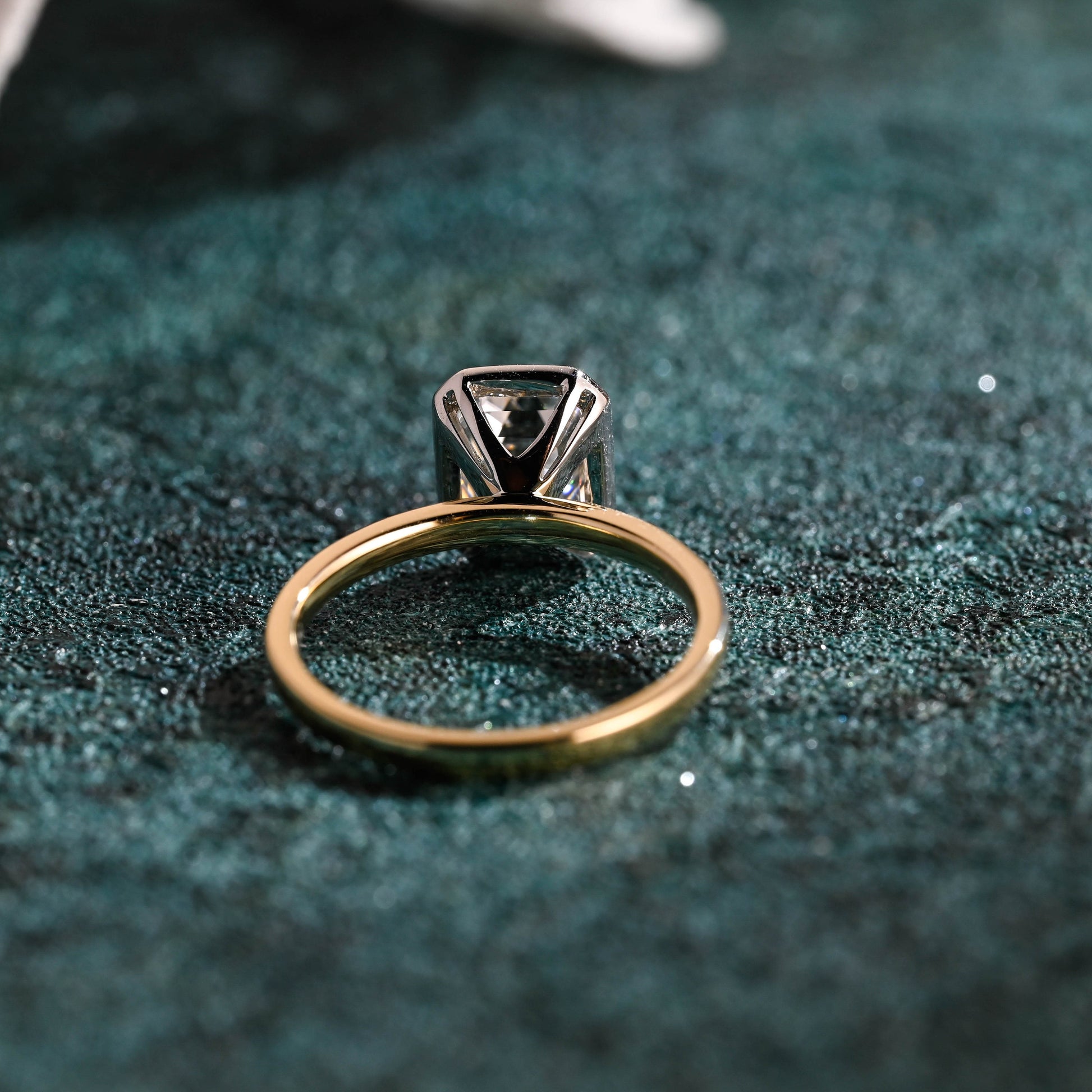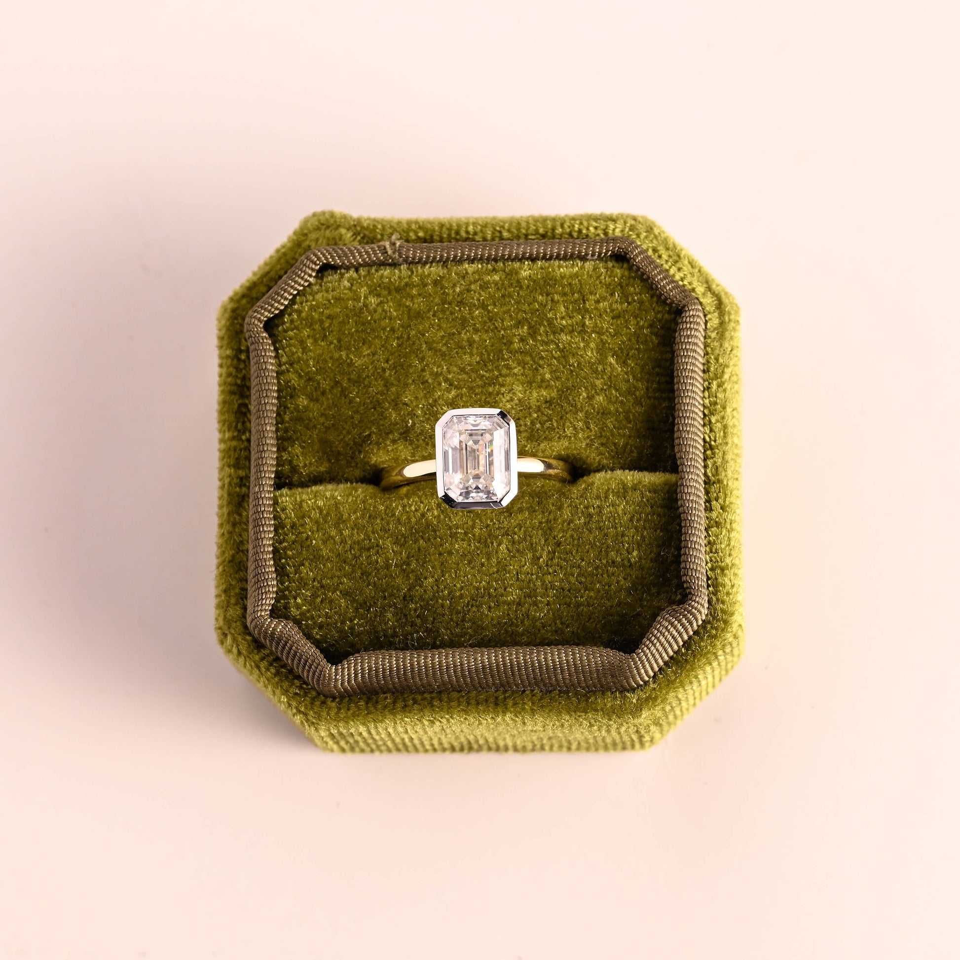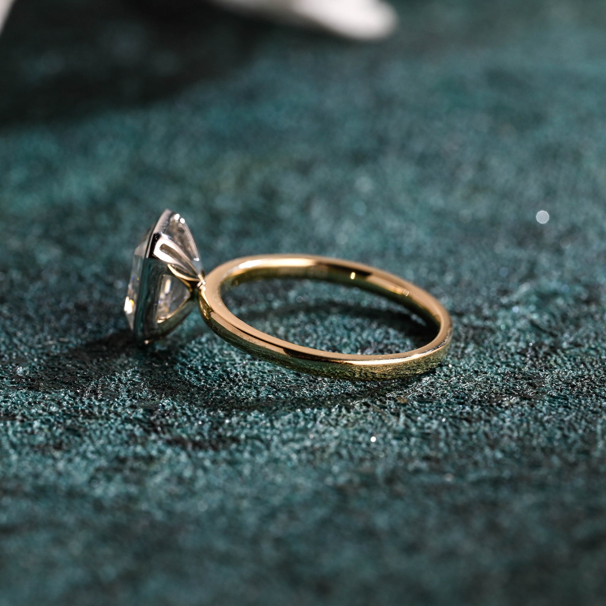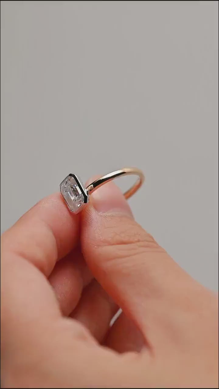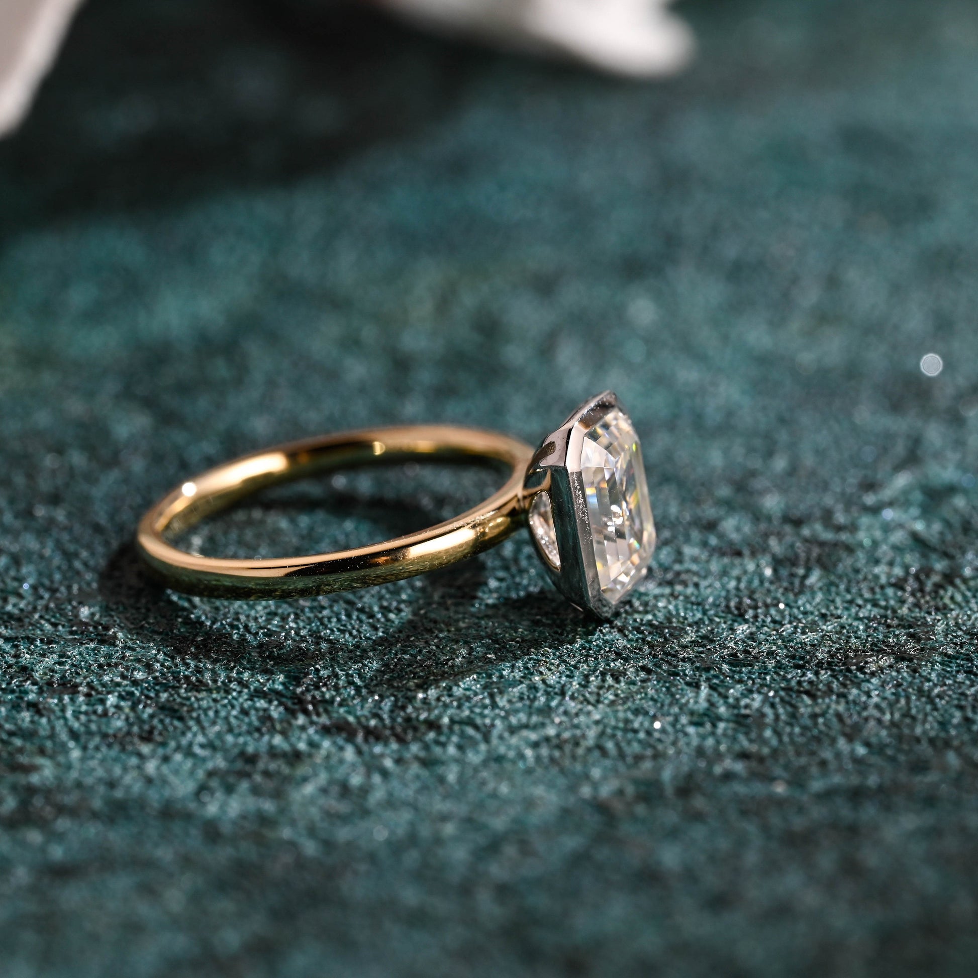 2.00ct Two Tone Bezel Set Emerald Cut Diamond Engagement Ring, Solitaire Emerald Ring, Gift for Women