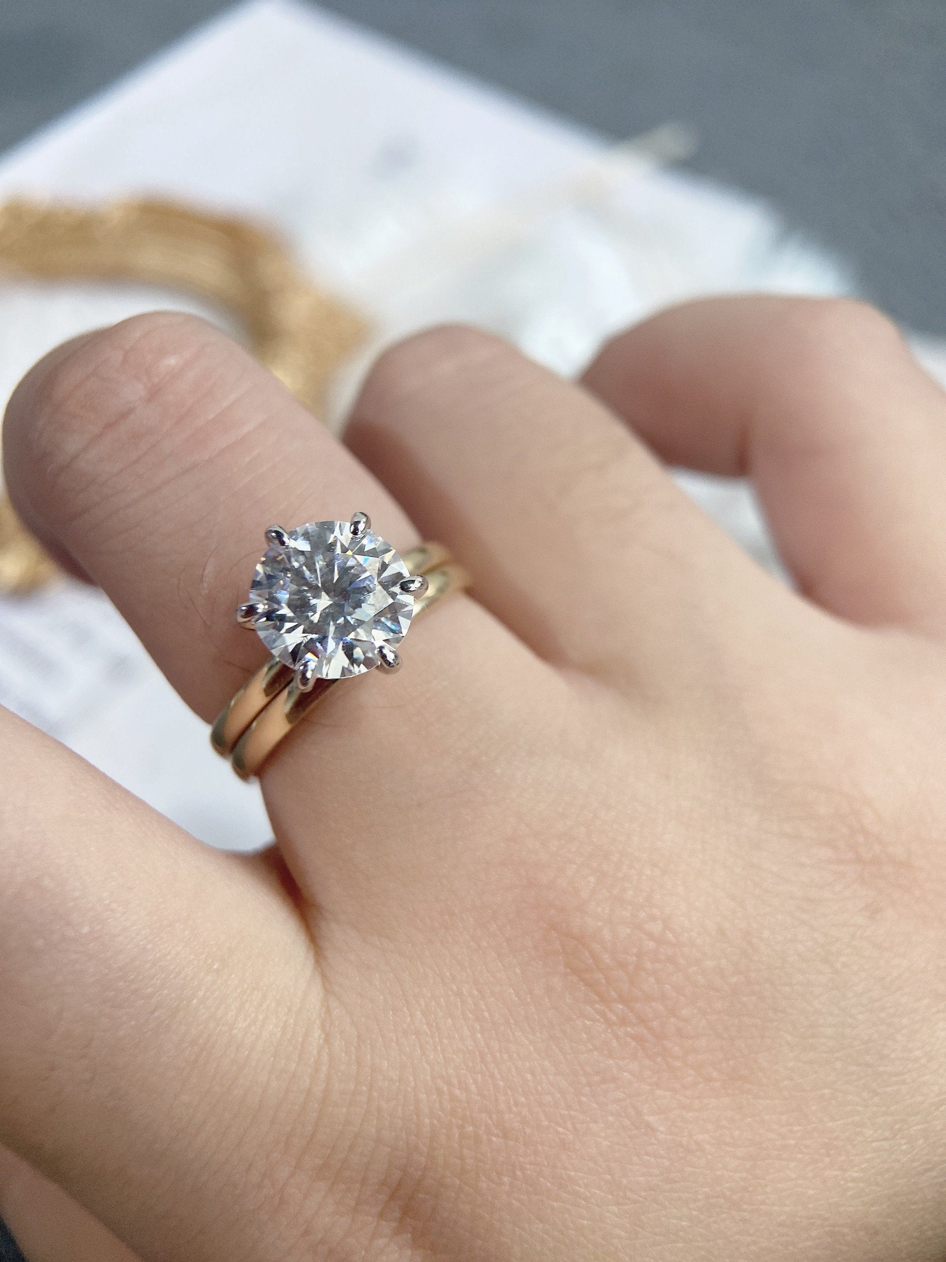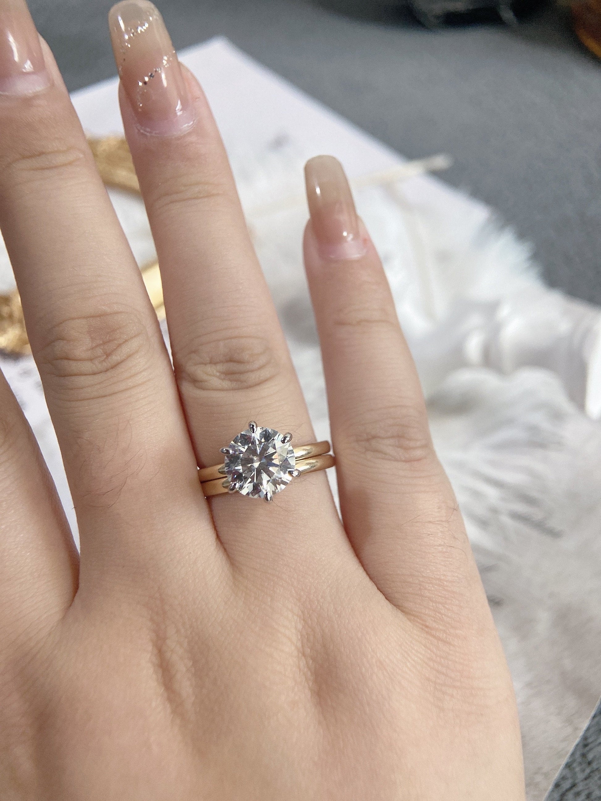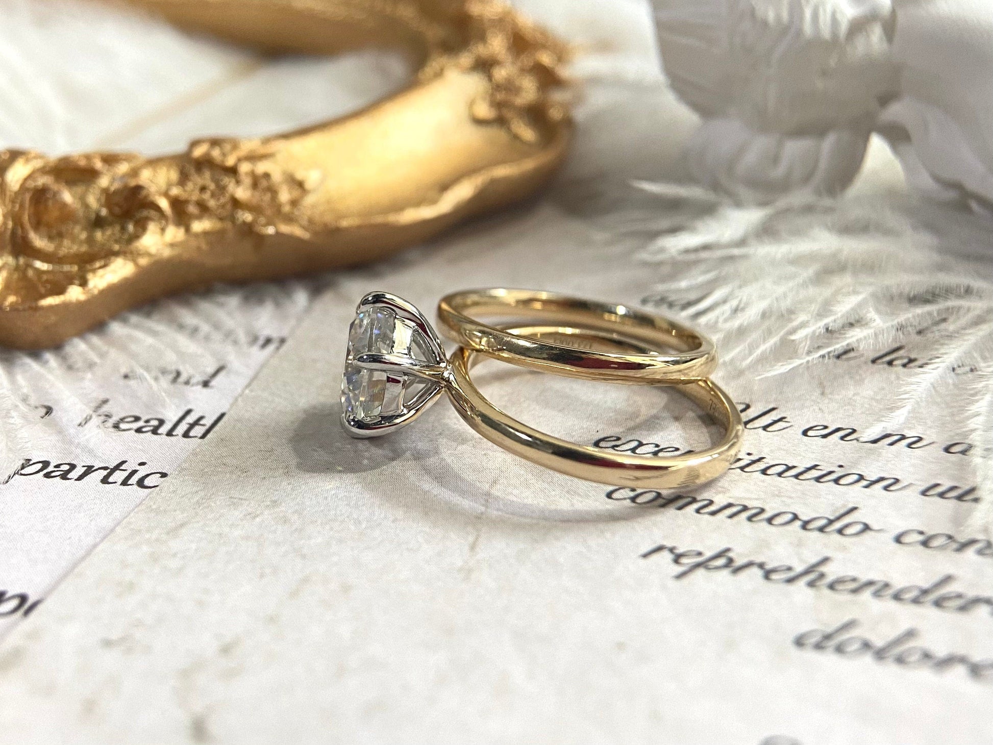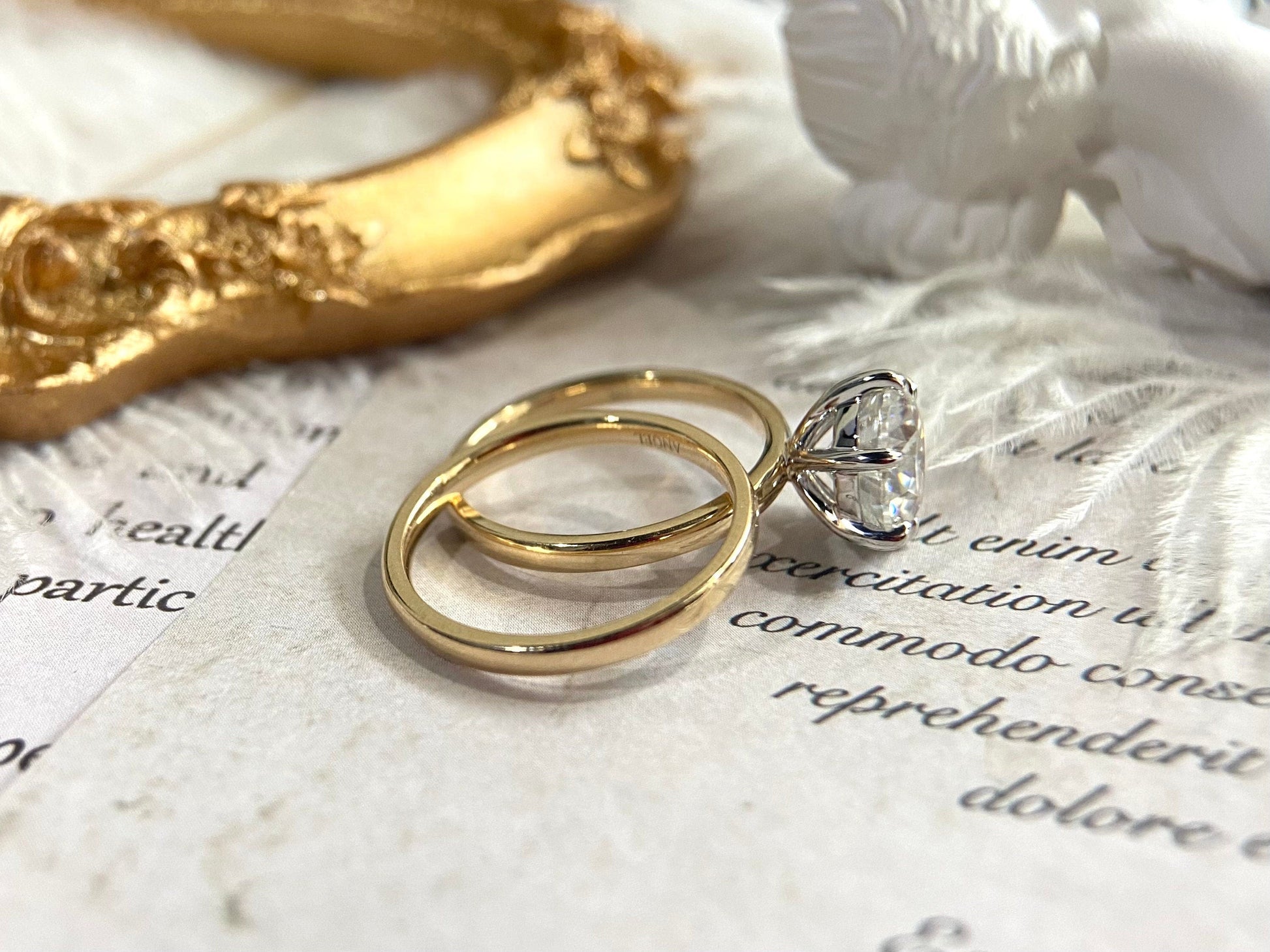 Two Tone Gold 3ct Round Cut Moissanite Ring Set/Gold Bridal Ring/Colorless Moissanite Bridal Ring For Women/Made to Order Ring