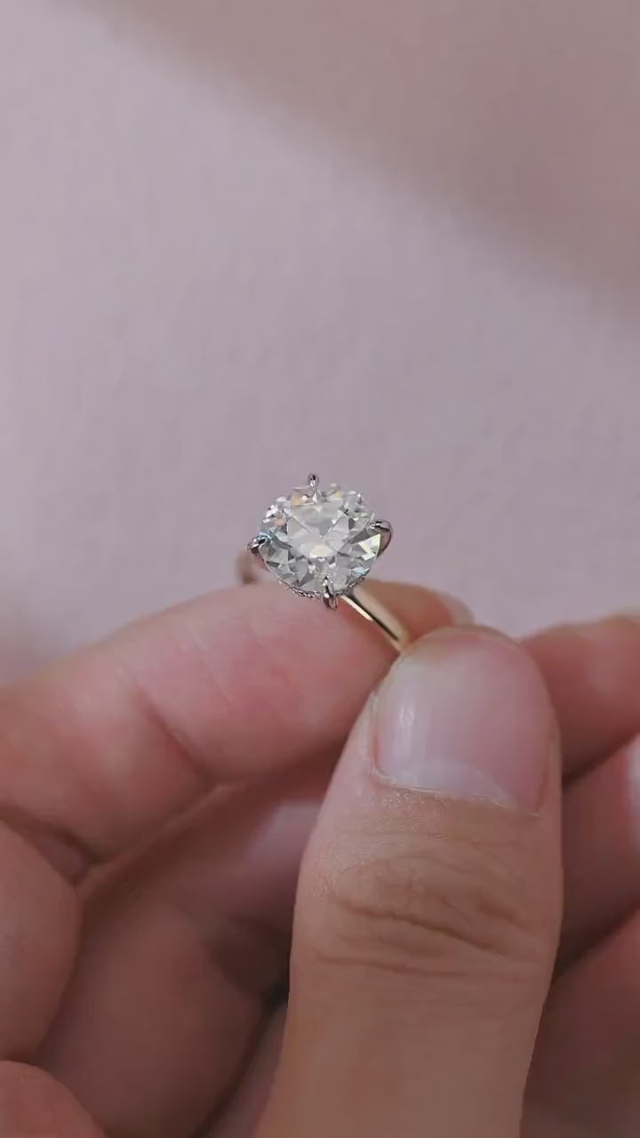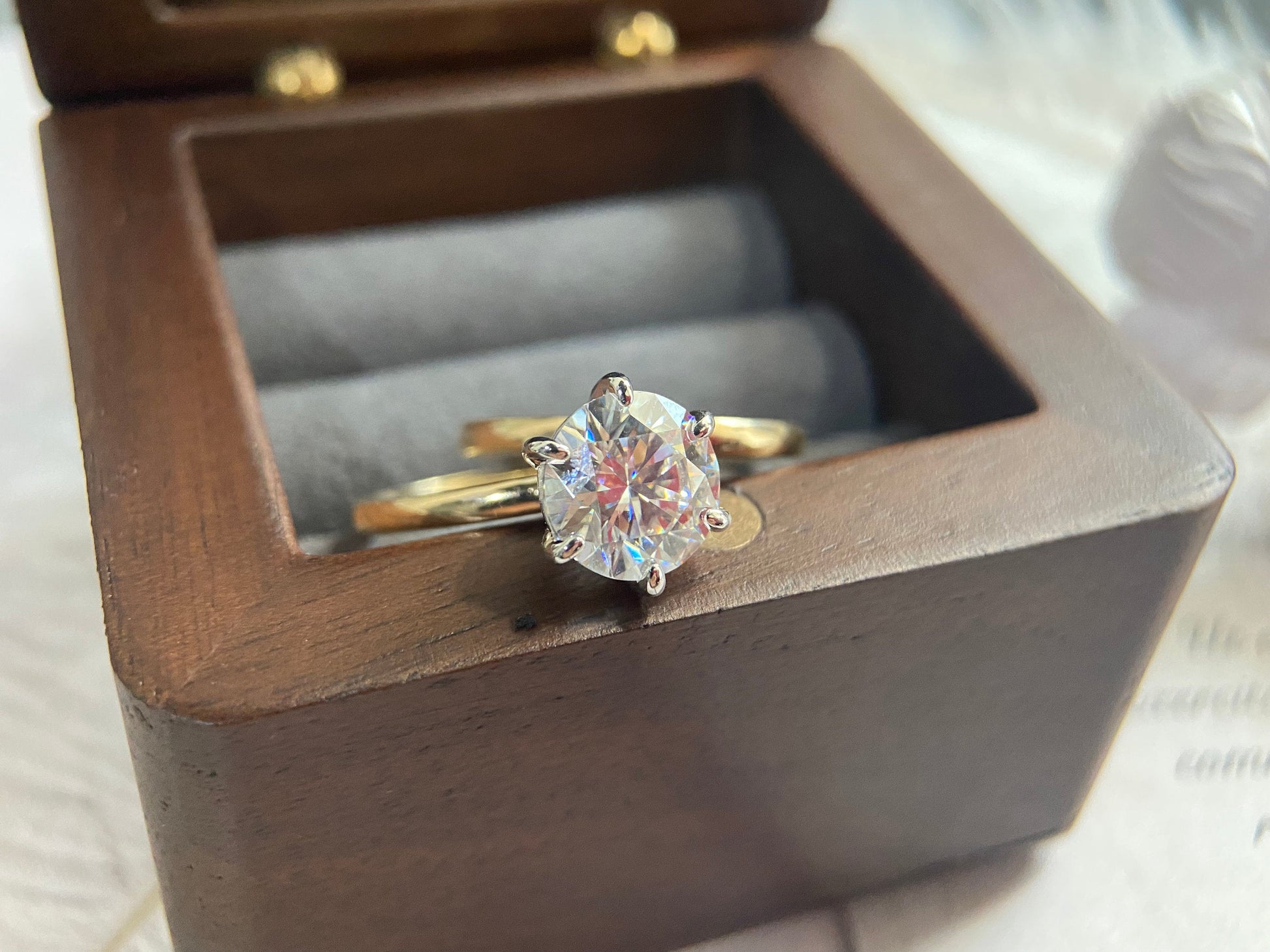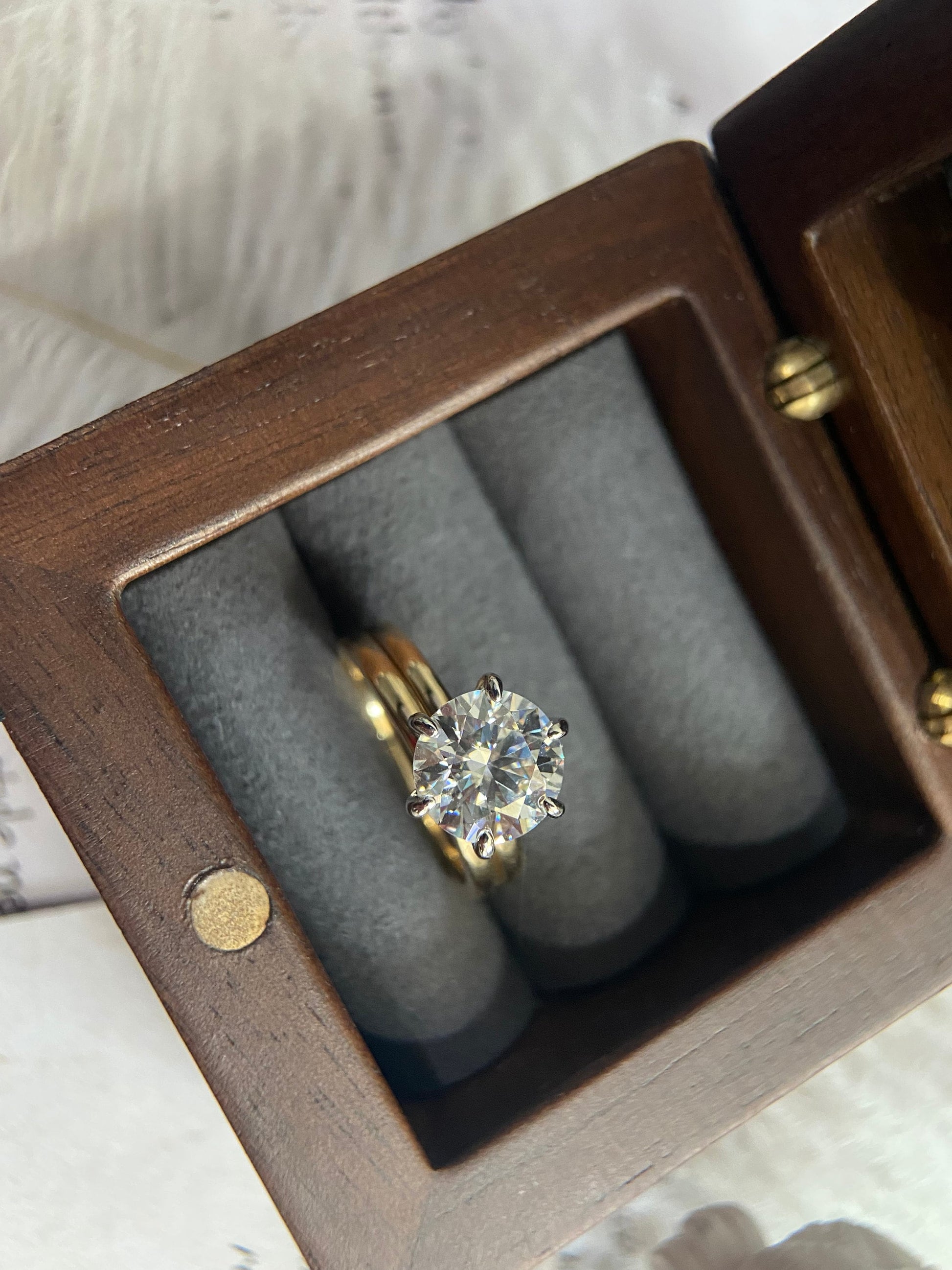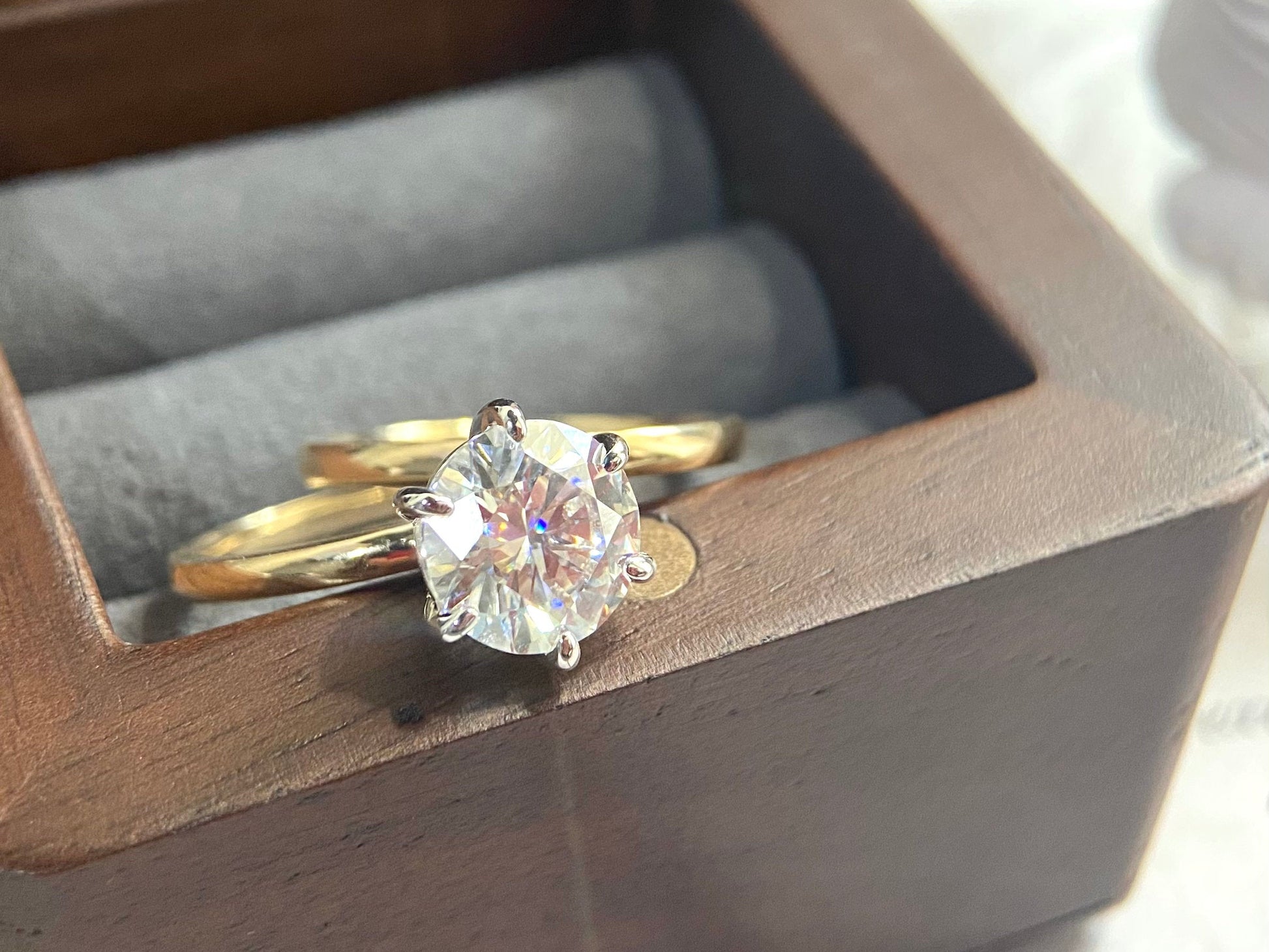 Two Tone Gold 3ct Round Cut Moissanite Ring Set/Gold Bridal Ring/Colorless Moissanite Bridal Ring For Women/Made to Order Ring