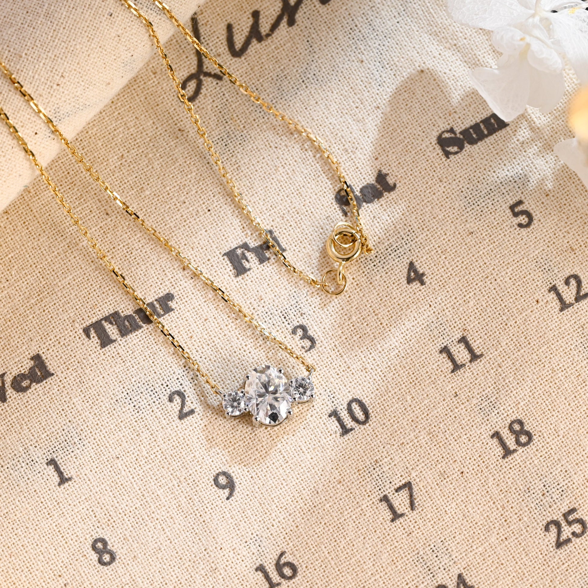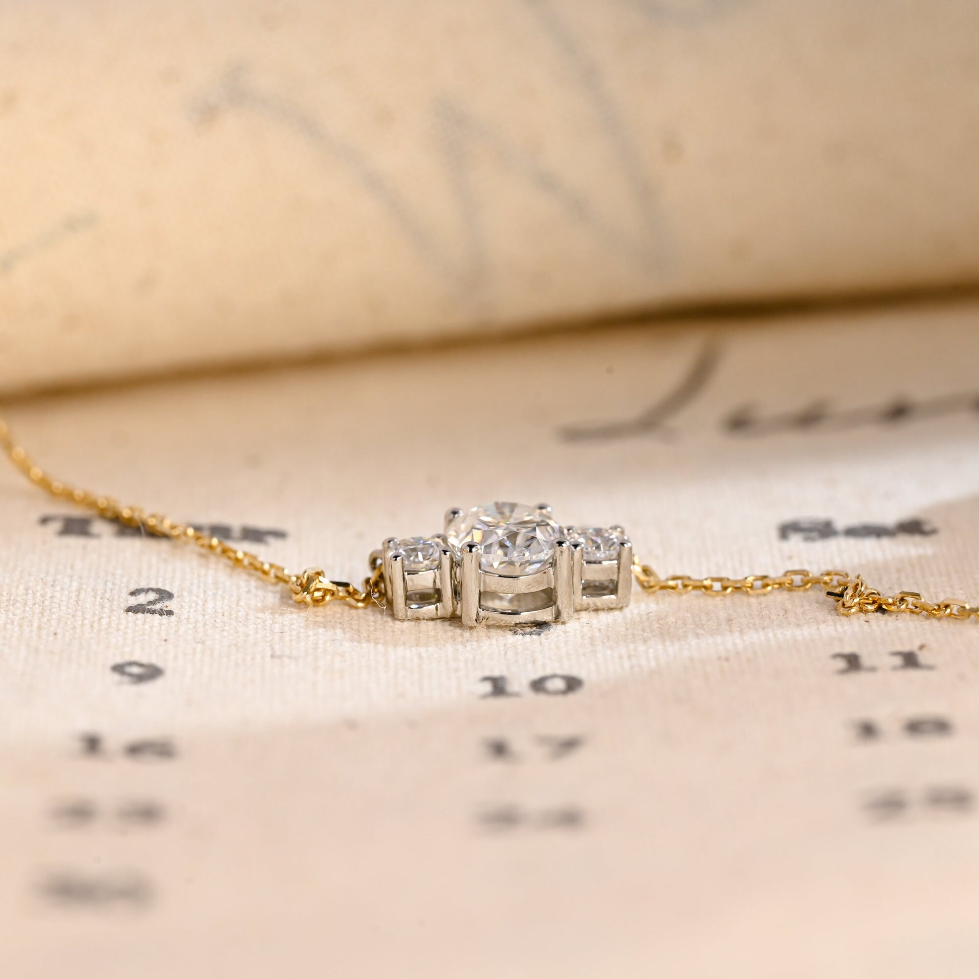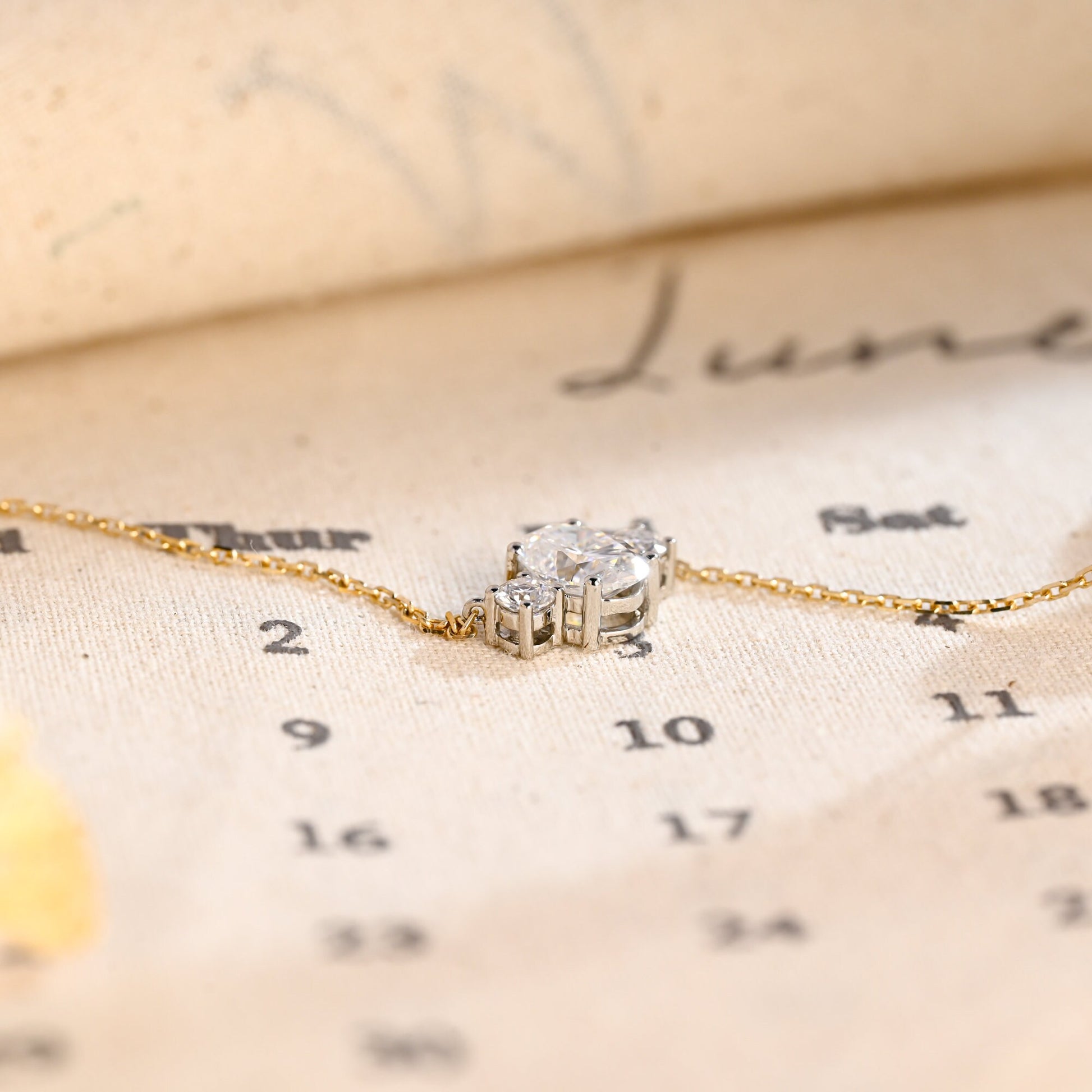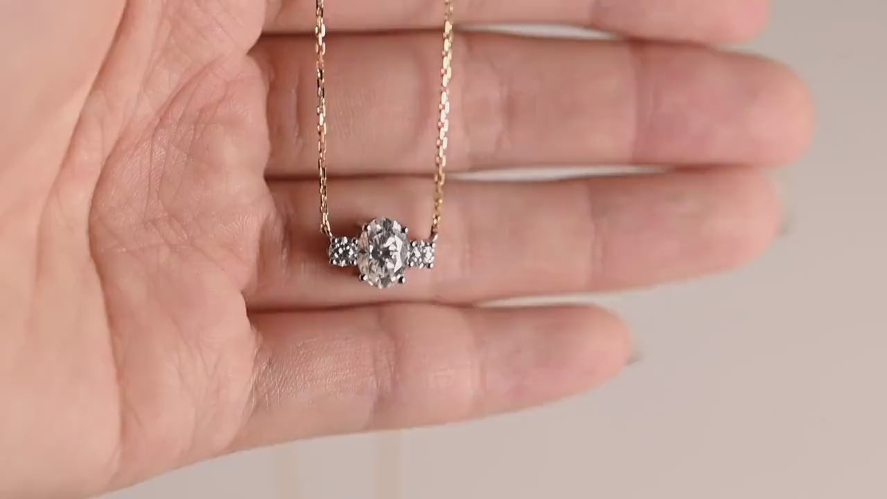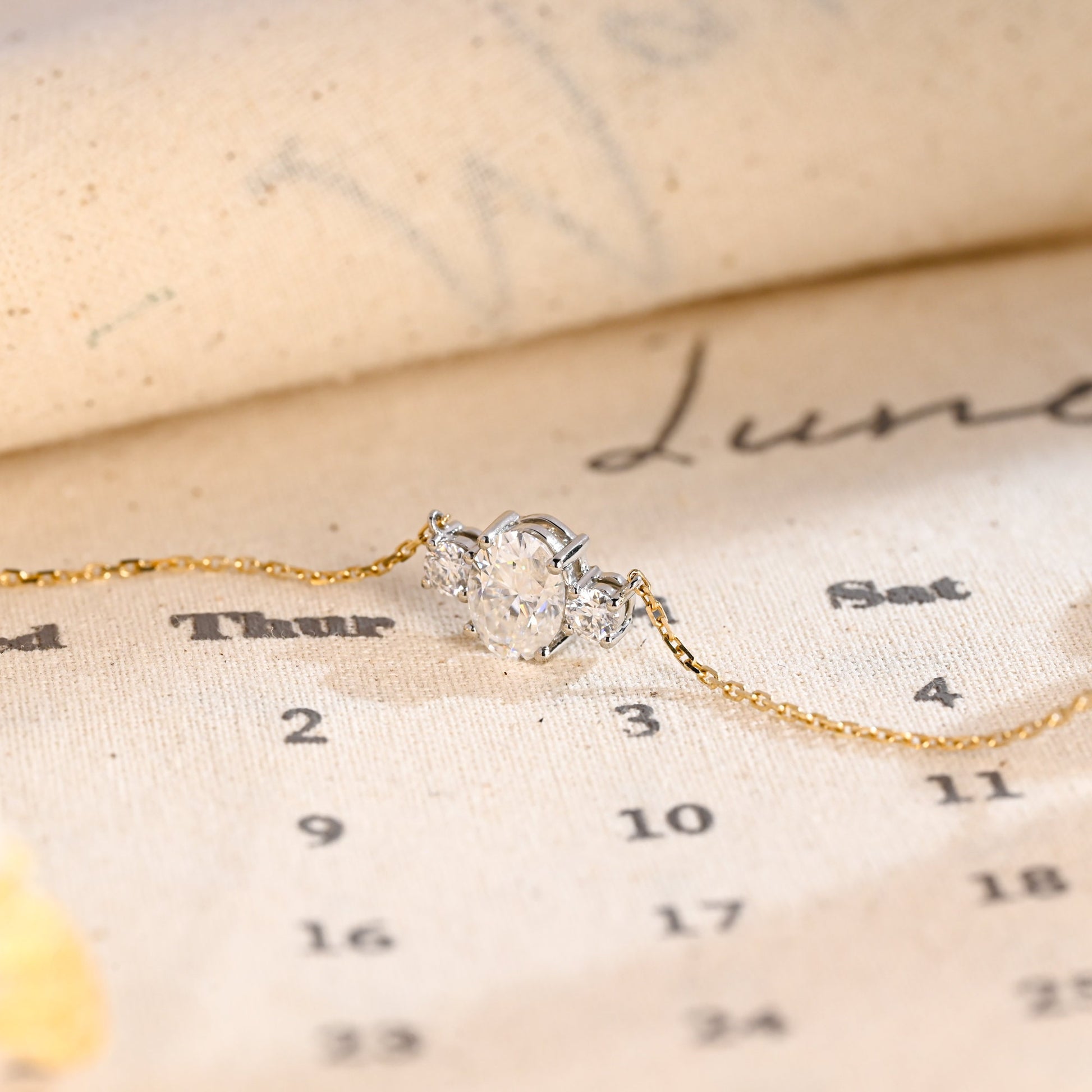 Two Tone Oval Three Stone Moissanite Pendant Necklace, Solid Gold Moissanite Pendant Anniversary Gift/Birthday Gifts/Christmas Gifts for Her