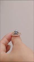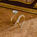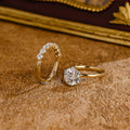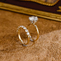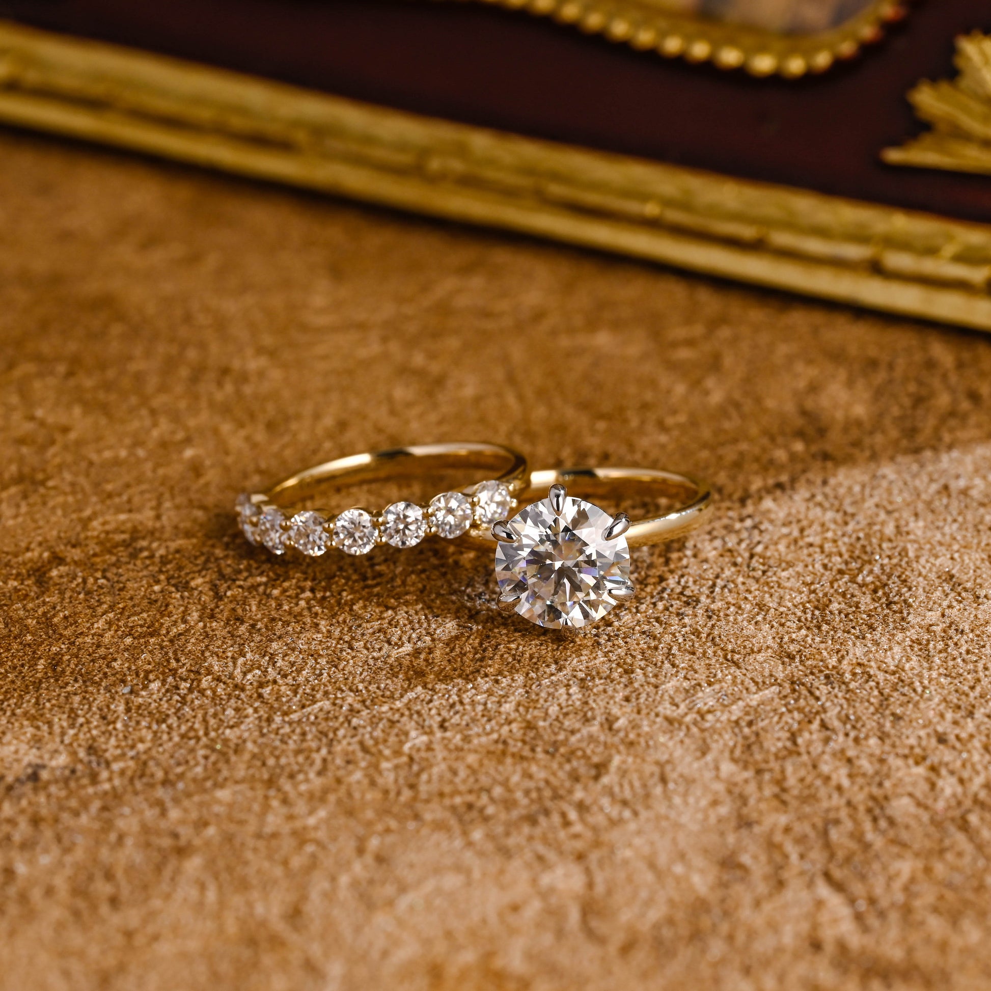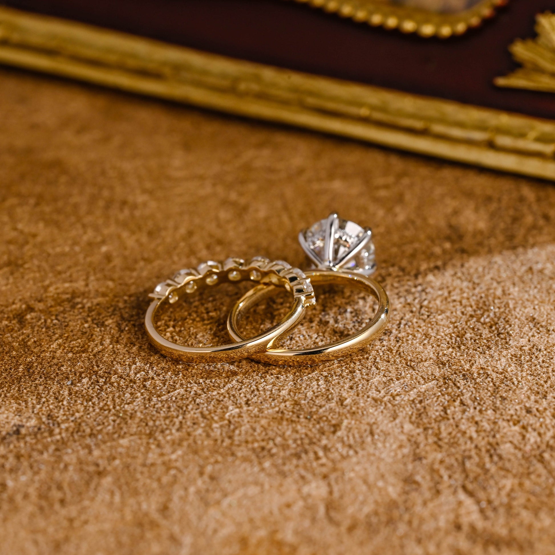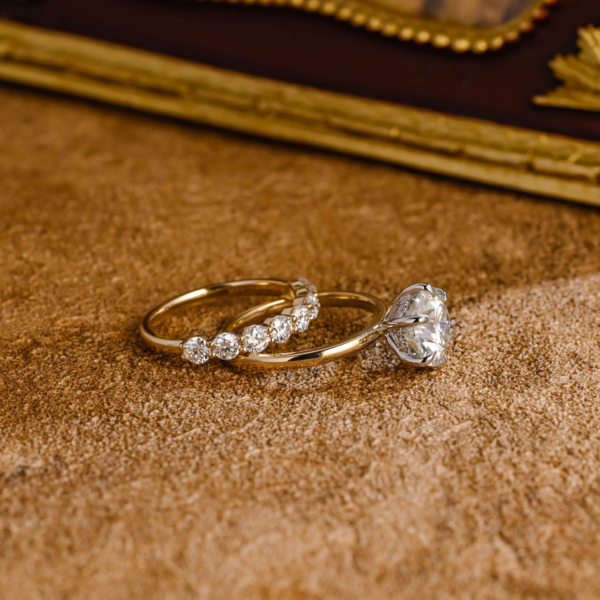 Two Tone Solid Gold Round Cut Moissanite Engagement Ring and Wedding Band Set, Bridal Ring Set, Art Deco Ring, Anniversary Gift for Woman