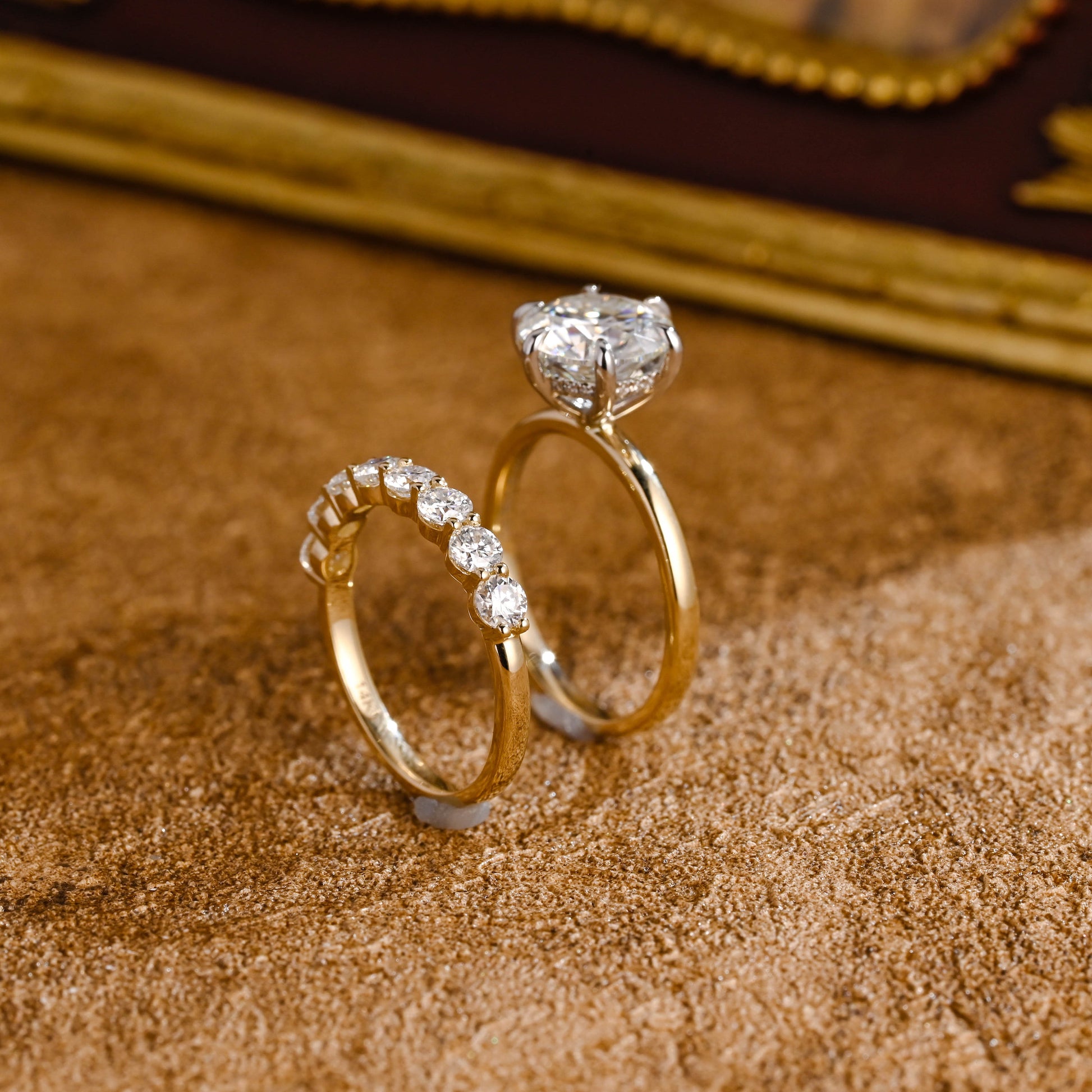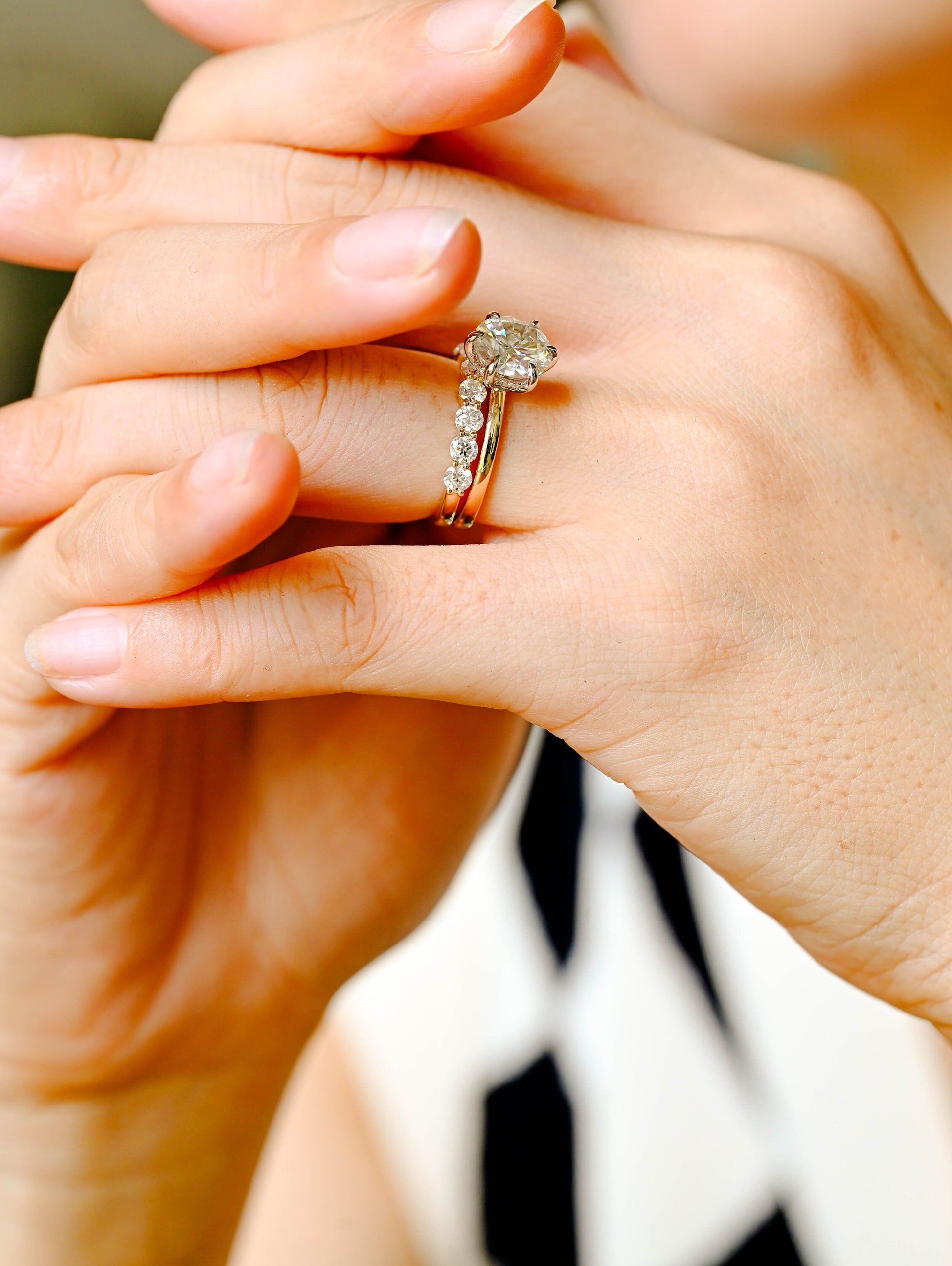 Our jewelry is crafted with simulant diamonds, moissanite, natural diamonds, lab-grown diamonds, and fine metals like 925 silver (with gold plating) and solid 10K, 14K, and 18K gold in white, yellow, and rose gold.