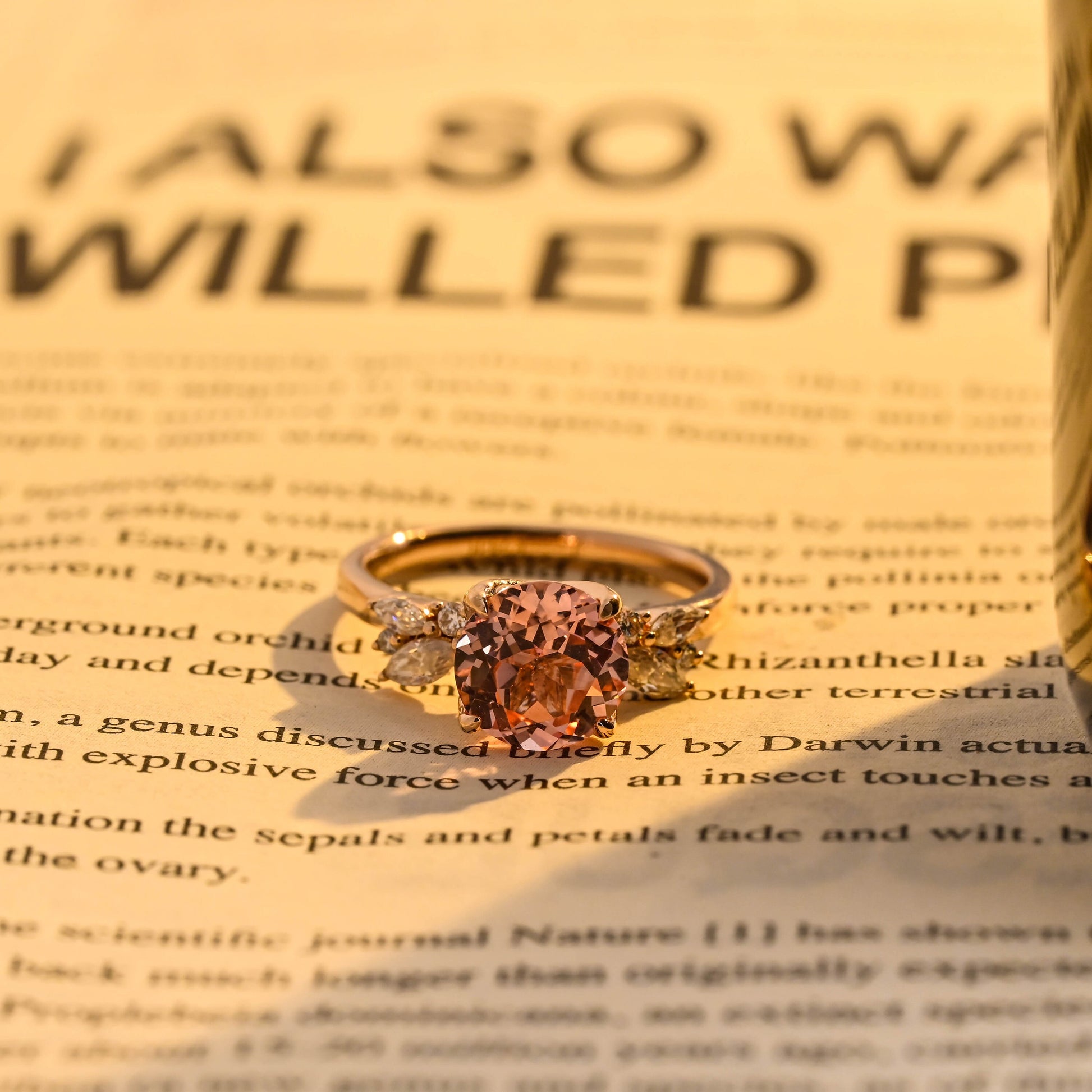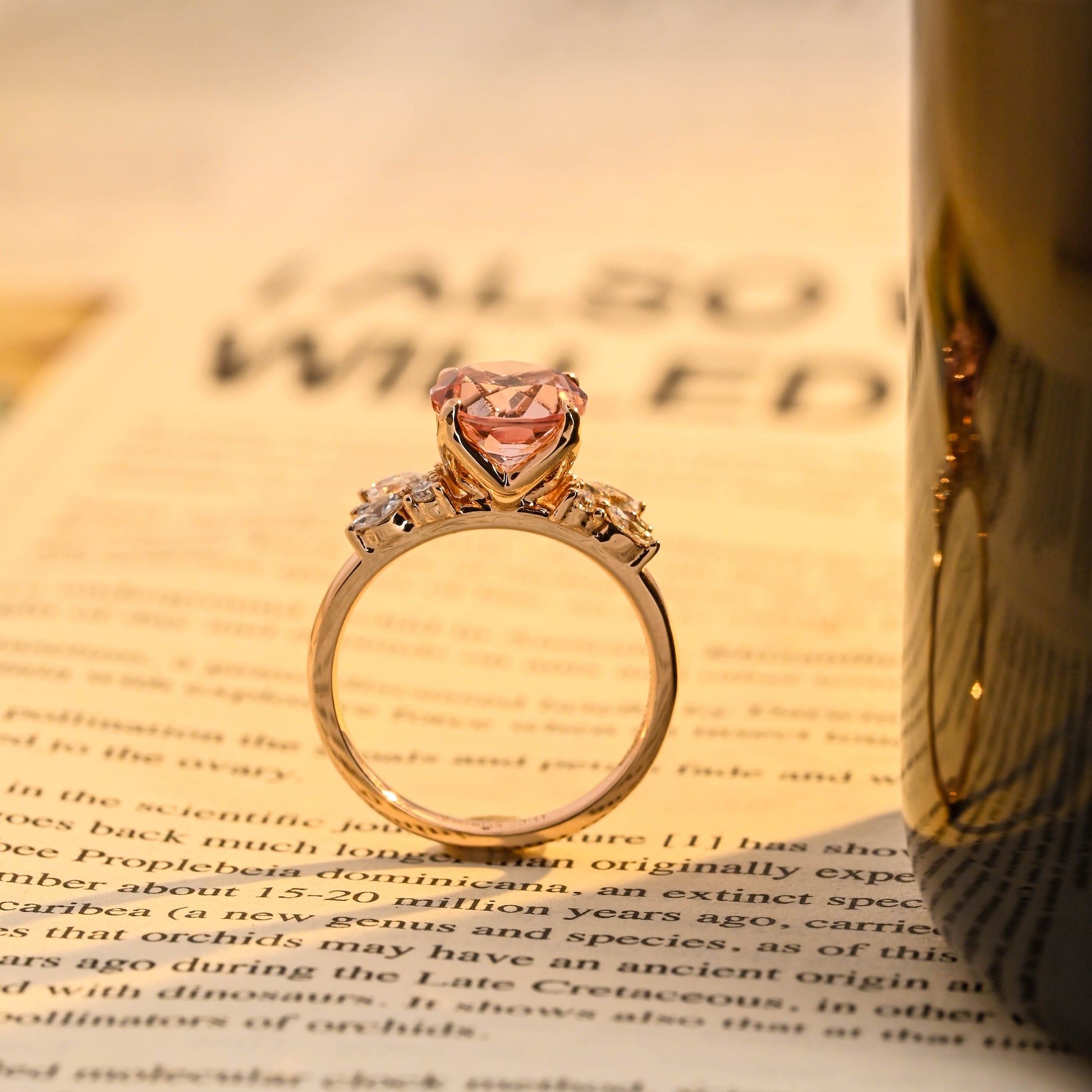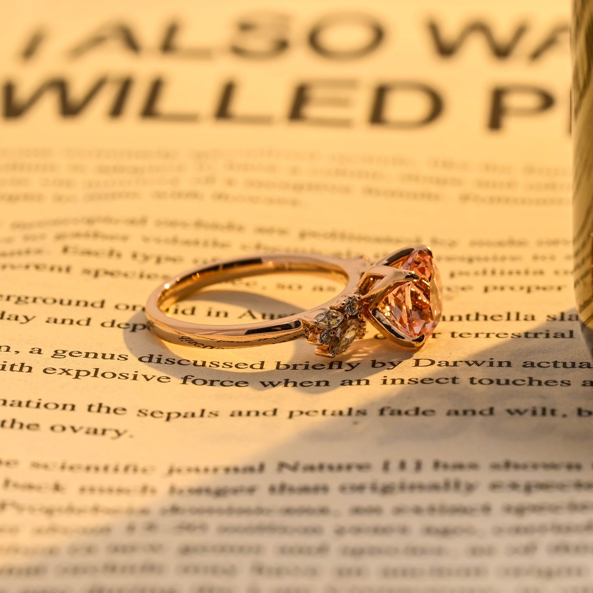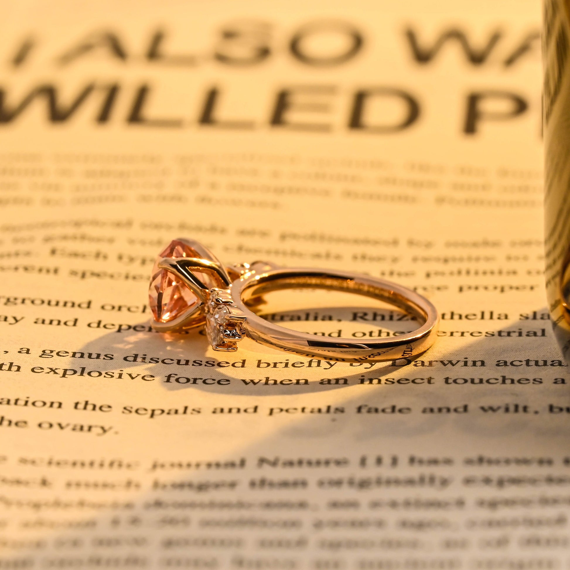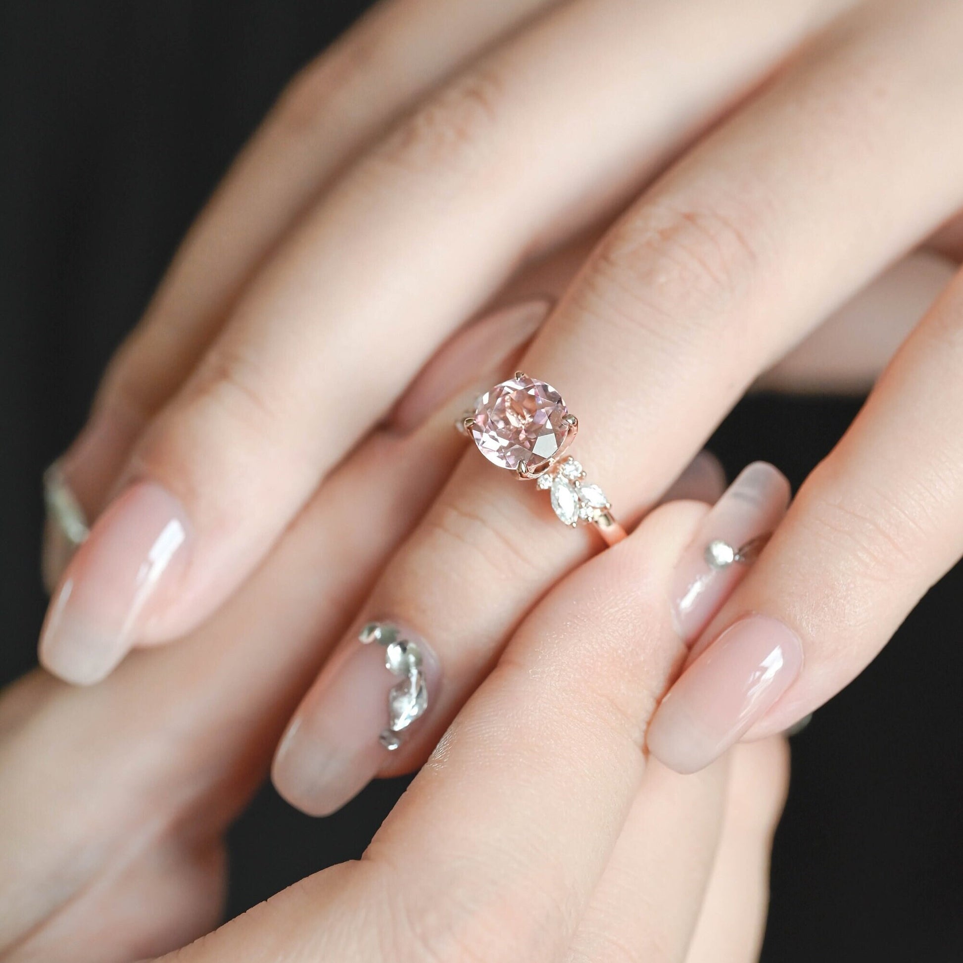 Unique Round Cut Pink Moissanite Vintage Promise Ring