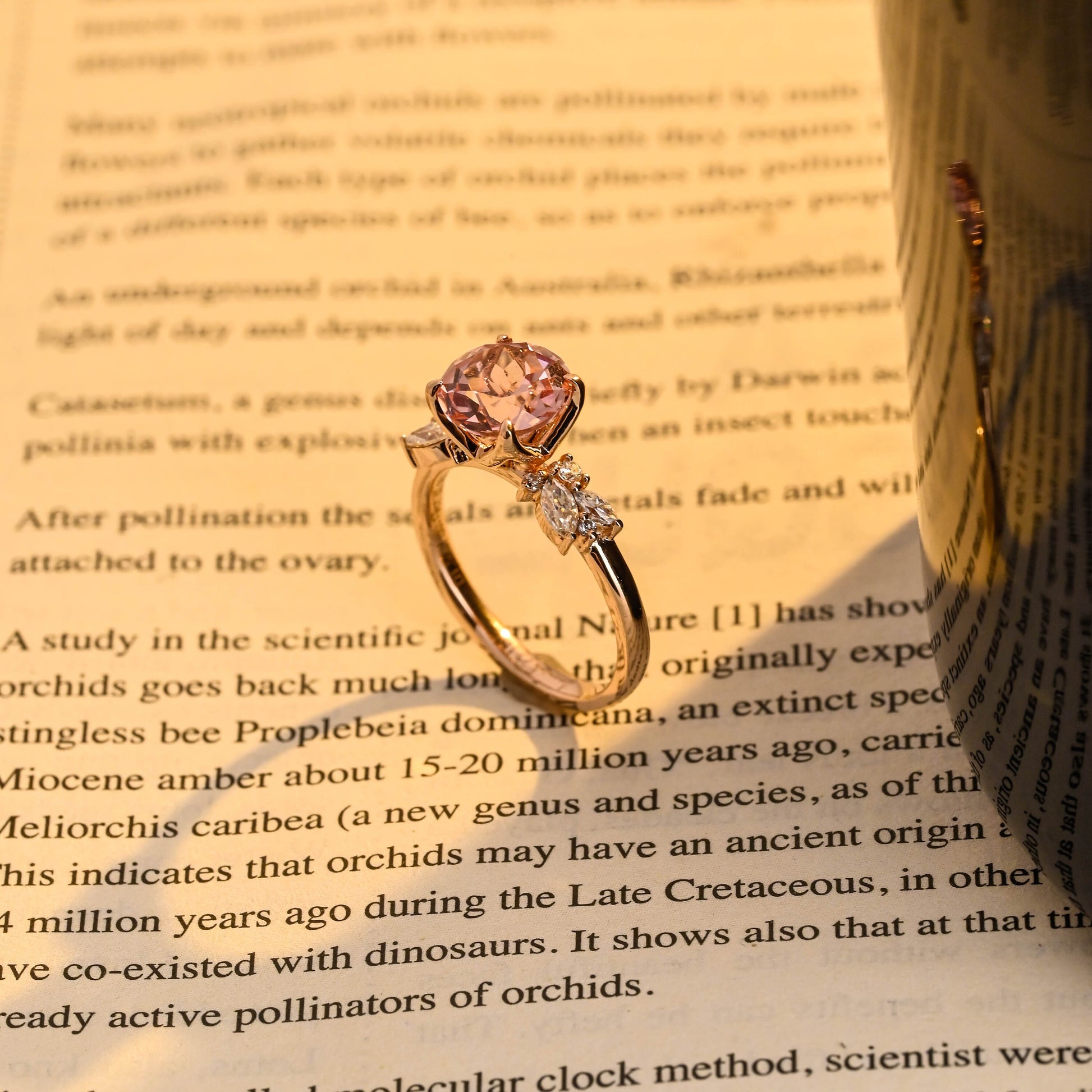 Unique Round Cut Pink Moissanite Engagement Ring, 9K/14K/18K Solid Gold Tulip Flower Ring Setting, Vintage Promise Ring, Anniversary Gift