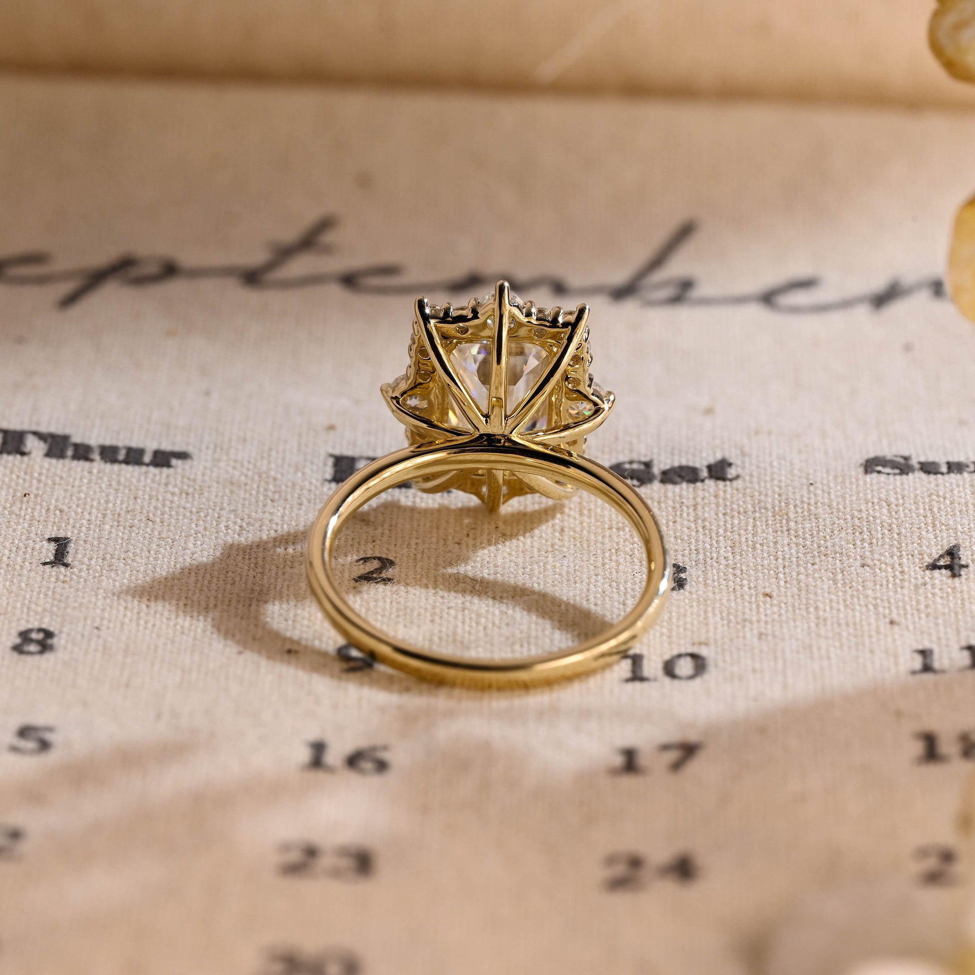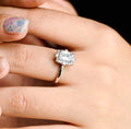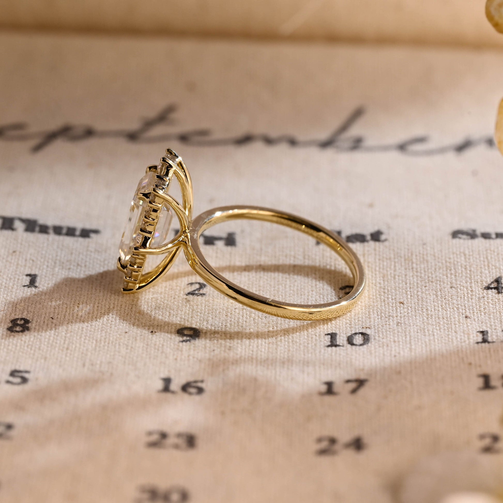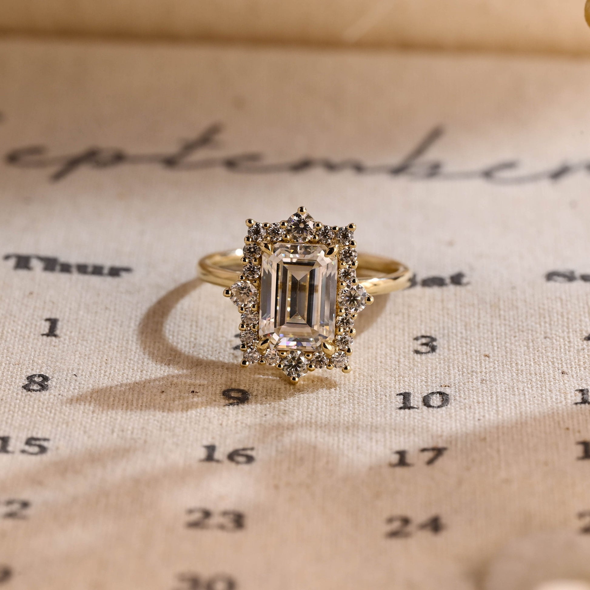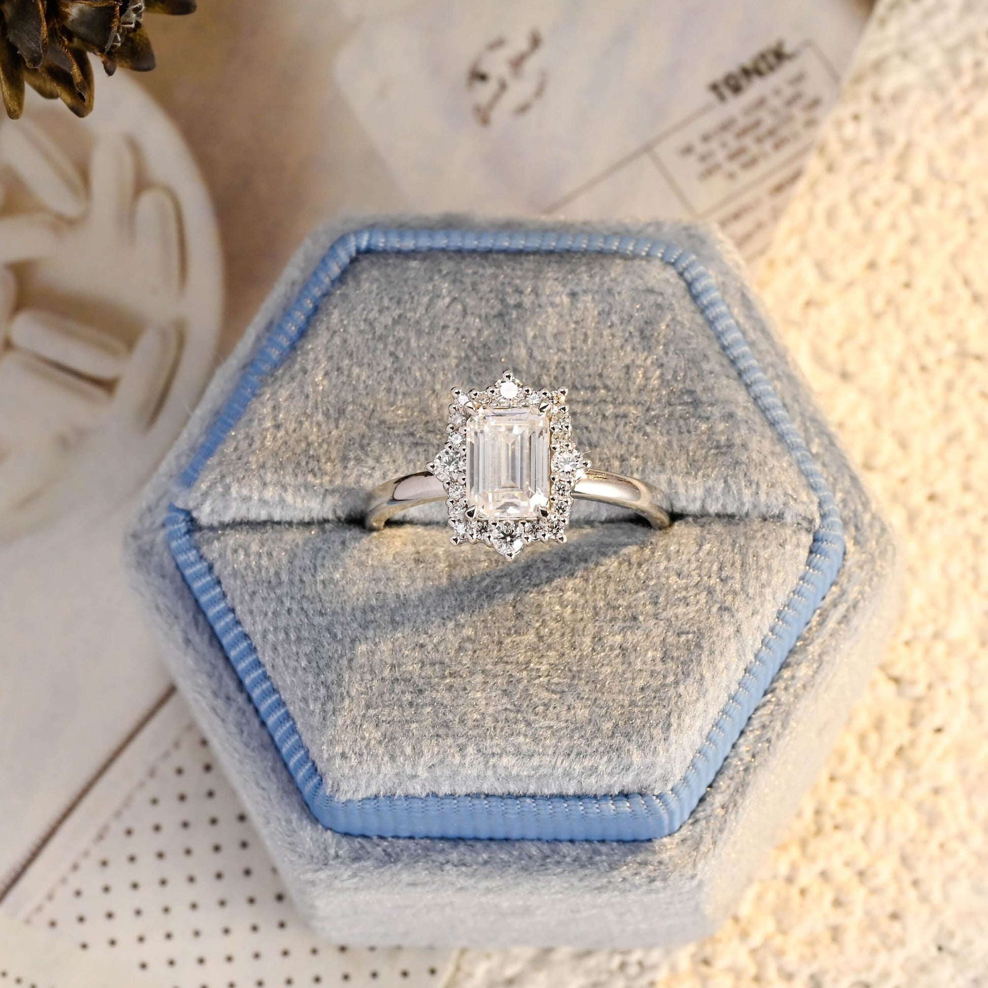 3.5ct Vintage Halo Emerald Cut Diamond Engagement Ring, Emerald Diamond Proposal Ring, Anniversary Gifts for Women, Wedding Ring